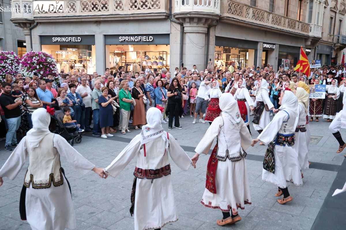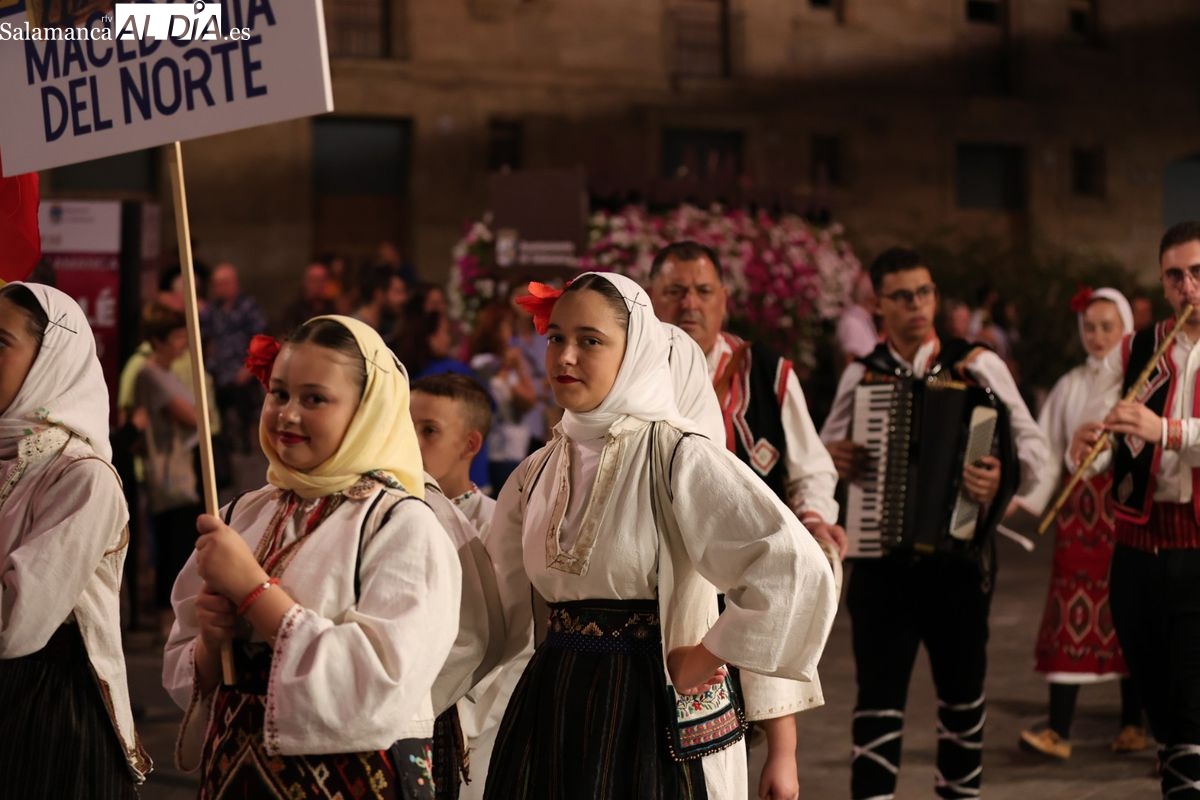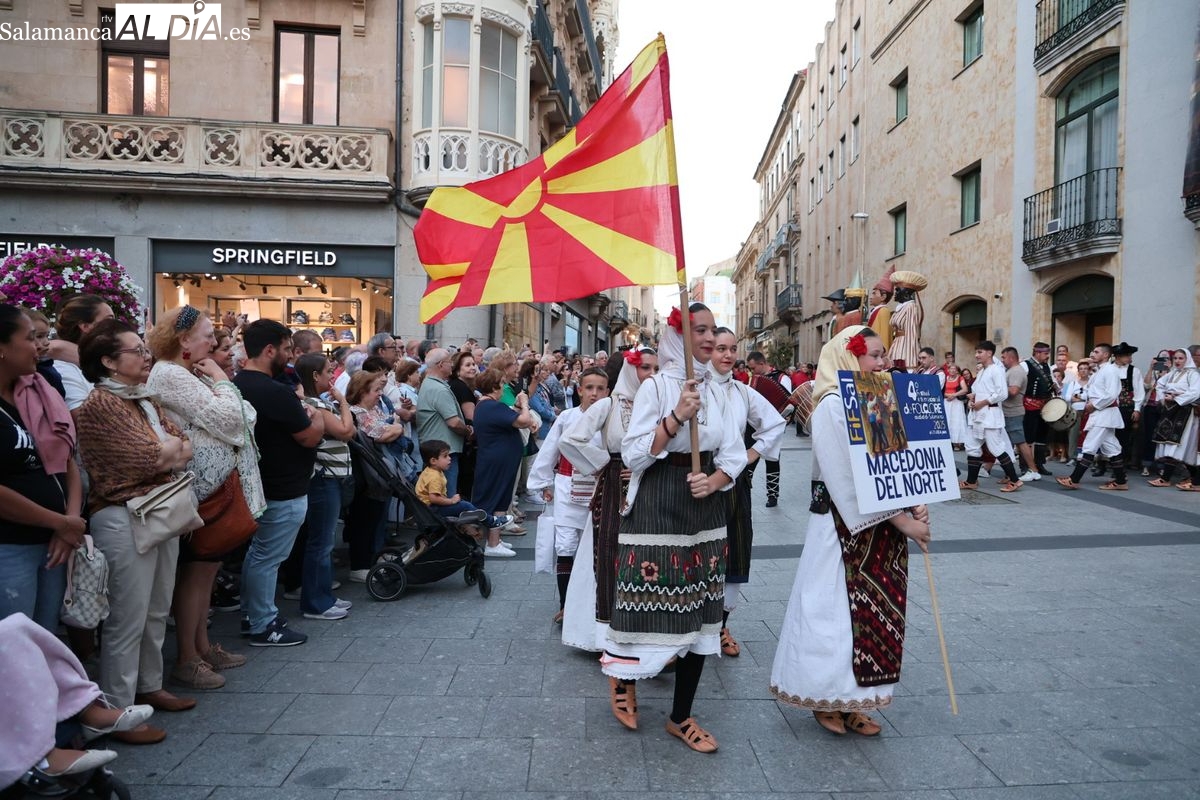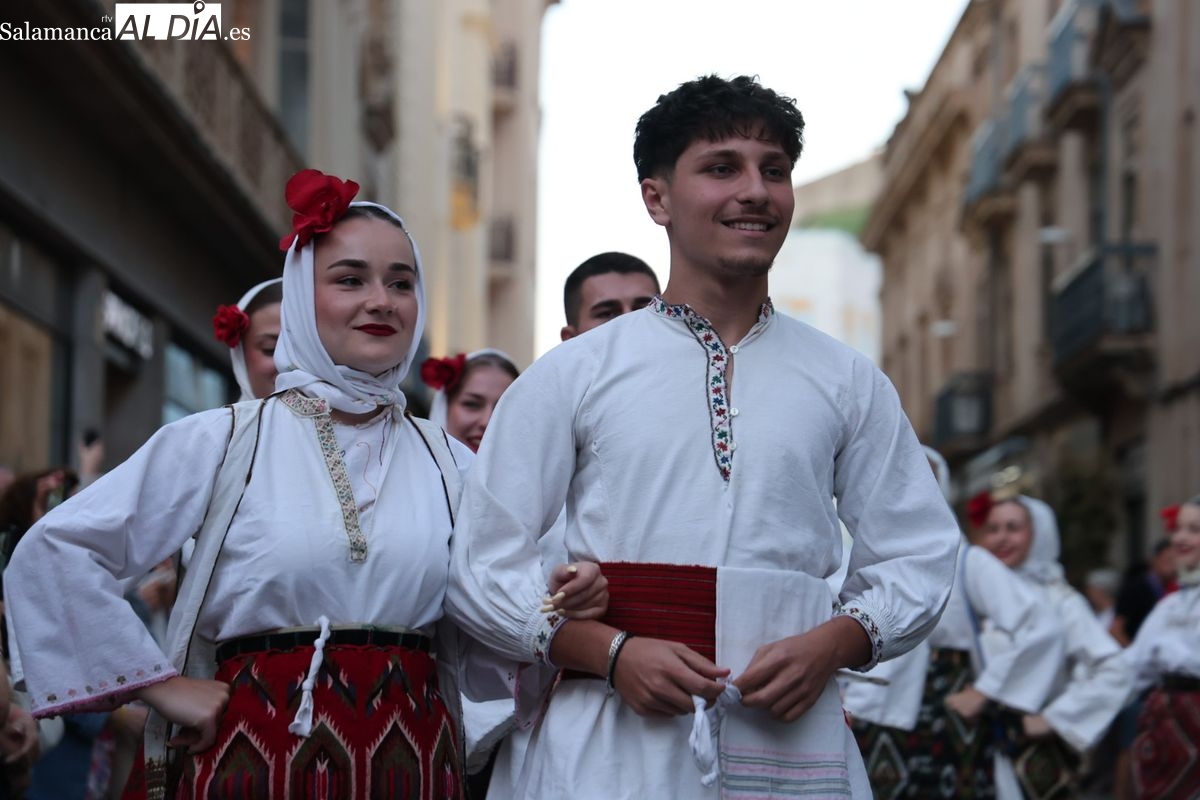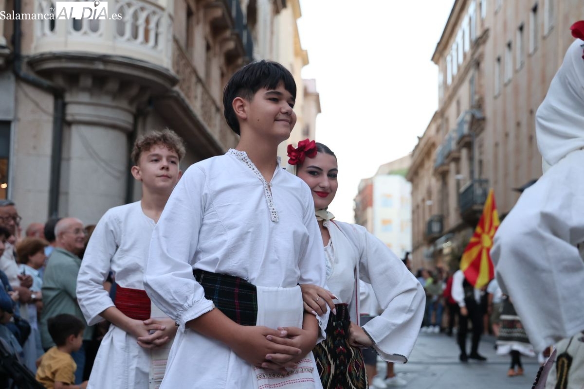 VÍDEO Y FOTOS | Macedonia, Zamora y Canarias llenan de color el centro de Salamanca con el último gran desfile del Festival de Folclore