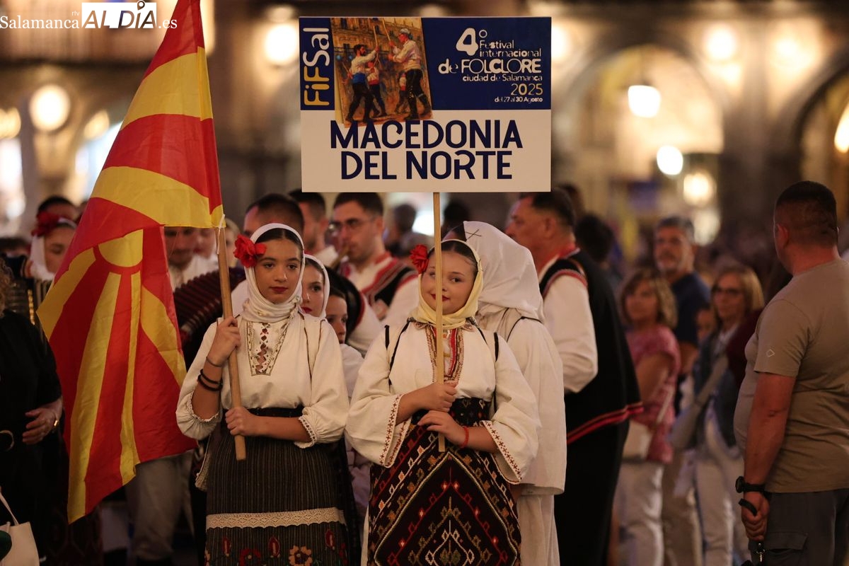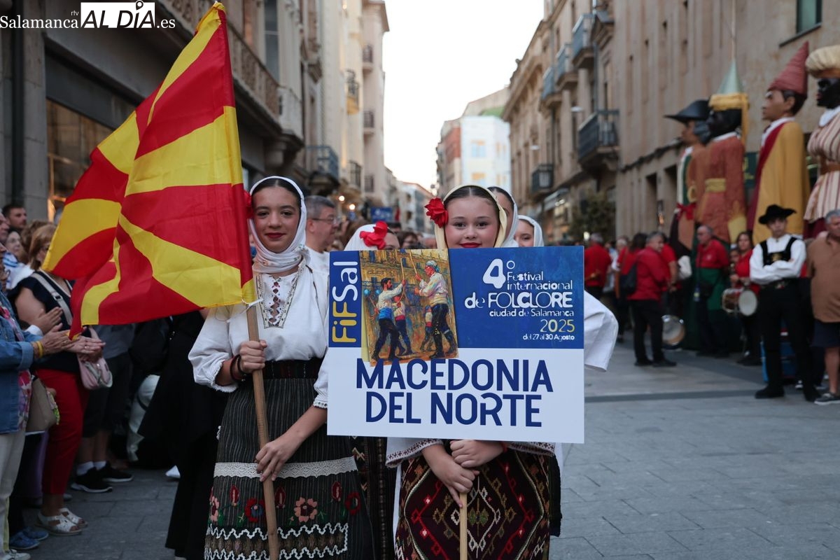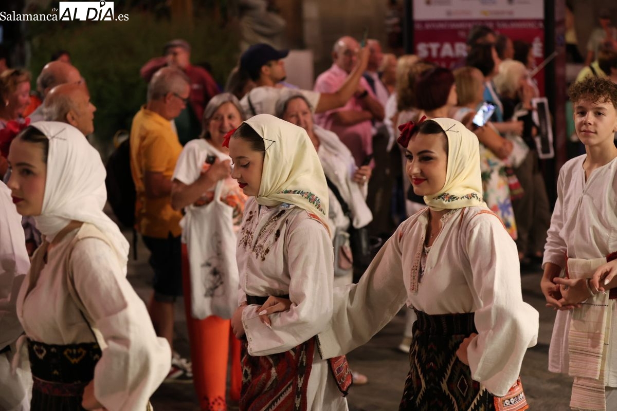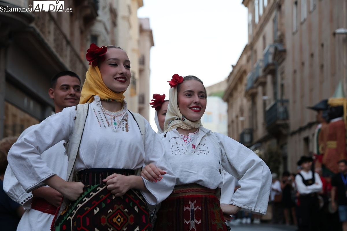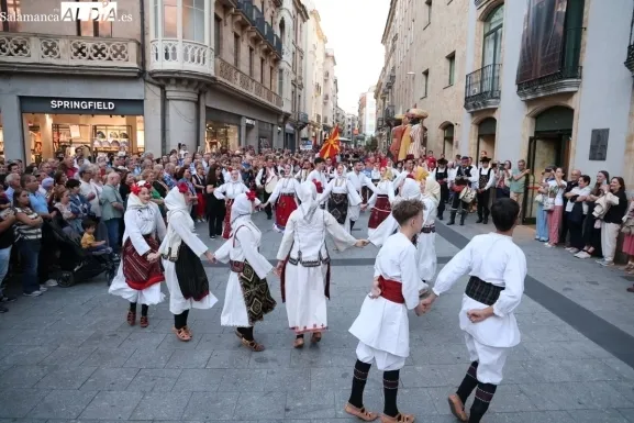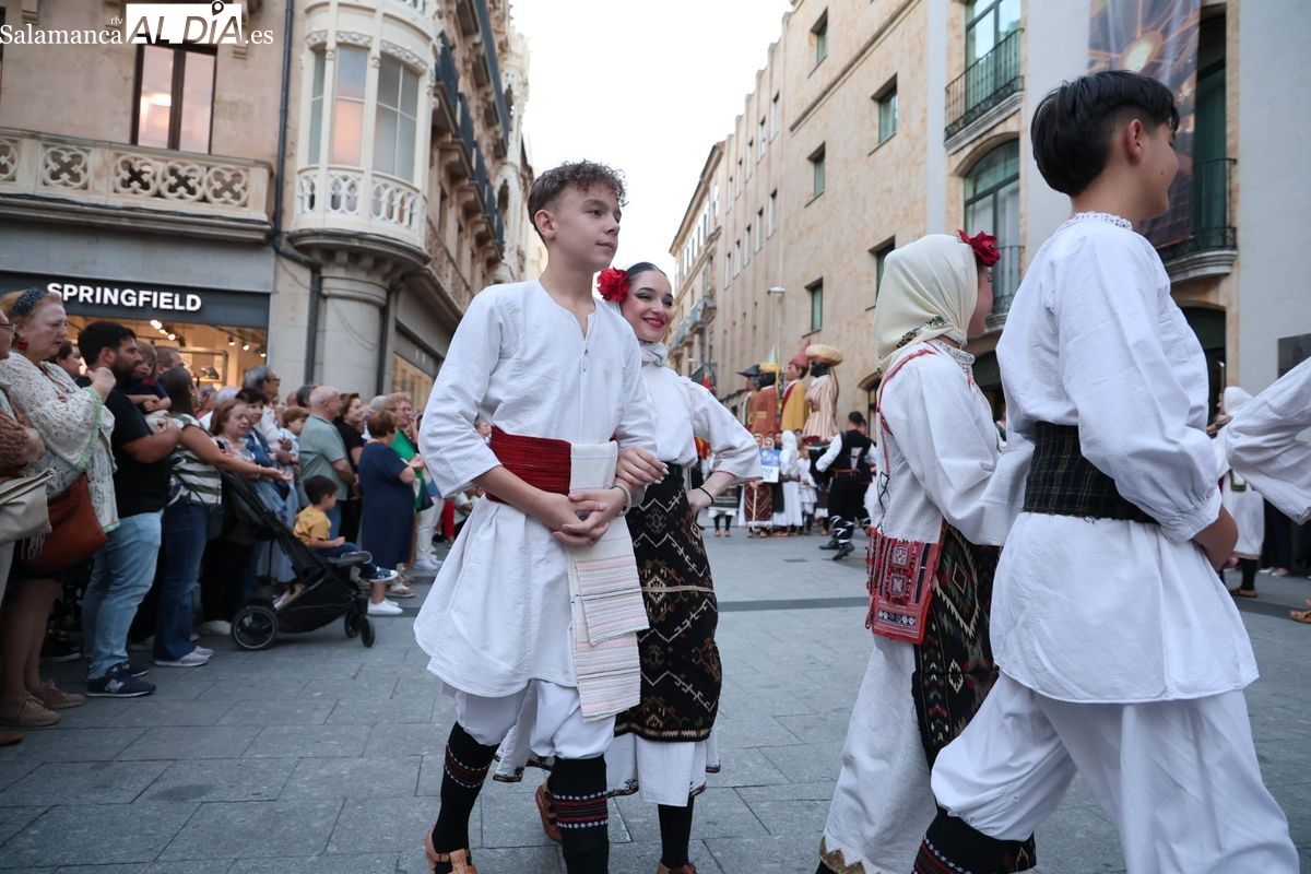 VÍDEO Y FOTOS | Macedonia, Zamora y Canarias llenan de color el centro de Salamanca con el último gran desfile del Festival de Folclore