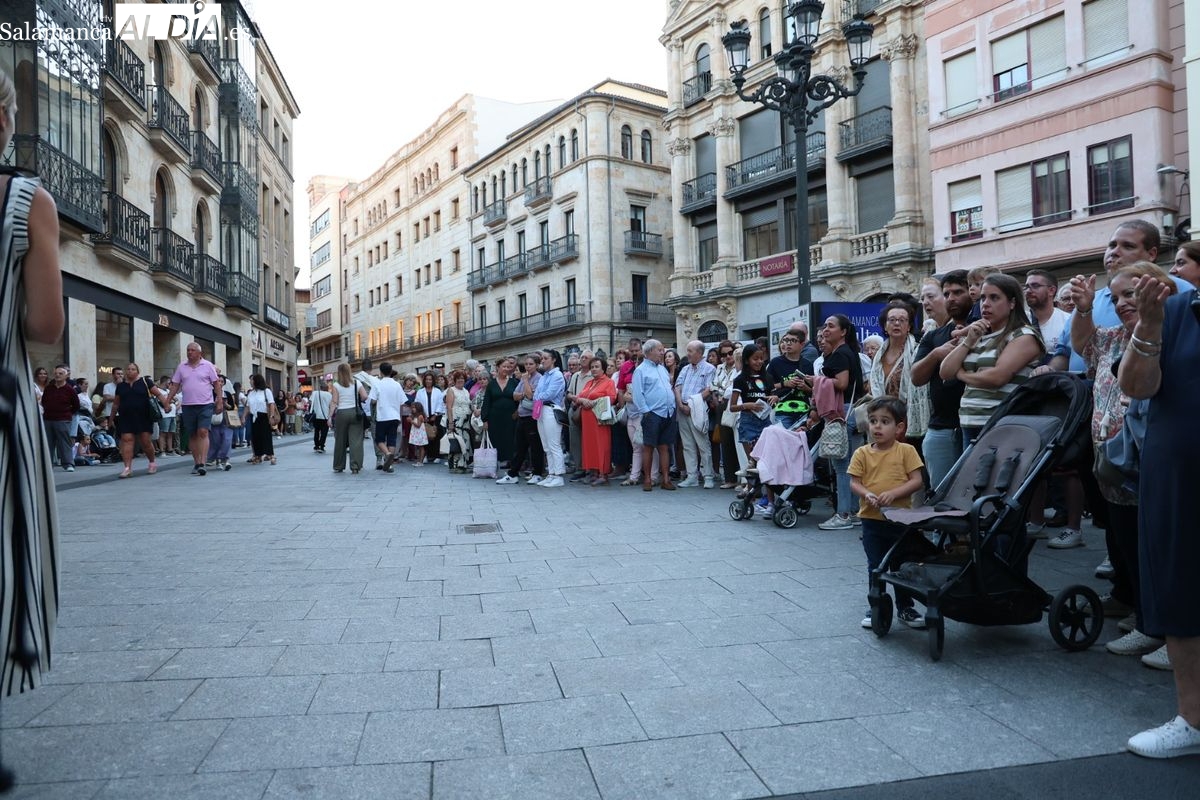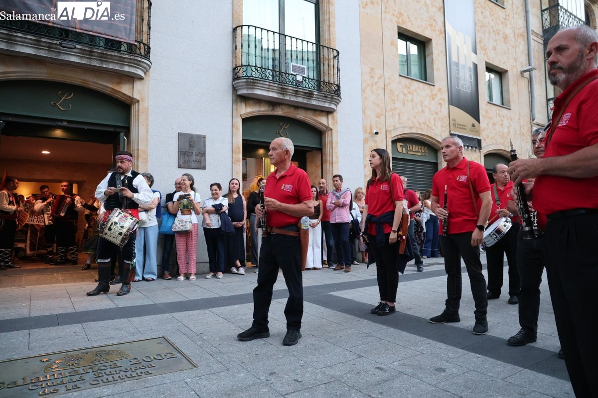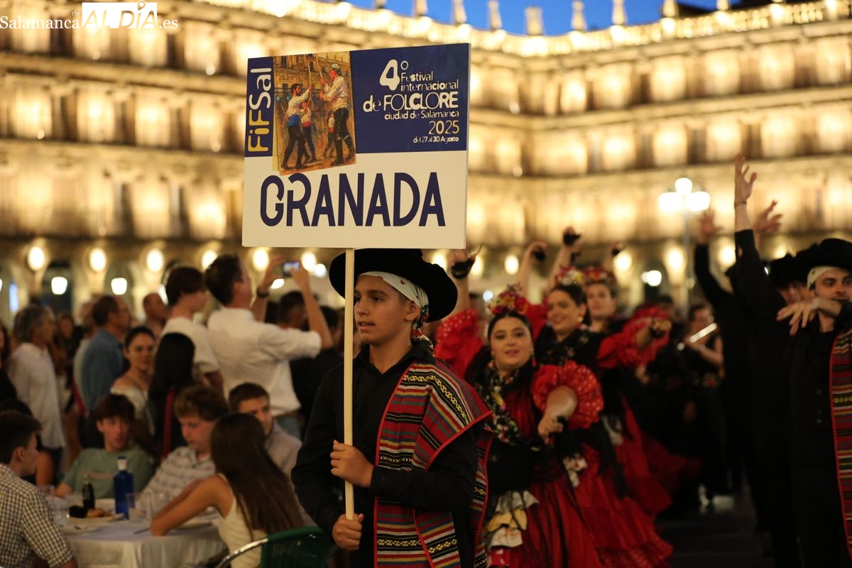 Este pasacalles sirvió como antesala de la gala de clausura que pondría el broche de oro definitivo al festival en la noche del sábado en el Patio Chico, con las actuaciones de los grupos de Salamanca, Colombia, Portugal y Granada.