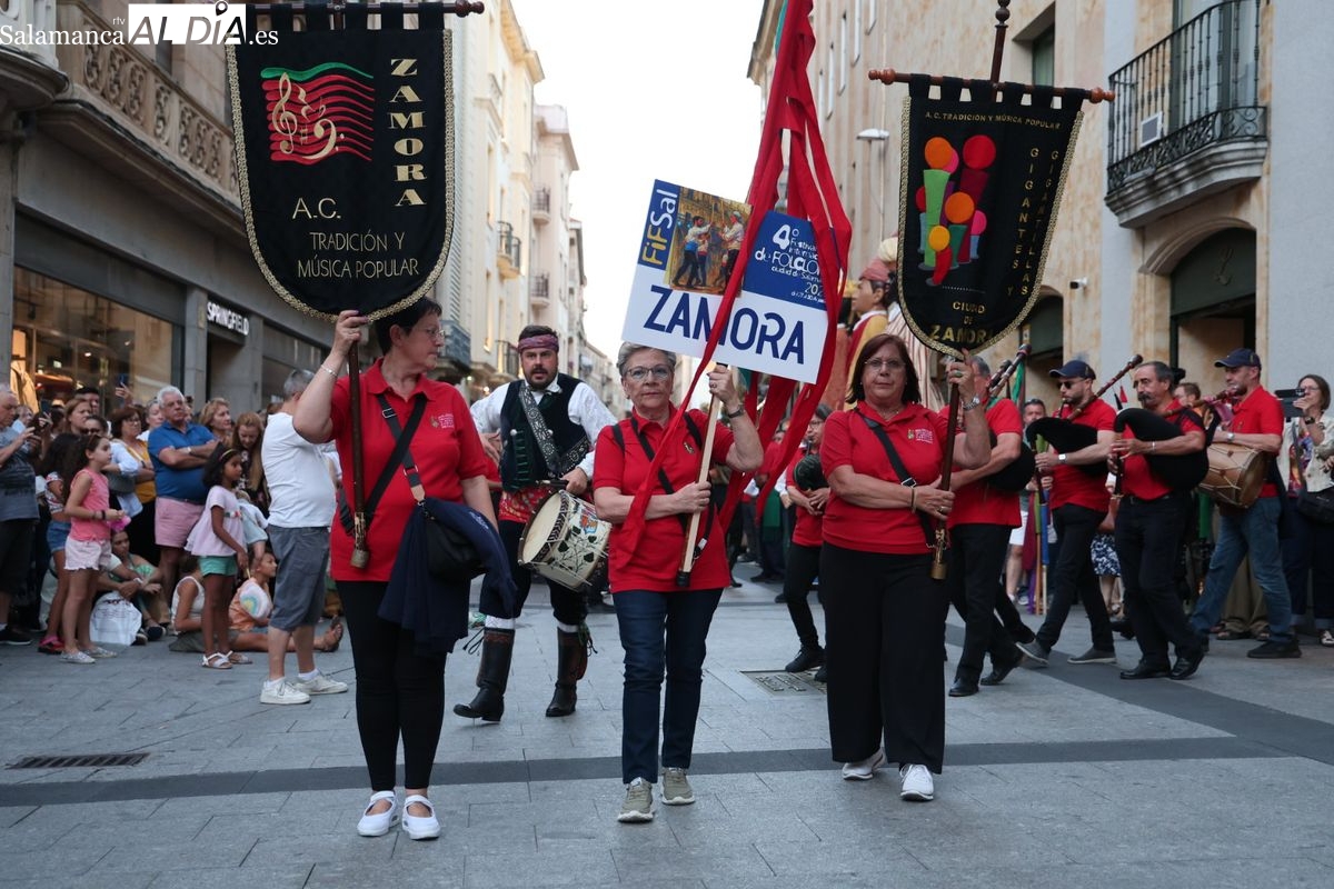 El evento ofreció un magnífico espectáculo visual y sonoro que celebra las tradiciones populares, destacando por la diversidad y la calidad de las agrupaciones participantes, que llenaron de música y color el corazón de la ciudad. Los protagonistas de este último desfile fueron Panche Peshev Kumanovo (Macedonia del Norte), Música popular Gigantes Gigantillas y Dulzaineros (Zamora) y Grupo Folclórico Añate Tenerife (Canarias).