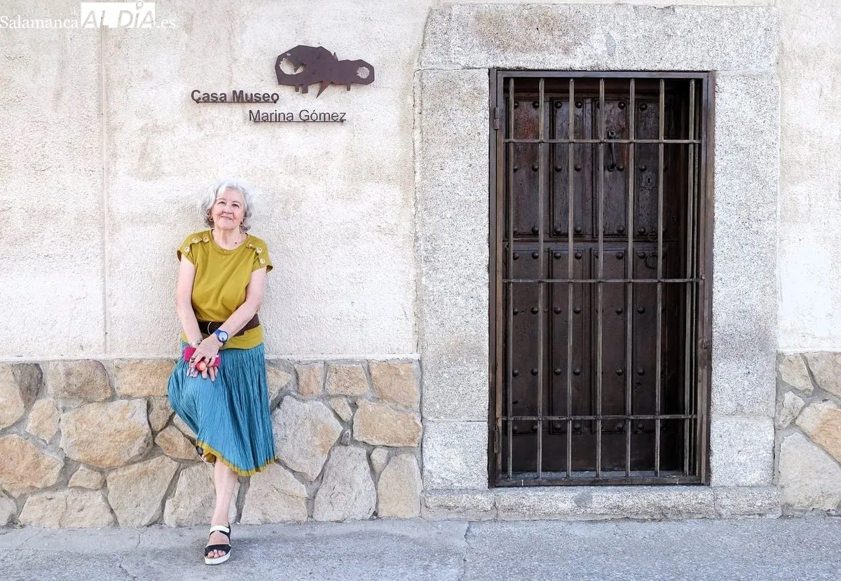 Marina Gómez nace en el Alaraz que ahora busca: “Me da mucha tranquilidad vivir en mi pueblo” y durante su niñez, el único contacto con el arte fue un álbum de su madre, quien por la guerra no pudo seguir estudiando y que ella copiaba: “Siempre tuve tendencia hacia el arte, aunque no había nada en casa salvo los dibujos de mi madre. Unos cuantos libros, algún juguete”. Su familia regentaba una fábrica de ladrillos y cerámica, y de ahí nace su amor a la materia, sus primeros intentos de alfarera, “pucheritos y ollas” que metían en el horno y que fueron la primera muestra de lo que sería su trabajo escultórico, volumen y curva. Ya en Salamanca, estudia Turismo la joven Marina, que asiste a las clases de la Escuela de Artes y Oficios. Durante las vacaciones va a trabajar a Francia, donde descubre el impresionismo. Ya en Madrid, estudia Ciencias de la Educación, se doctora en Logopedia y combina su trabajo con la asistencia a talleres y clases que no abandonará nunca: “El tiempo me cundía para todo, hijos, trabajo, clases… y en Madrid, vives en contacto con la pintura”. Le gusta el ambiente del taller, recibir y participar del aprendizaje de toda técnica. Su larga trayectoria de exposiciones, muestras colectivas y sobre todo, búsqueda constante, es la de una artista siempre inquieta que, sin embargo, no olvida nunca su paisaje. Y no solo porque regresa a esta Salamanca a la que entrega su Casa-Museo, sino por el Concurso Internacional de Pintura Rápida que pone Alaraz en el mapa de arte.