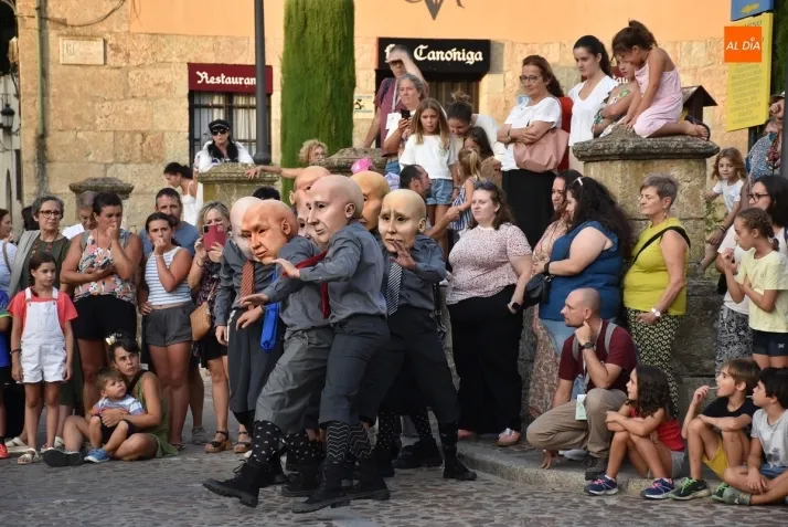 Hay que recordar que PIA ofreció una performance inspirada en el expresionismo de las caricaturas en su forma de ‘artivismo’, una manera inusual y humorística de analizar las transformaciones de una sociedad, apostando a lo largo de su trayecto por el centro histórico mirobrigense por las formas animadas, el teatro, las acrobacias y la manipulación de objetos.
