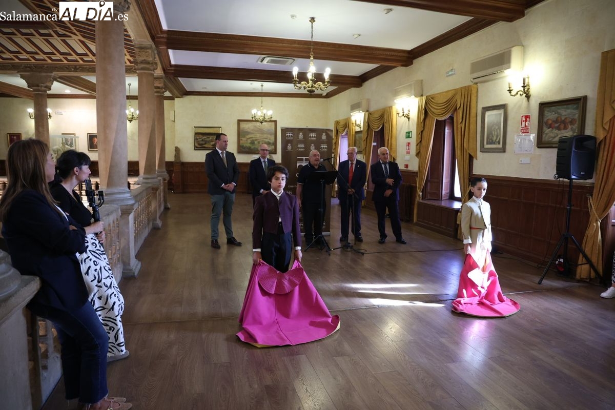 La sala de exposiciones de El Casino de Salamanca, ubicada en el histórico Palacio de Figueroa, acoge este miércoles, 3 de septiembre, la presentación oficial de la exposición ‘El toro, la Escuela, 40 aniversario’. El acto conmemora una efeméride la fundación de la Escuela de Tauromaquia de la Diputación de Salamanca en 1985, celebrando así sus cuatro décadas de trayectoria en la formación de toreros.