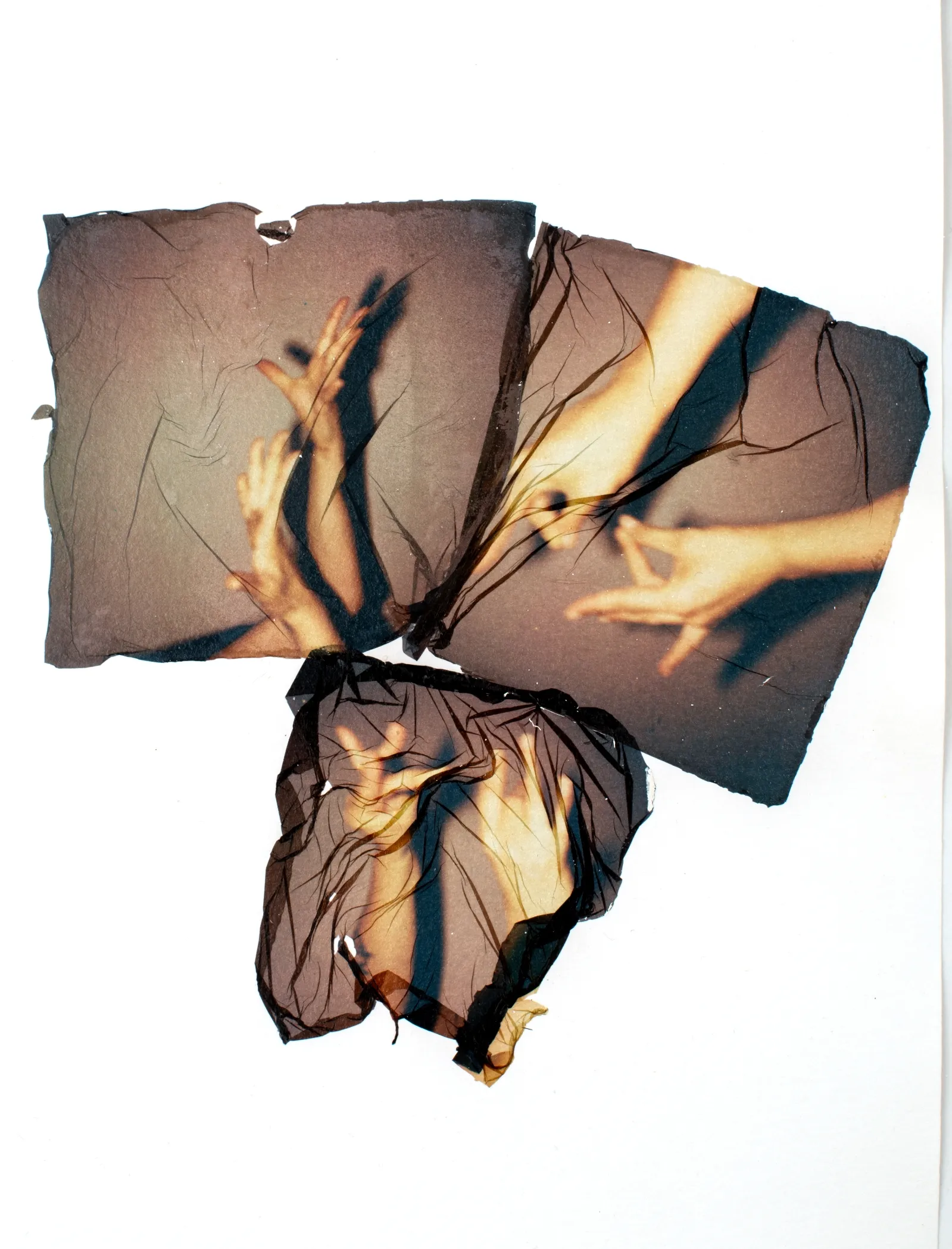 El proceso técnico de la obra es tan significativo como su concepto. Lorenzo transfiere la emulsión fotográfica directamente al papel, un método que simboliza la liberación y la expresión directa del sentimiento. El uso de pan de oro para reparar visualmente estas "heridas" en la imagen culmina el proceso de sanación.