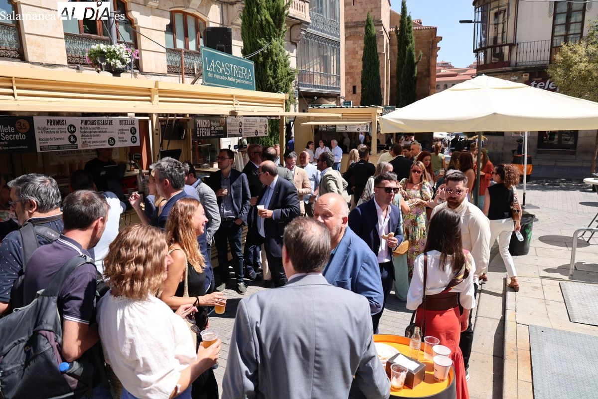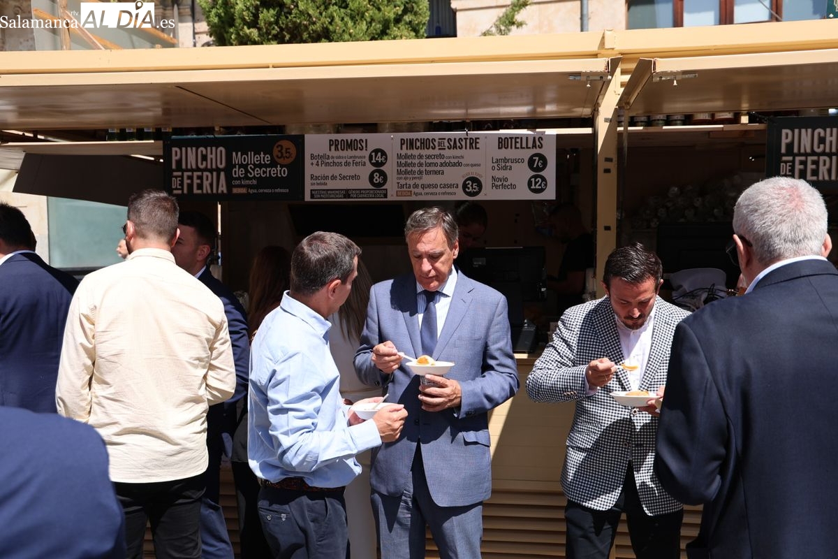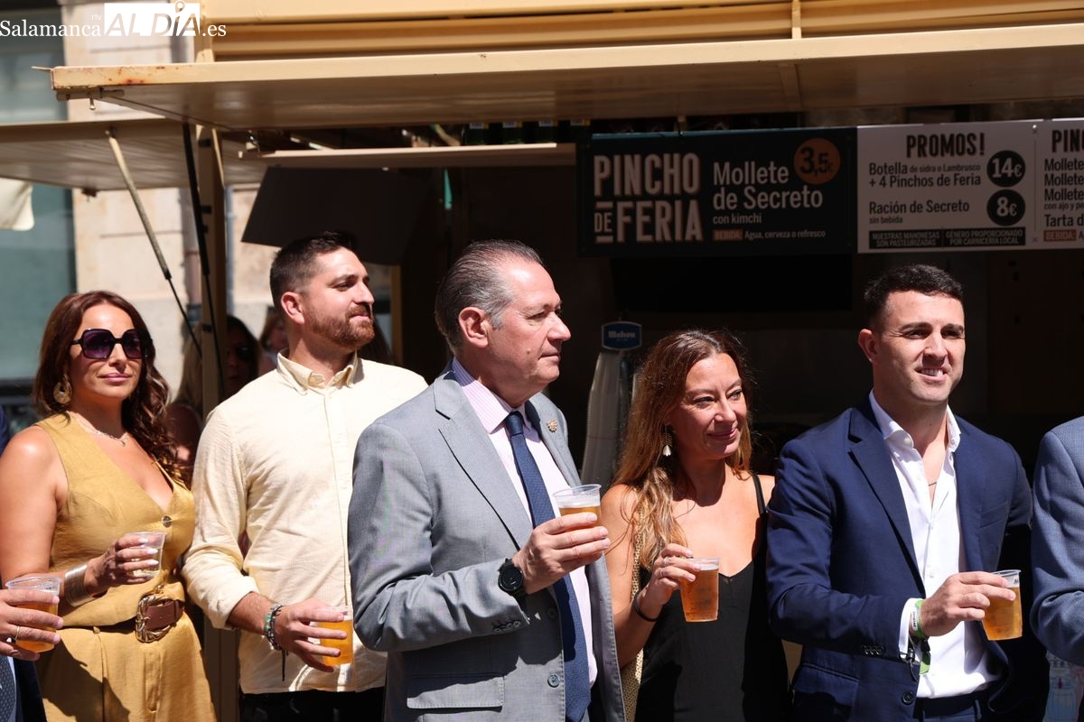 La Feria de Día de Salamanca 2025 ya es una realidad. El tradicional evento gastronómico ha quedado oficialmente inaugurado este jueves, 4 de septiembre. El acto de apertura, celebrado en las casetas de la Plaza del Mercado, ha contado con la presencia de la Asociación de Empresarios de Hostelería, acompañada por representantes del Ayuntamiento de Salamanca, la Cámara de Comercio y CES, además de patrocinadores y colaboradores.