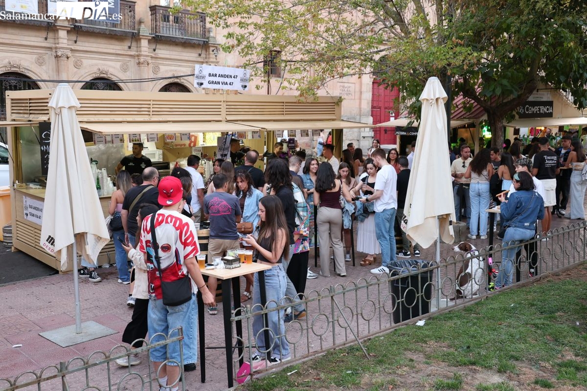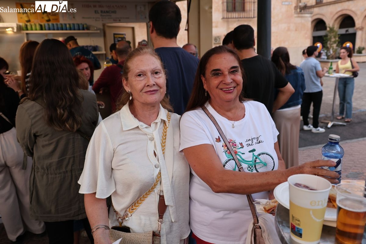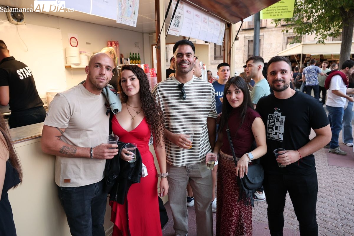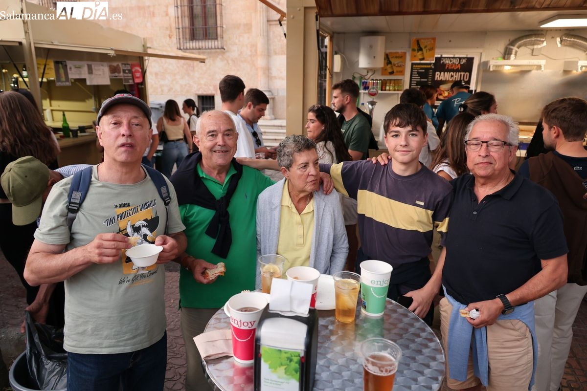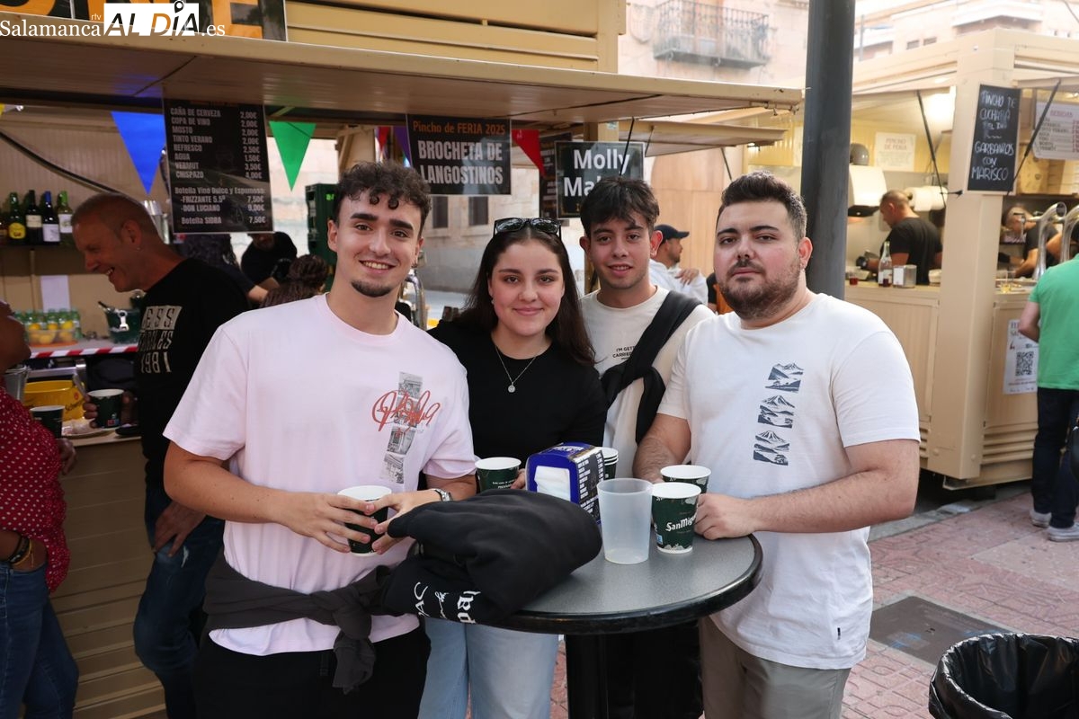 La Feria de Día de Salamanca ha arrancado este jueves, 4 de septiembre, con un notable ambiente en sus casetas, especialmente en las ubicadas en la céntrica plaza de los Bandos. El precio es de 3'5, como en los últimos años.