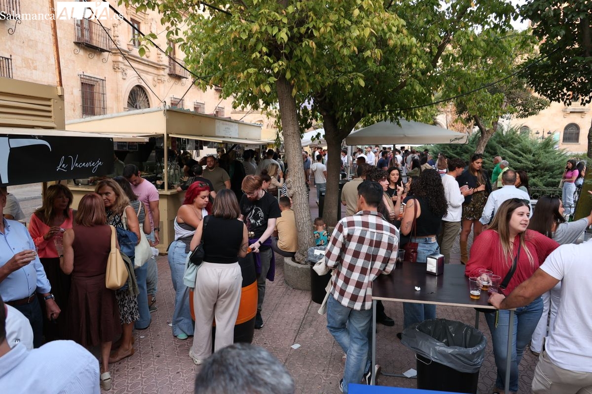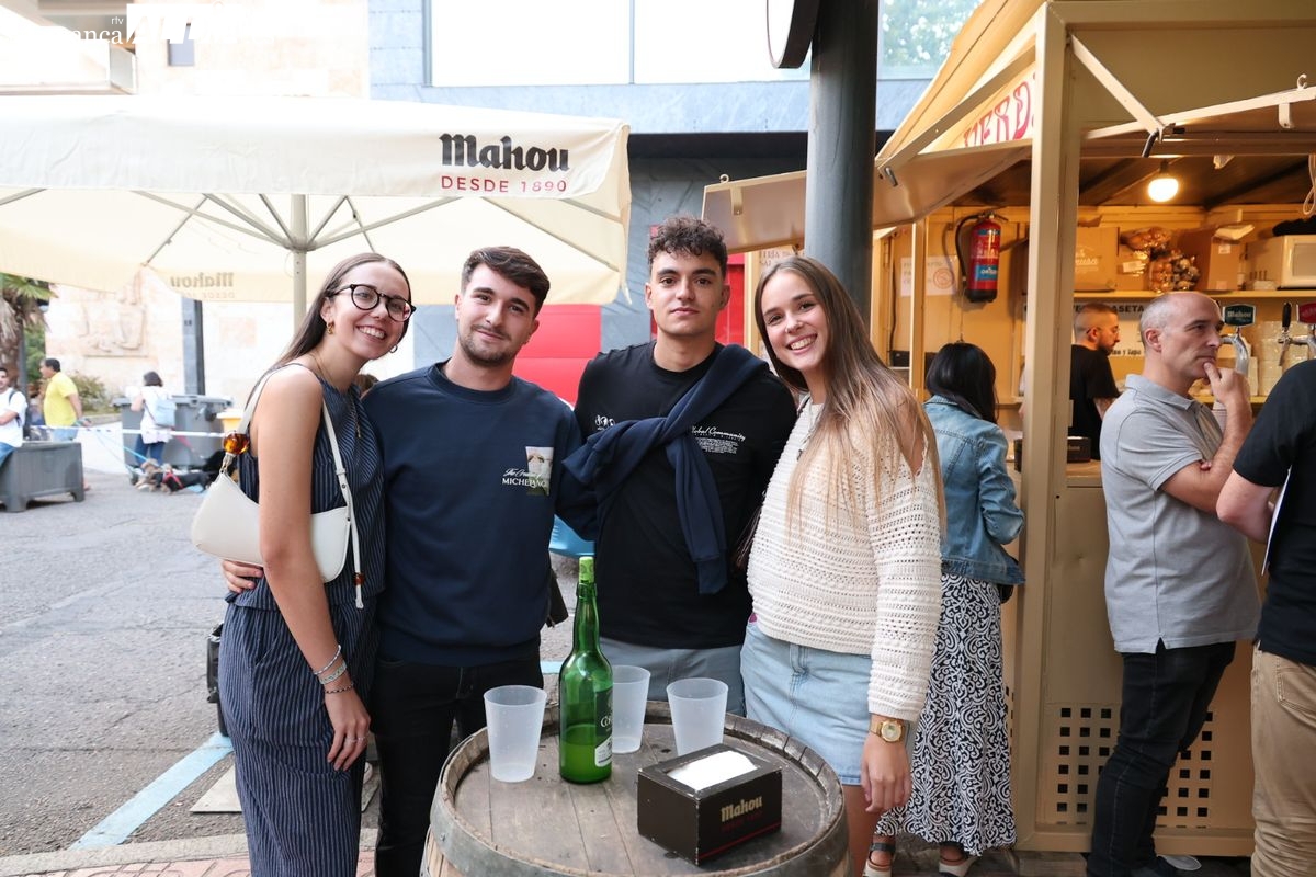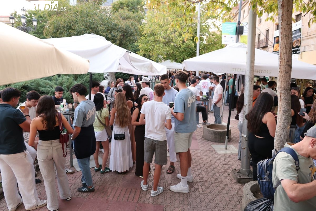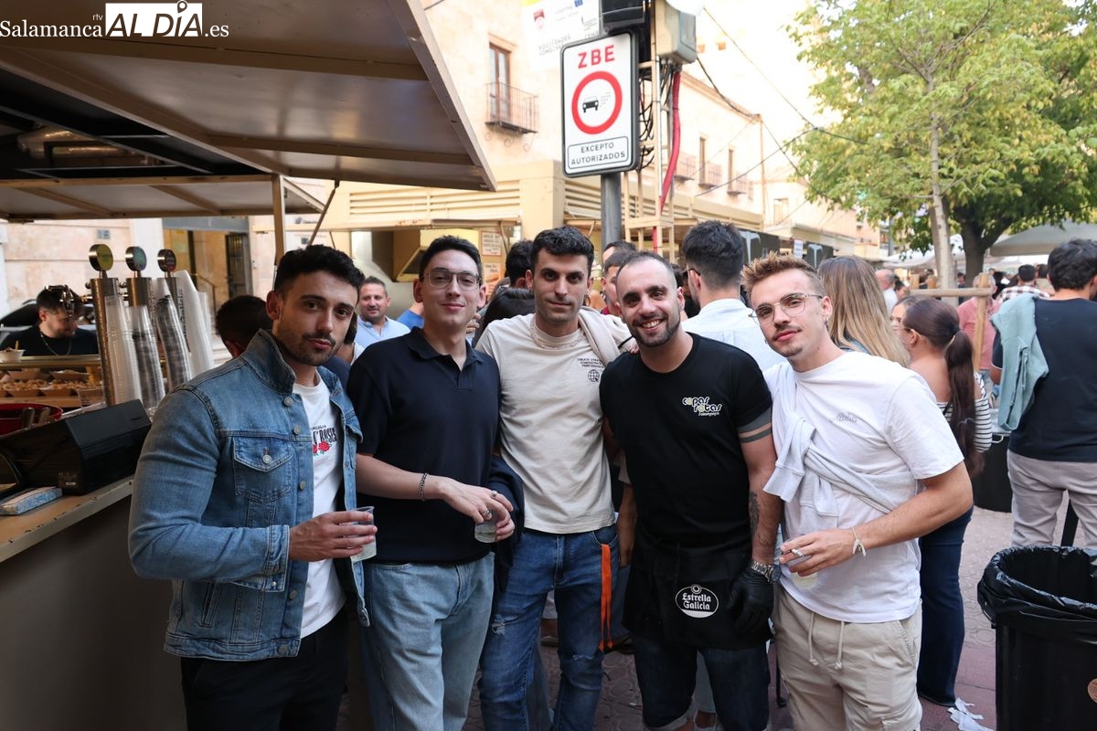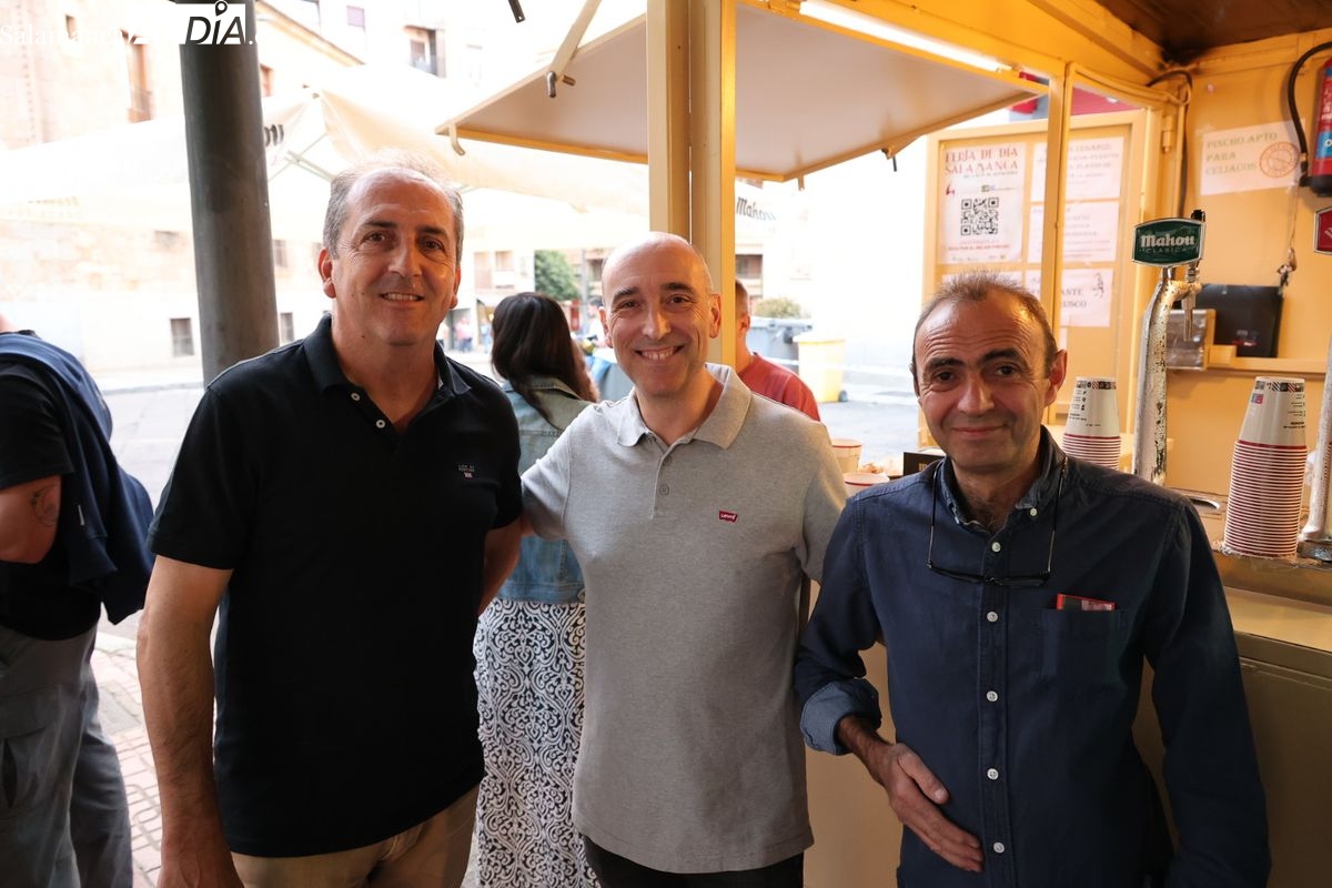 La Feria de Día de Salamanca ha arrancado este jueves, 4 de septiembre, con un notable ambiente en sus casetas, especialmente en las ubicadas en la céntrica plaza de los Bandos. El precio es de 3'5, como en los últimos años.