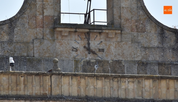 El emblemático reloj situado en la parte alta de la fachada de la Casa Consistorial de Ciudad Rodrigo, justo debajo de la campana cuyos ritmos marcan especialmente el devenir del Carnaval del Toro, volverá a funcionar en las próximas semanas, siempre que no surjan contratiempos en la intervención para su reparación que se va a acometer este mismo mes de septiembre.