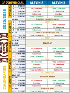 Dentro de cada vuelta, el Alevín A tendrá 2 partidos en casa y 2 fuera, además del derby; mientras que el ritmo del Alevín B será diferente: en tres de las vueltas tendrá 3 partidos en casa y 1 fuera; y en las otras dos, apenas 1 en casa y 3 fuera. Comparando los calendarios, los alevines A y B jugarán al mismo tiempo en casa o fuera en 4 de las 5 jornadas de cada vuelta (obviamente una de ellas será la correspondiente al derby).