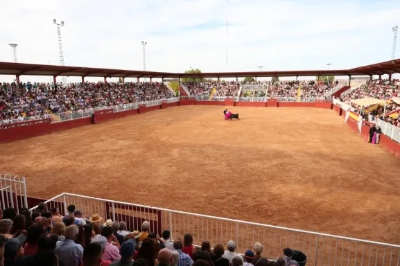 Más de 2.000 personas abarrotan el anillo de exhibiciones para ver a los alumnos de la Escuela de Tauromaquia Álvaro Rojo, Diego Mateos e Íñigo Norte, que han cortado dos orejas cada uno.