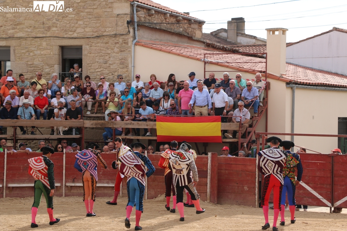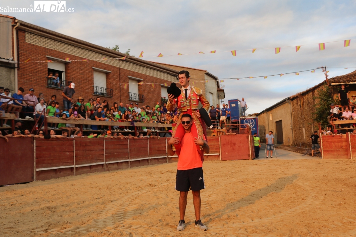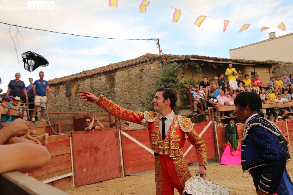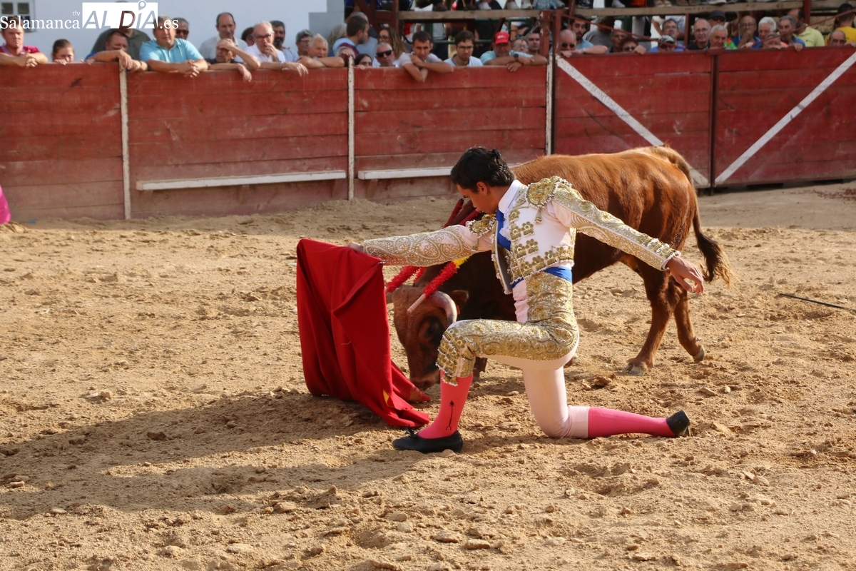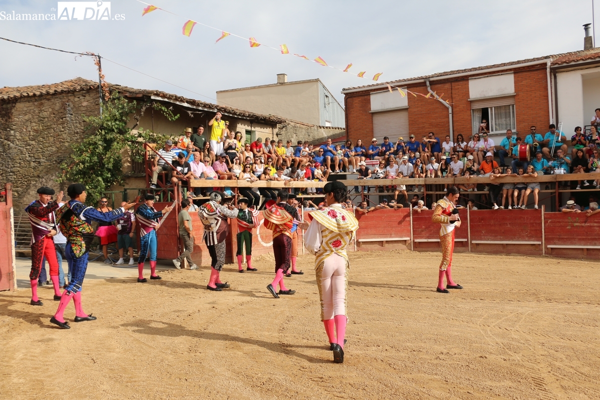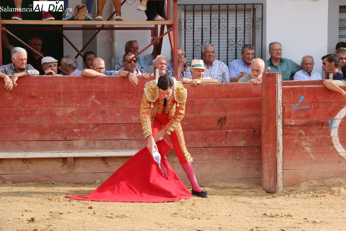 Intensa tarde taurina la que se ha vivido este sábado en Mieza con motivo de sus fiestas de las Madrinas en honor a la Virgen del Árbol, y en la que se celebró una novillada con la actuación de los alumnos de la Escuela de Tauromaquia de Salamanca, Emilio García Torres y Noel García, además de una divertida capea para disfrute de los aficionados.