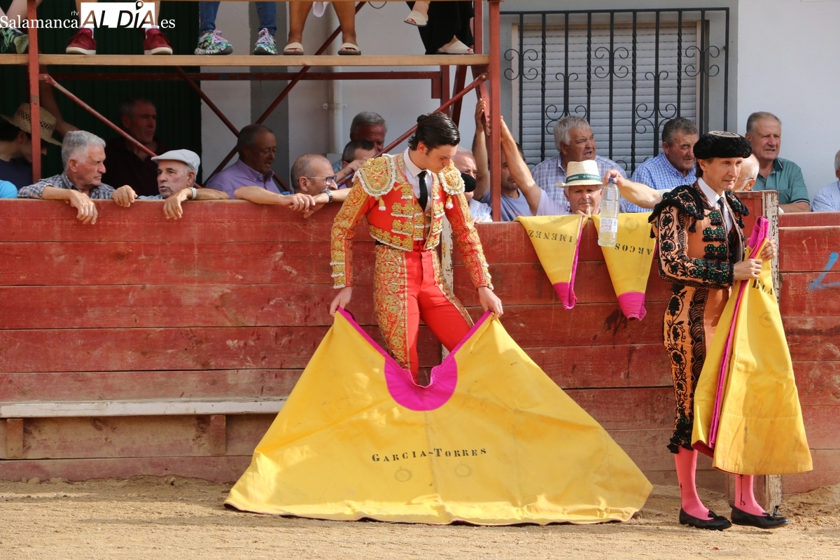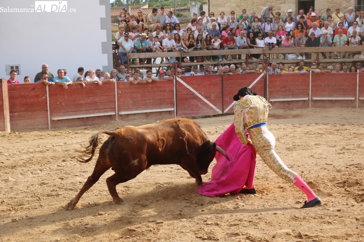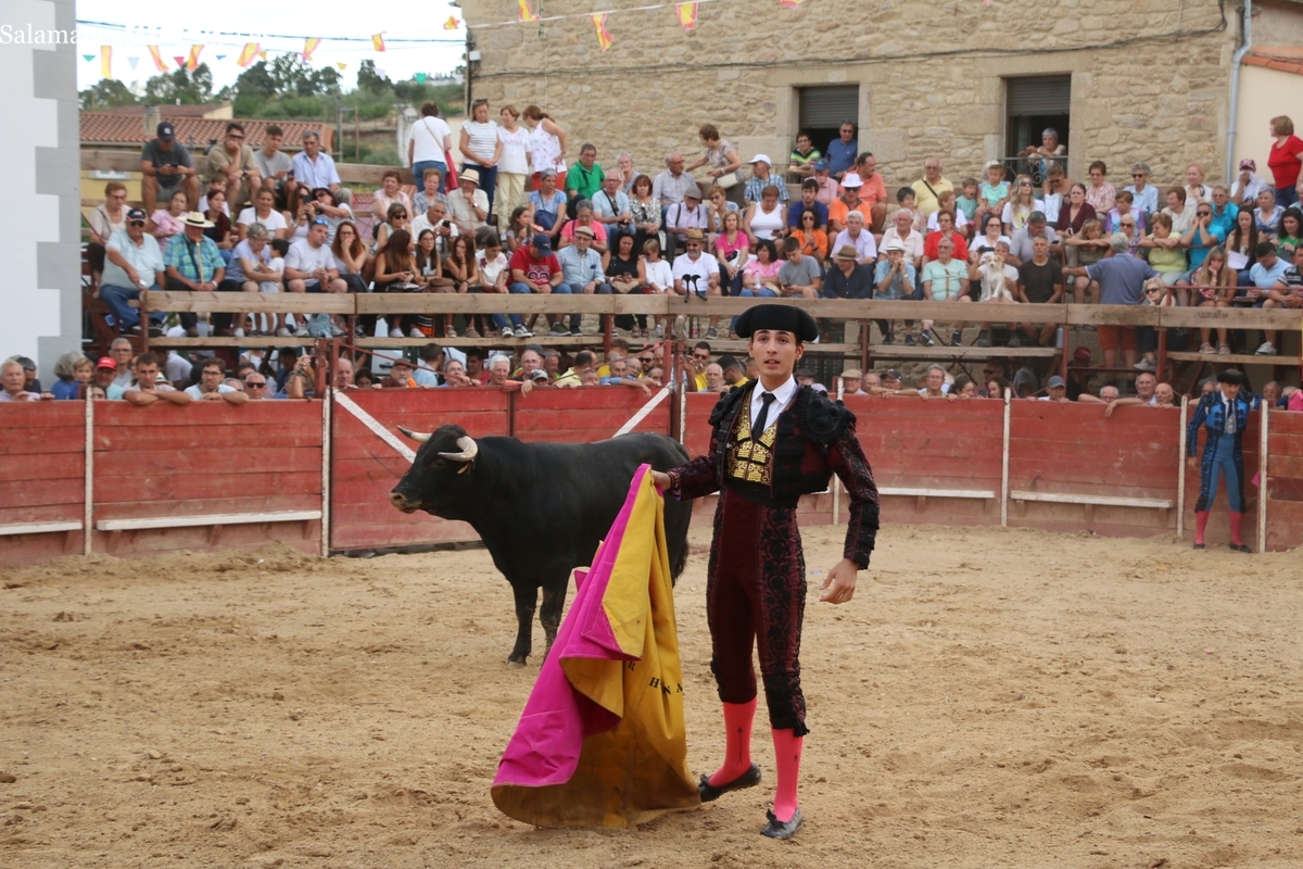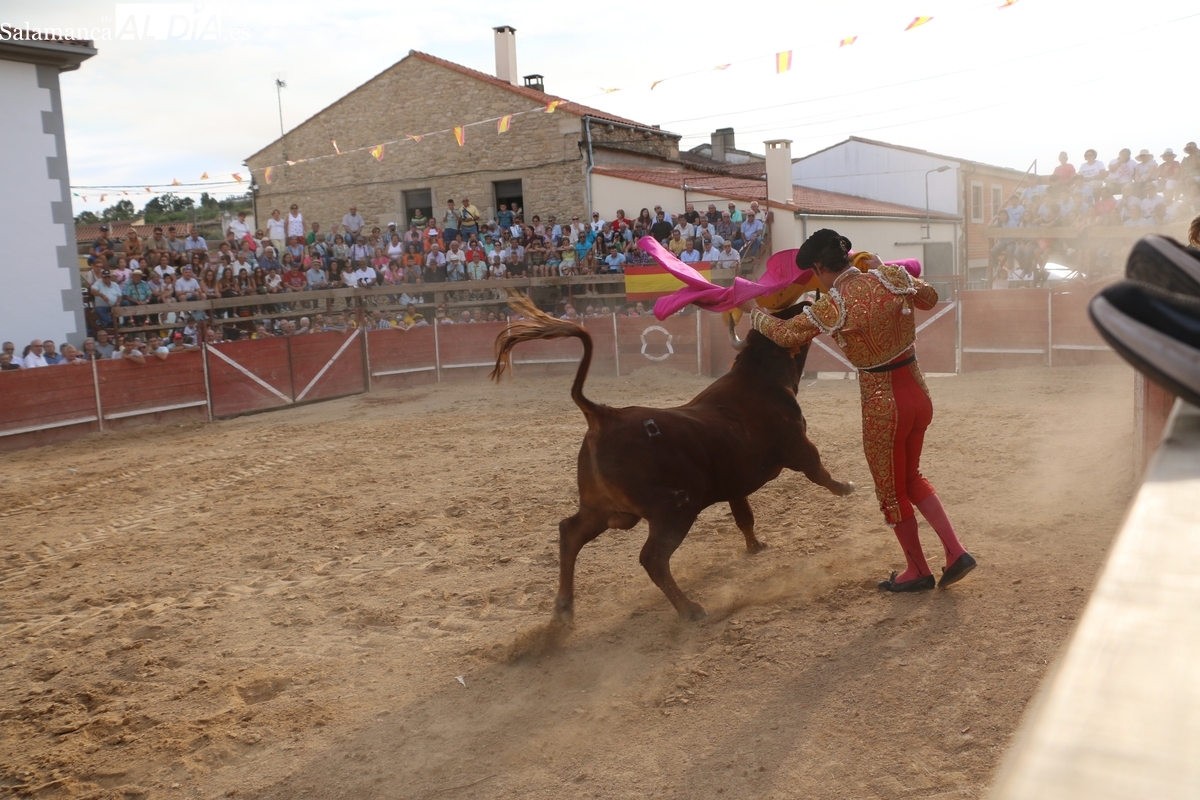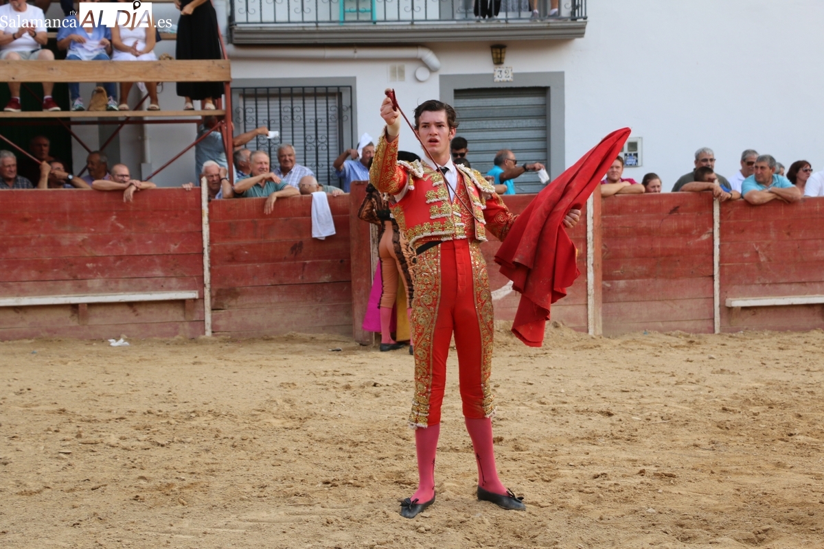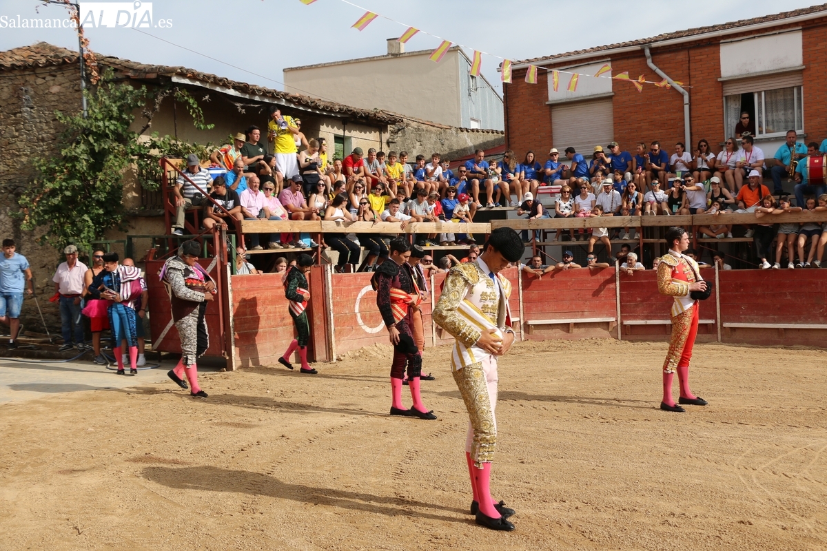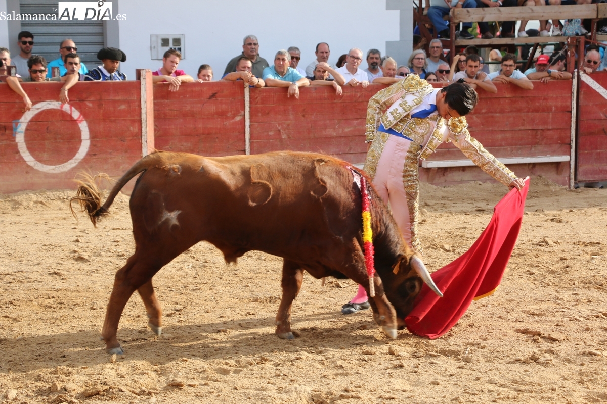 Intensa tarde taurina la que se ha vivido este sábado en Mieza con motivo de sus fiestas de las Madrinas en honor a la Virgen del Árbol, y en la que se celebró una novillada con la actuación de los alumnos de la Escuela de Tauromaquia de Salamanca, Emilio García Torres y Noel García, además de una divertida capea para disfrute de los aficionados.