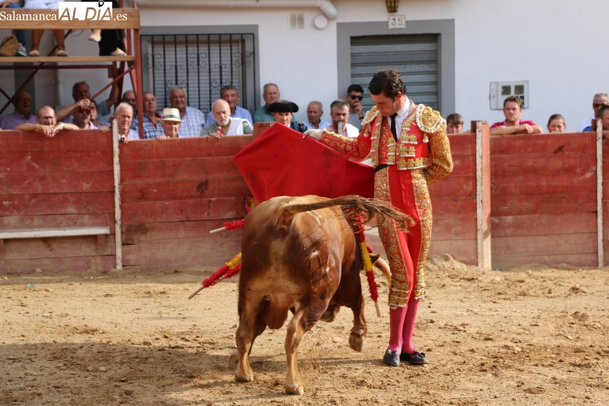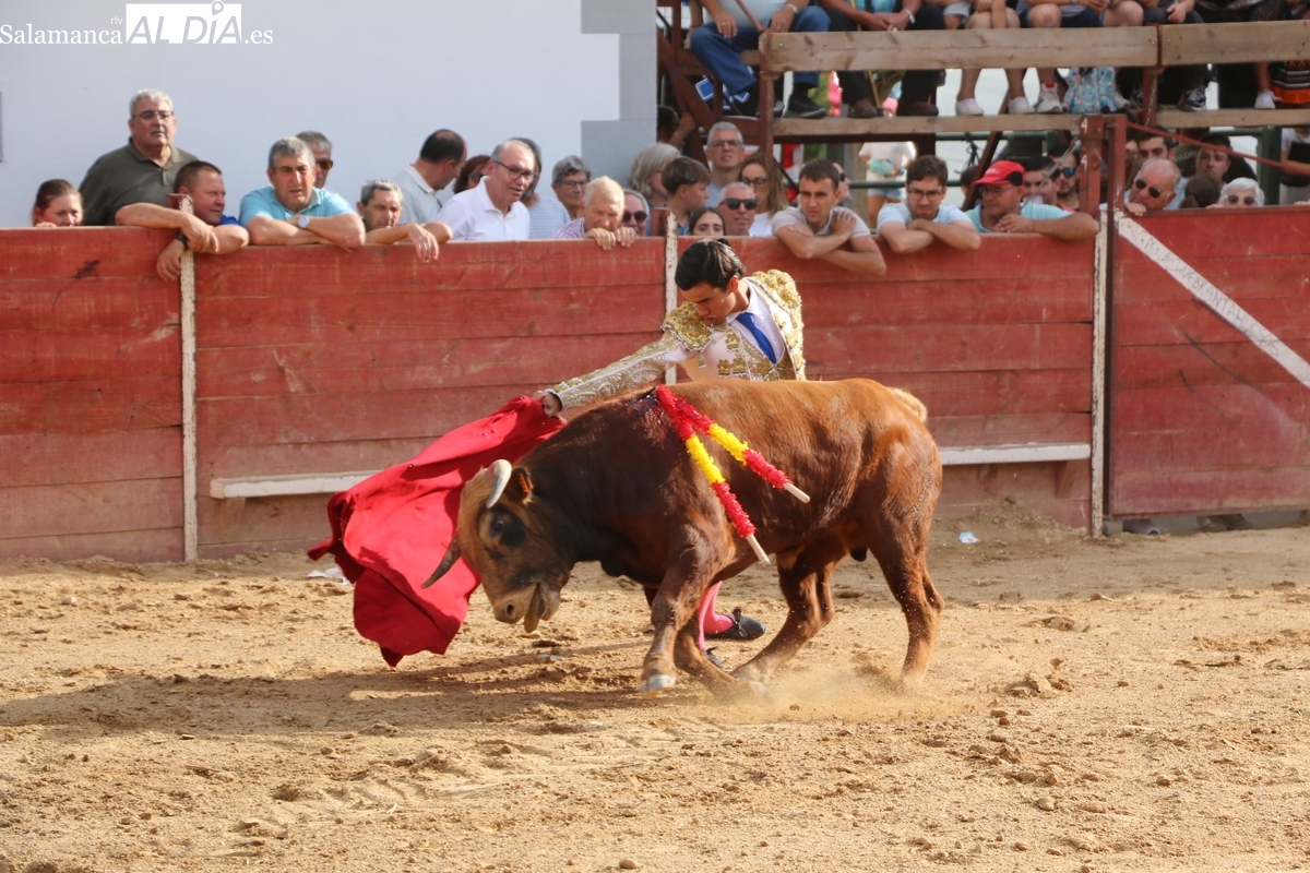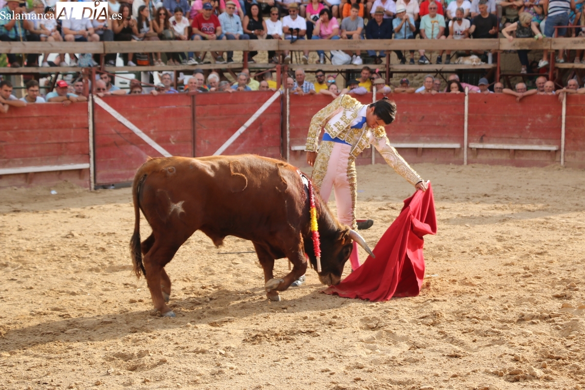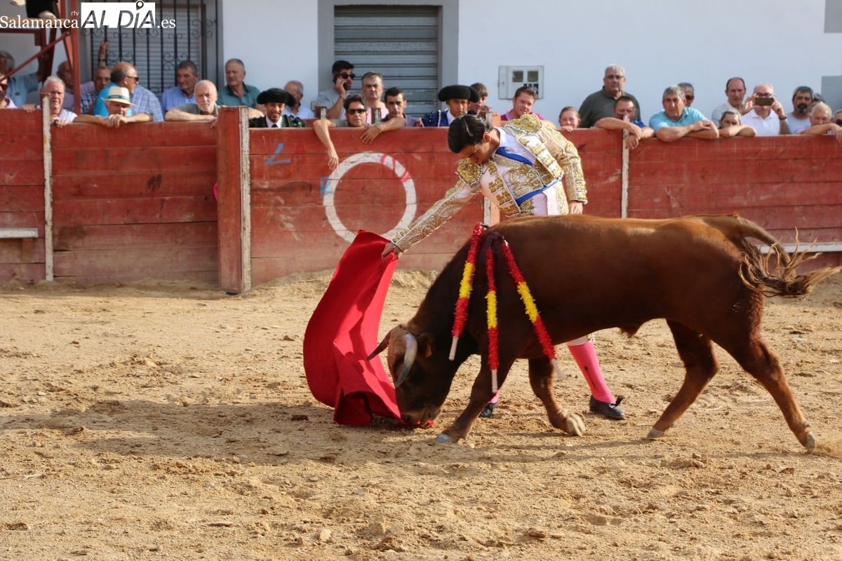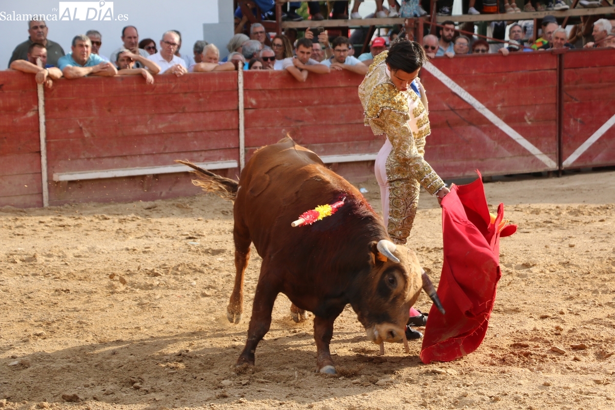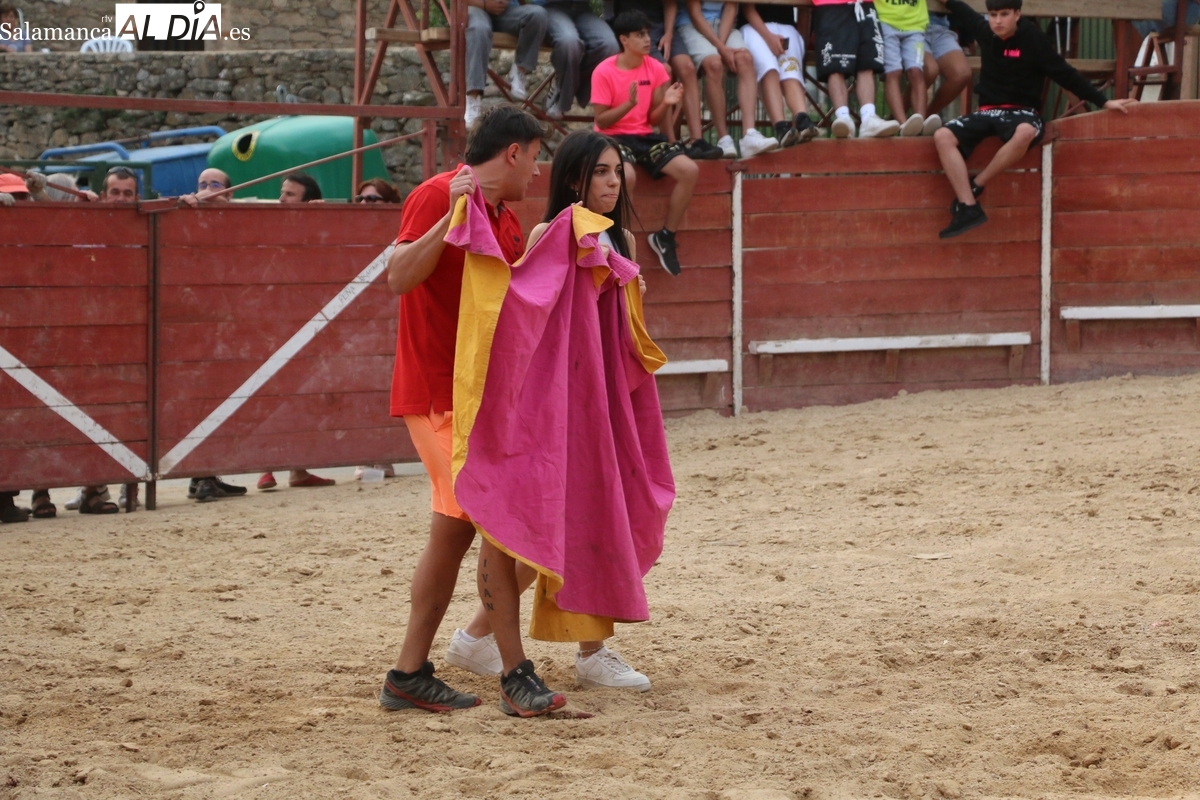 Intensa tarde taurina la que se ha vivido este sábado en Mieza con motivo de sus fiestas de las Madrinas en honor a la Virgen del Árbol, y en la que se celebró una novillada con la actuación de los alumnos de la Escuela de Tauromaquia de Salamanca, Emilio García Torres y Noel García, además de una divertida capea para disfrute de los aficionados.