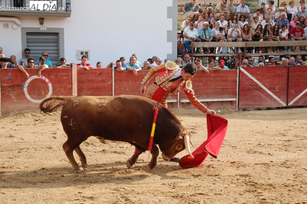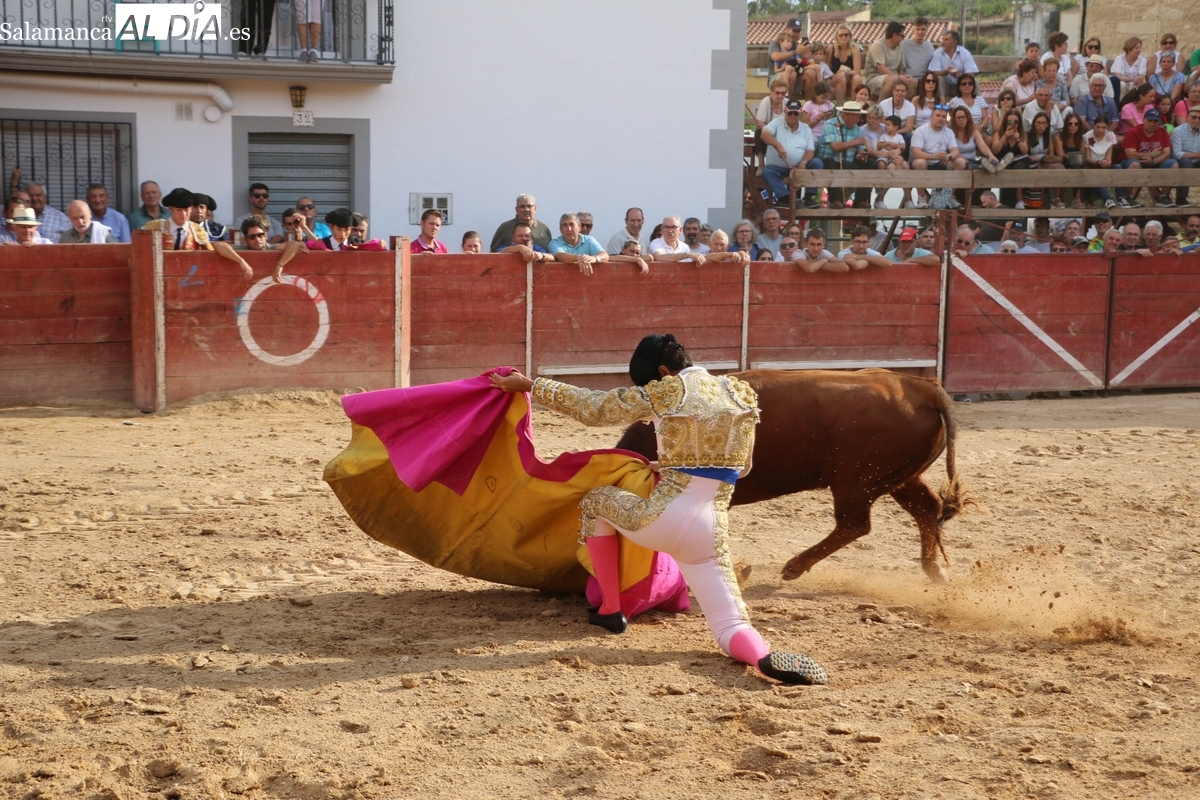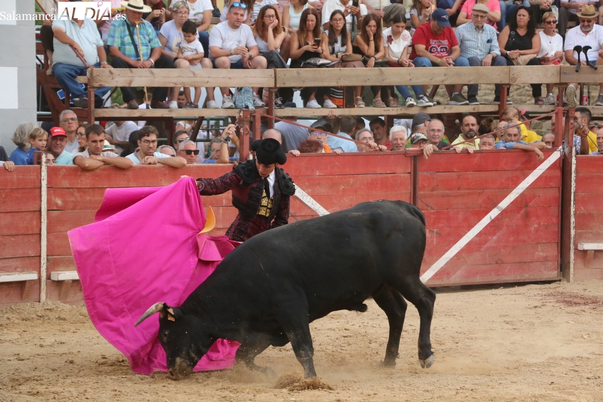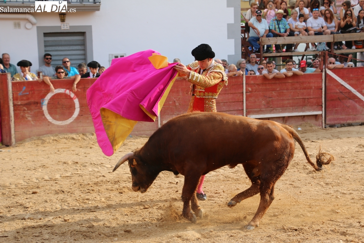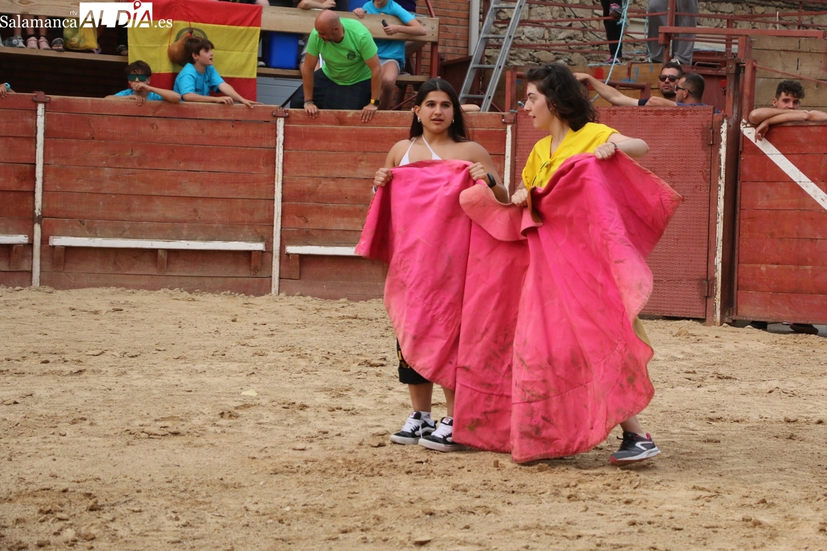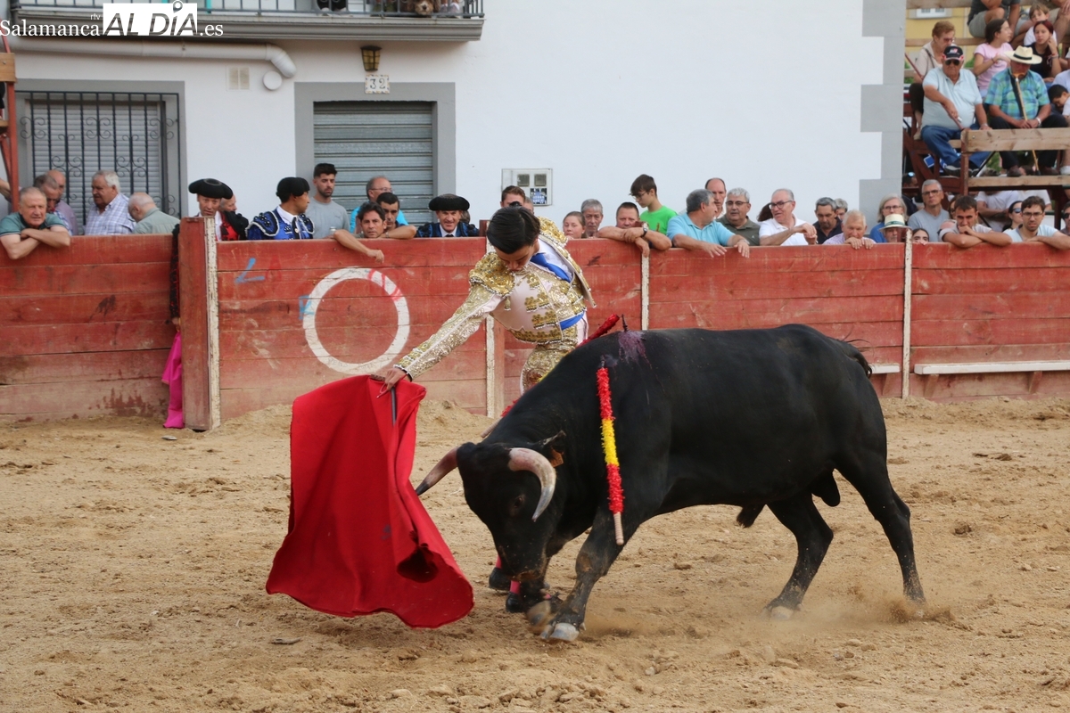 Intensa tarde taurina la que se ha vivido este sábado en Mieza con motivo de sus fiestas de las Madrinas en honor a la Virgen del Árbol, y en la que se celebró una novillada con la actuación de los alumnos de la Escuela de Tauromaquia de Salamanca, Emilio García Torres y Noel García, además de una divertida capea para disfrute de los aficionados.