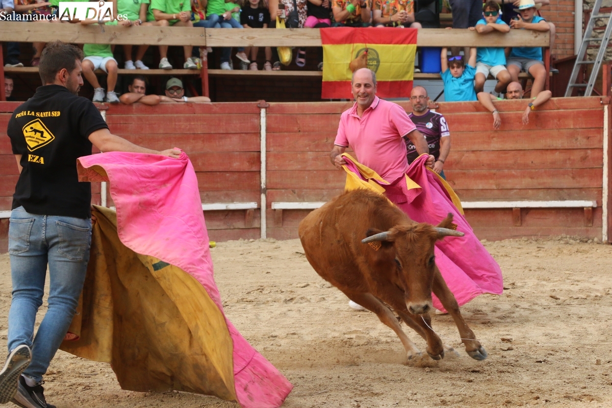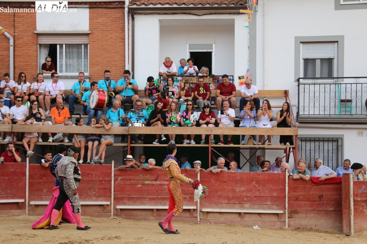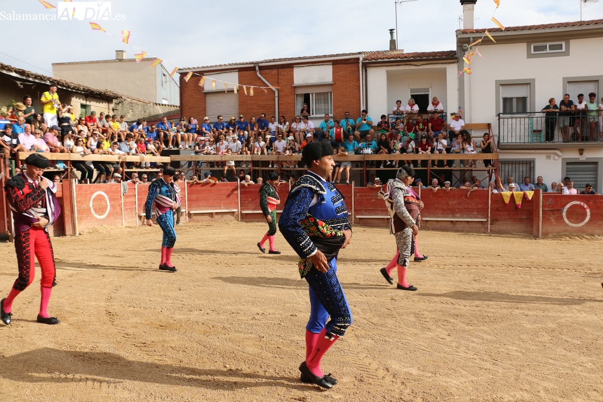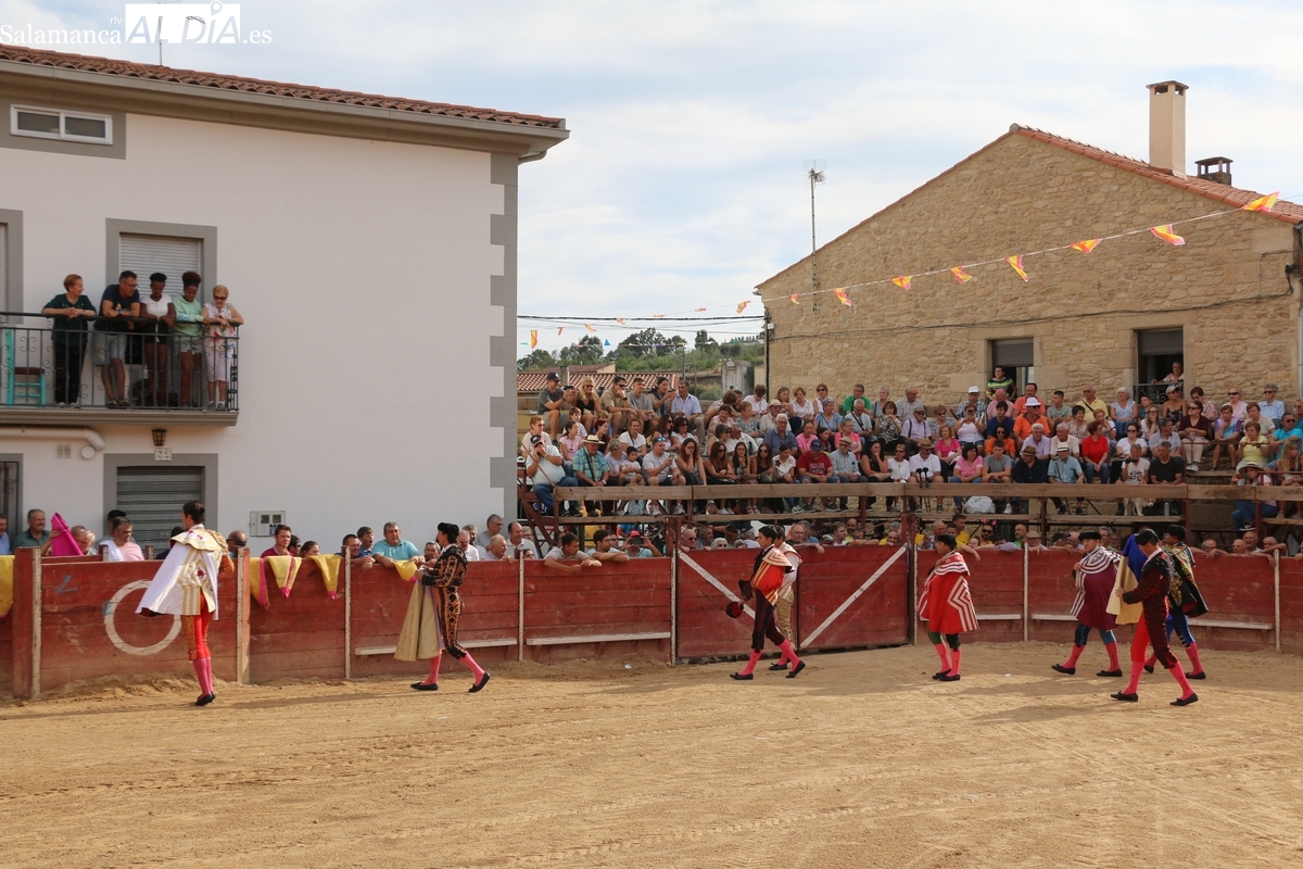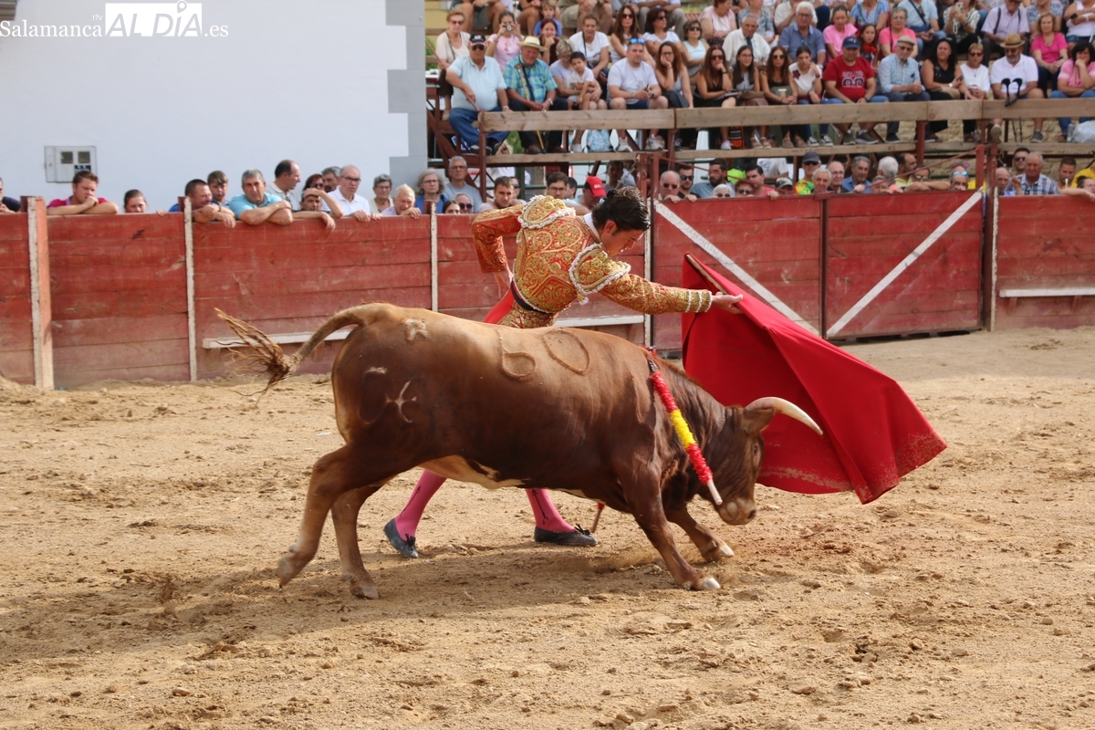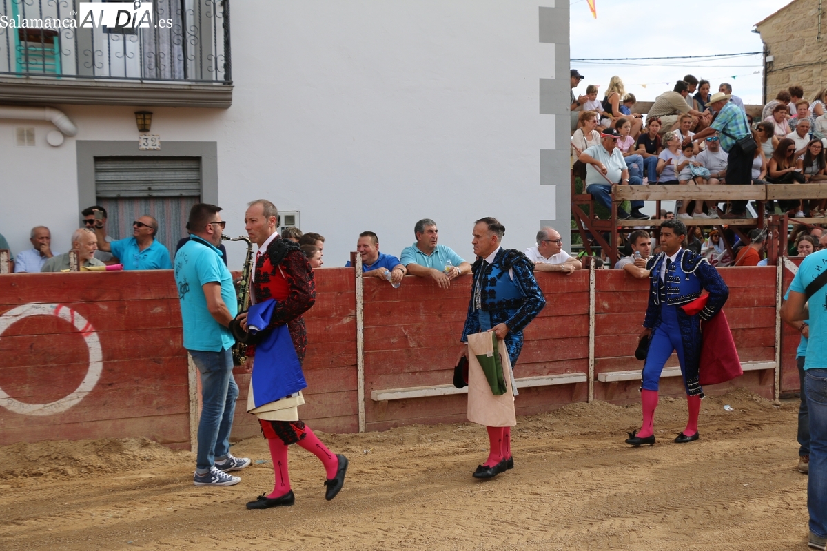 Intensa tarde taurina la que se ha vivido este sábado en Mieza con motivo de sus fiestas de las Madrinas en honor a la Virgen del Árbol, y en la que se celebró una novillada con la actuación de los alumnos de la Escuela de Tauromaquia de Salamanca, Emilio García Torres y Noel García, además de una divertida capea para disfrute de los aficionados.