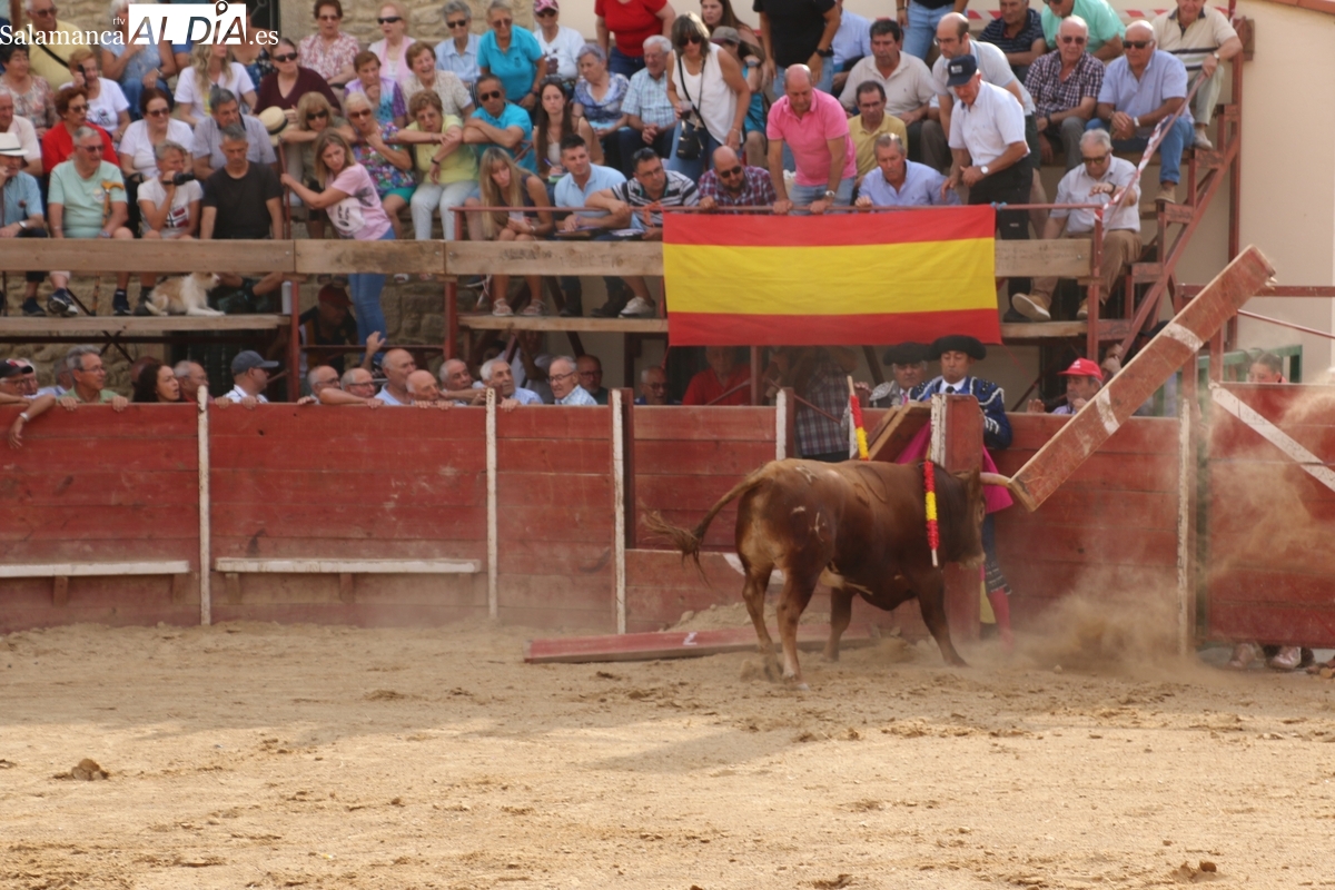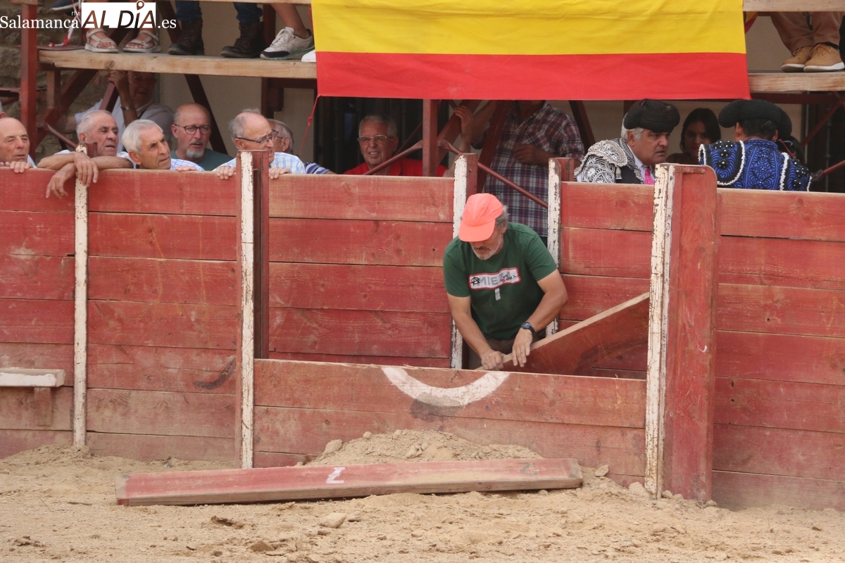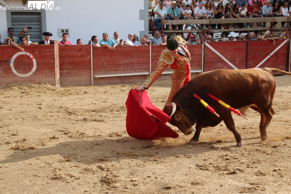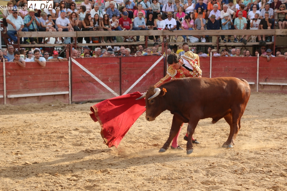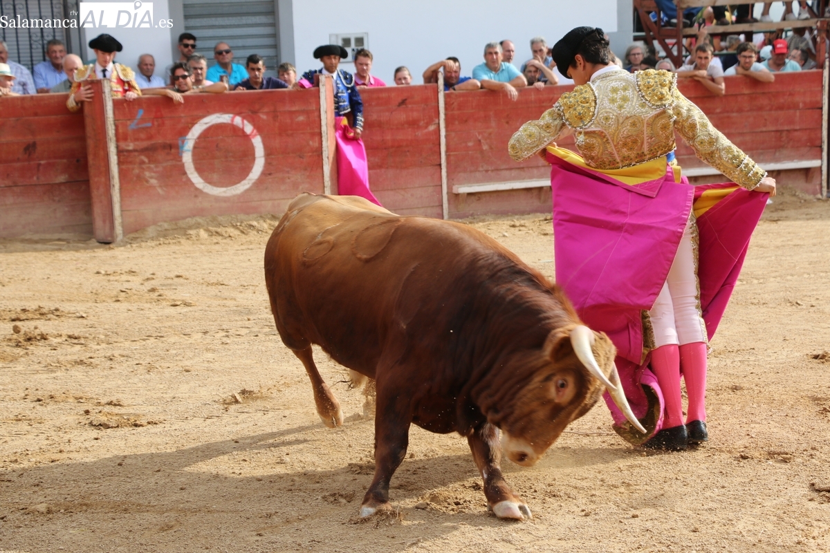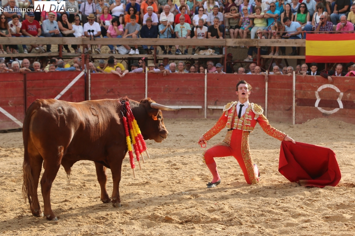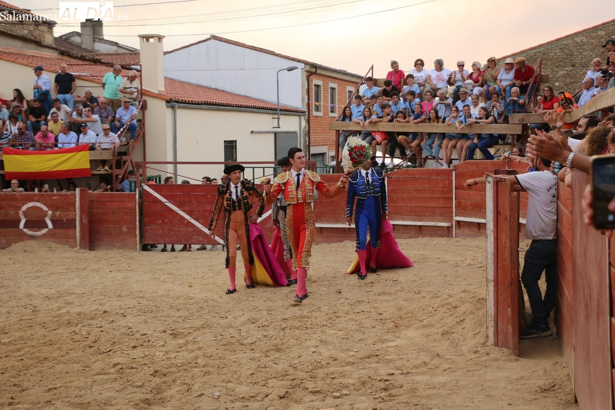Intensa tarde taurina la que se ha vivido este sábado en Mieza con motivo de sus fiestas de las Madrinas en honor a la Virgen del Árbol, y en la que se celebró una novillada con la actuación de los alumnos de la Escuela de Tauromaquia de Salamanca, Emilio García Torres y Noel García, además de una divertida capea para disfrute de los aficionados.