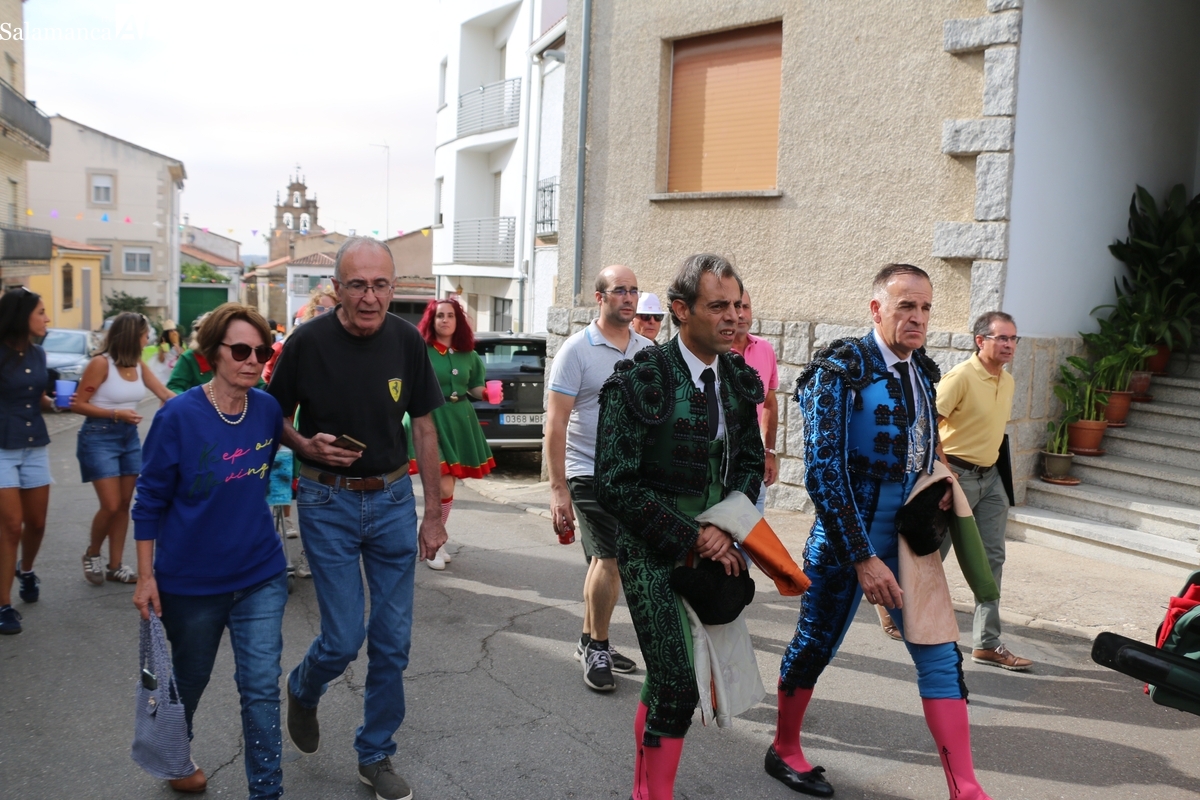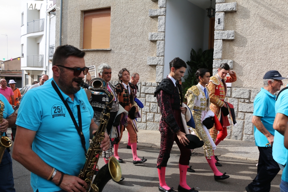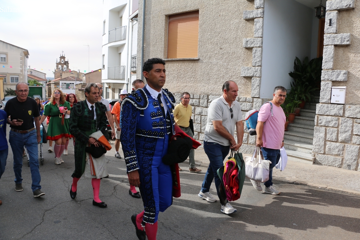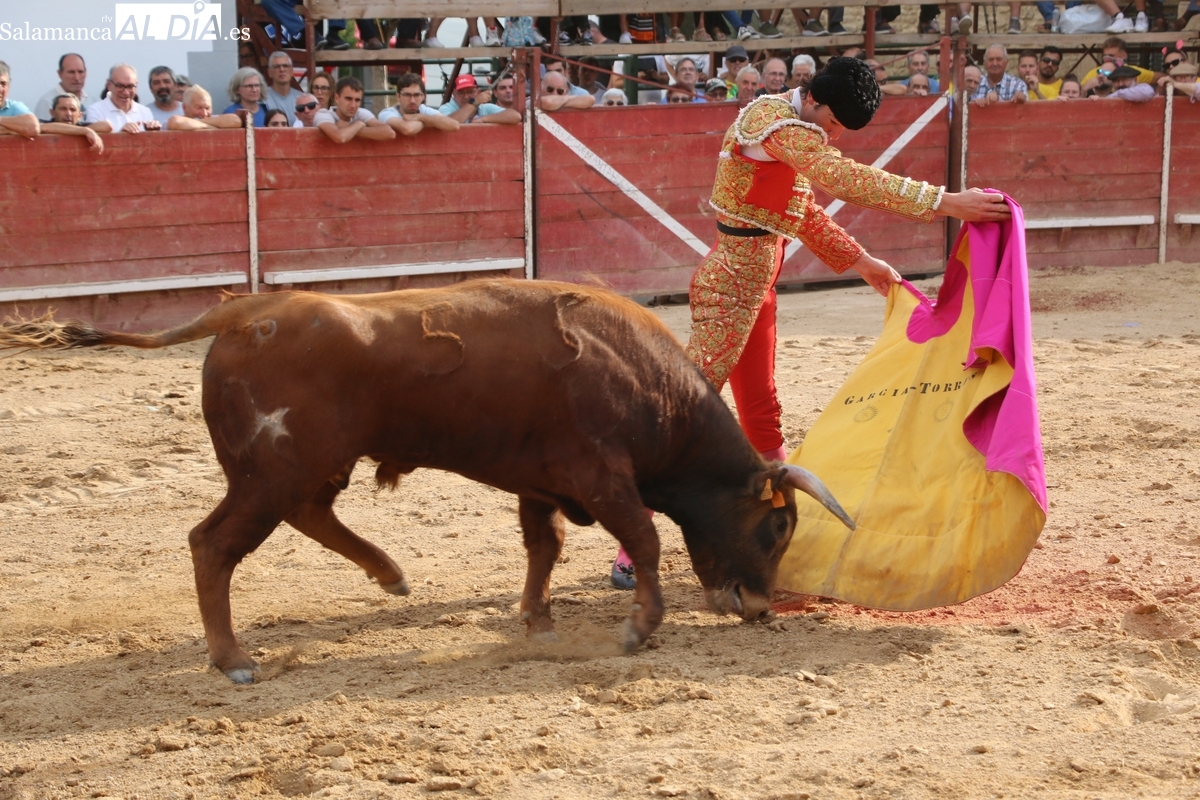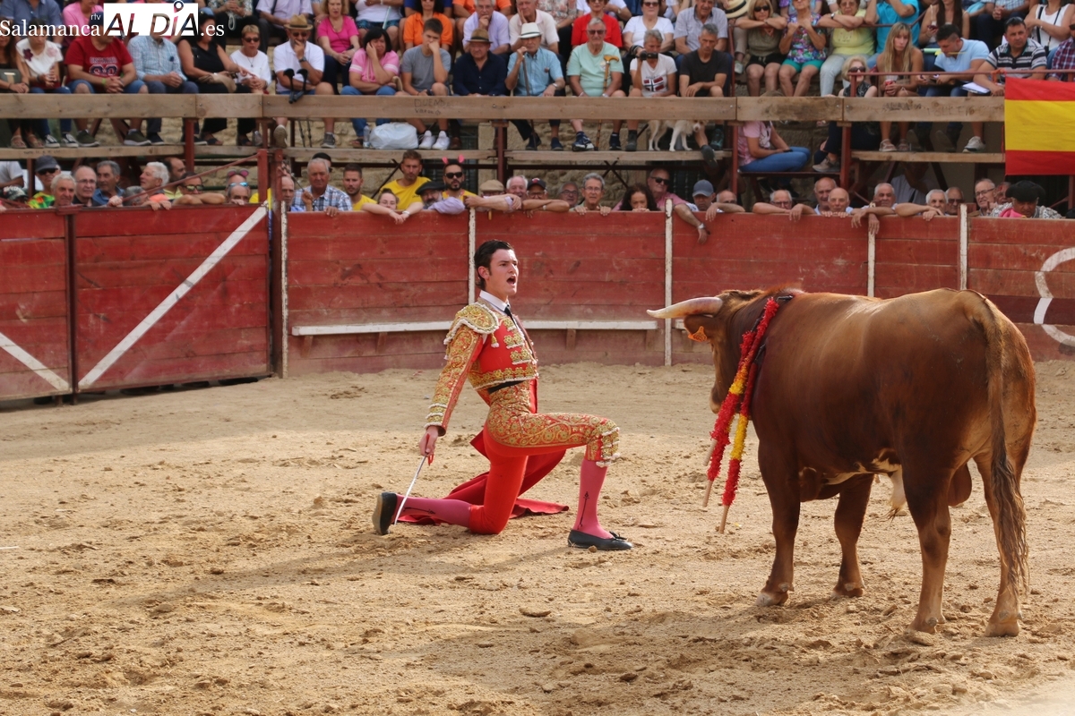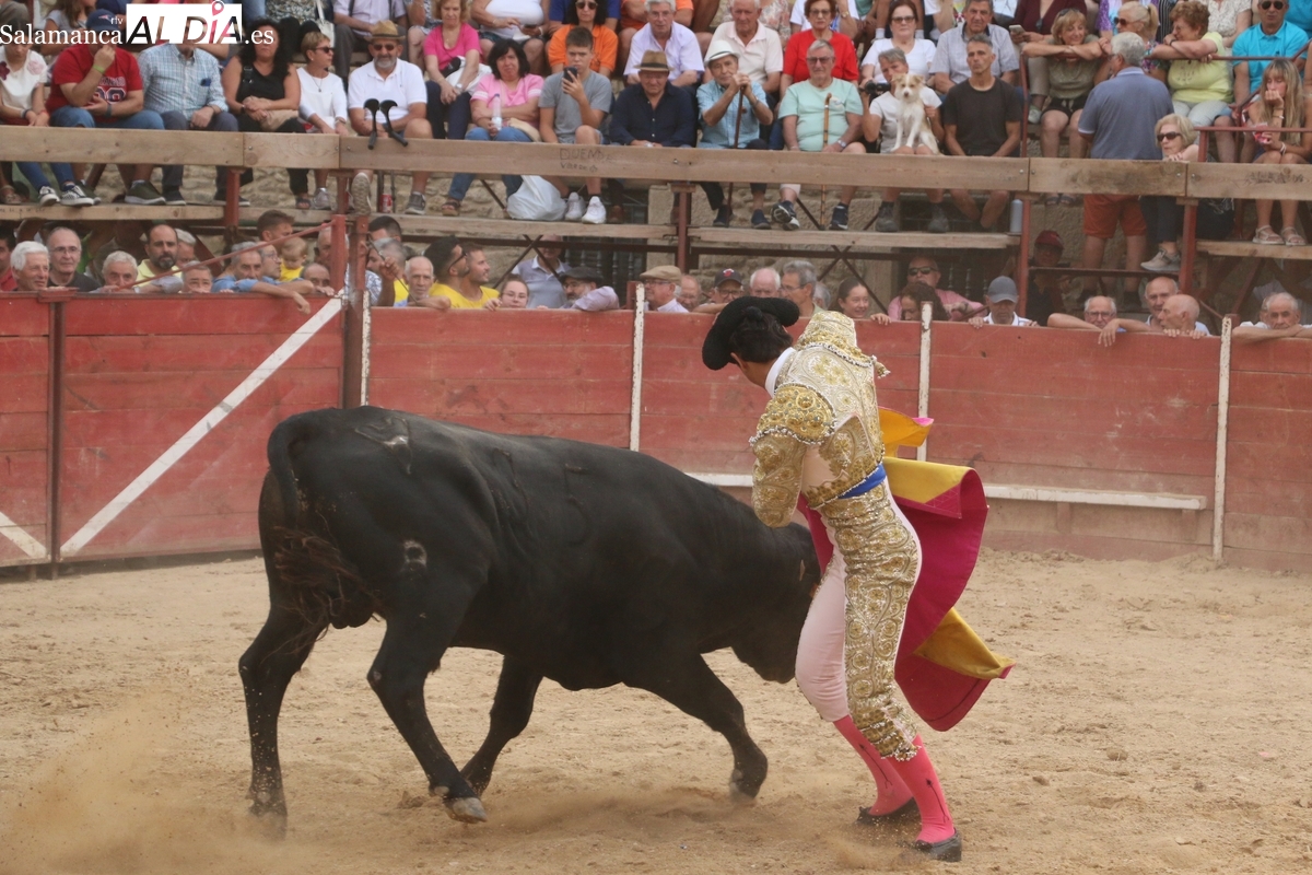 Intensa tarde taurina la que se ha vivido este sábado en Mieza con motivo de sus fiestas de las Madrinas en honor a la Virgen del Árbol, y en la que se celebró una novillada con la actuación de los alumnos de la Escuela de Tauromaquia de Salamanca, Emilio García Torres y Noel García, además de una divertida capea para disfrute de los aficionados.