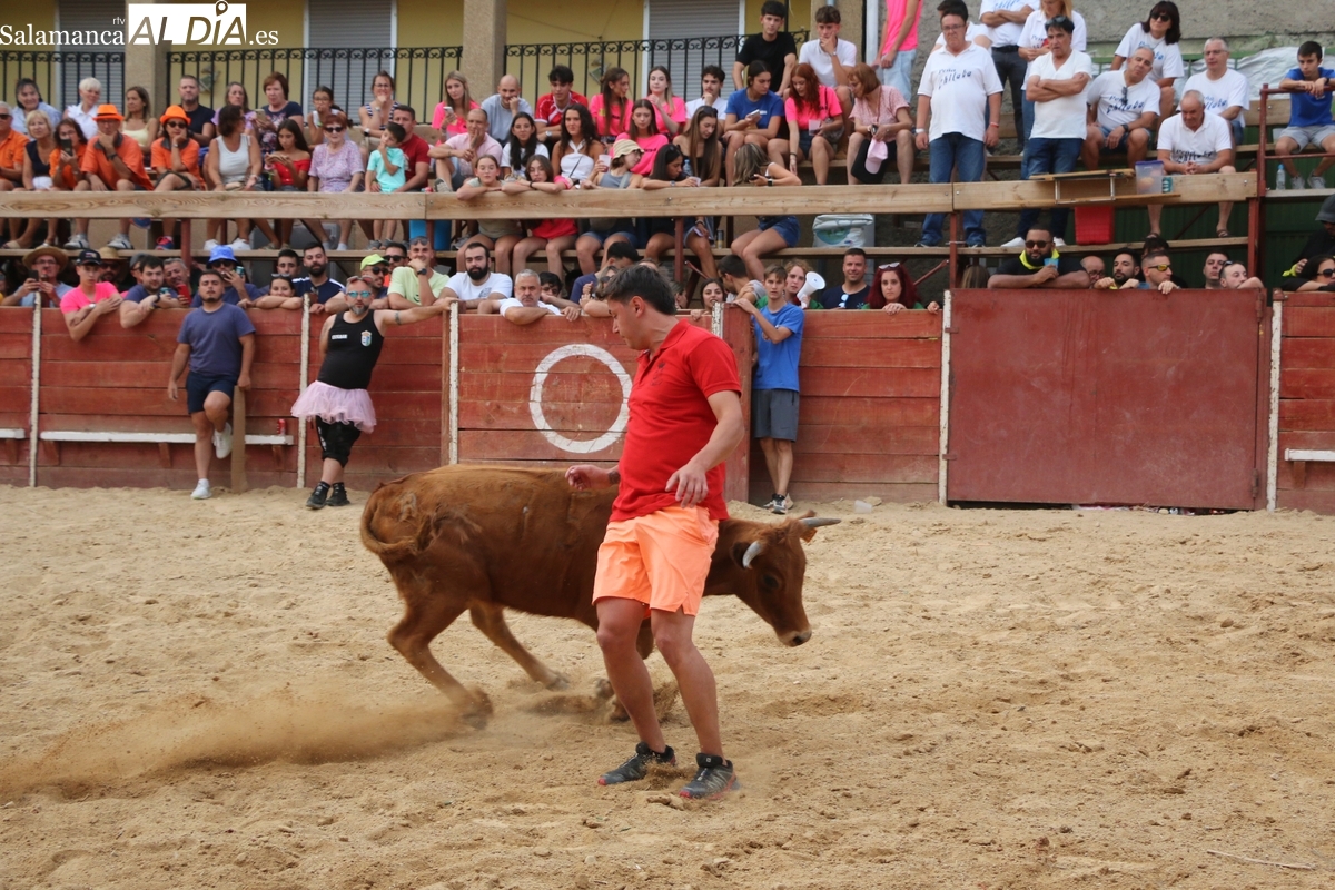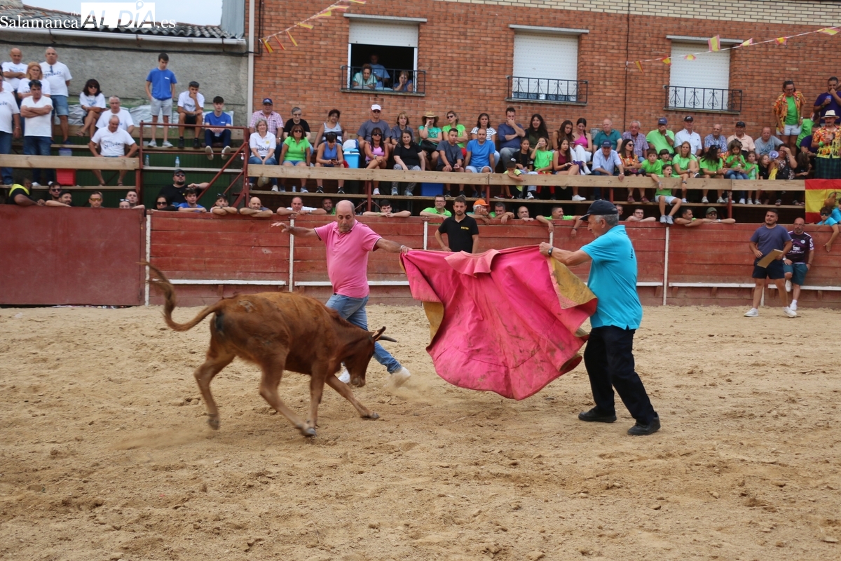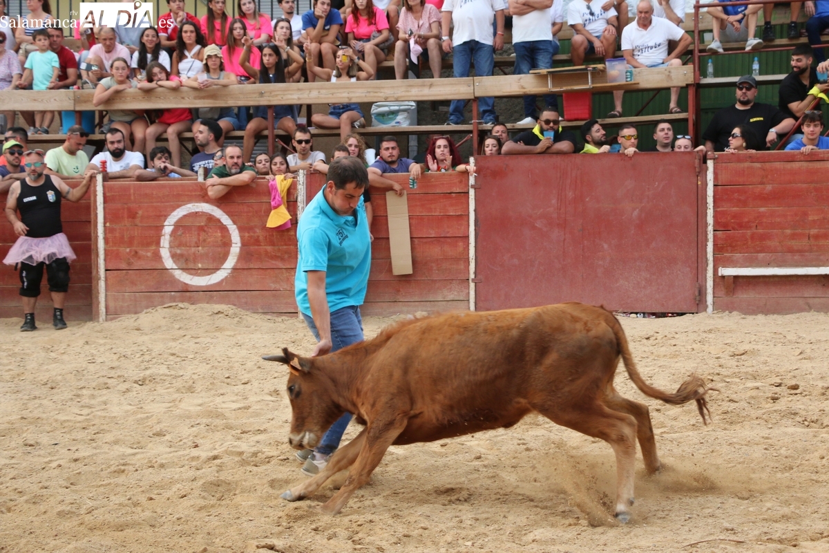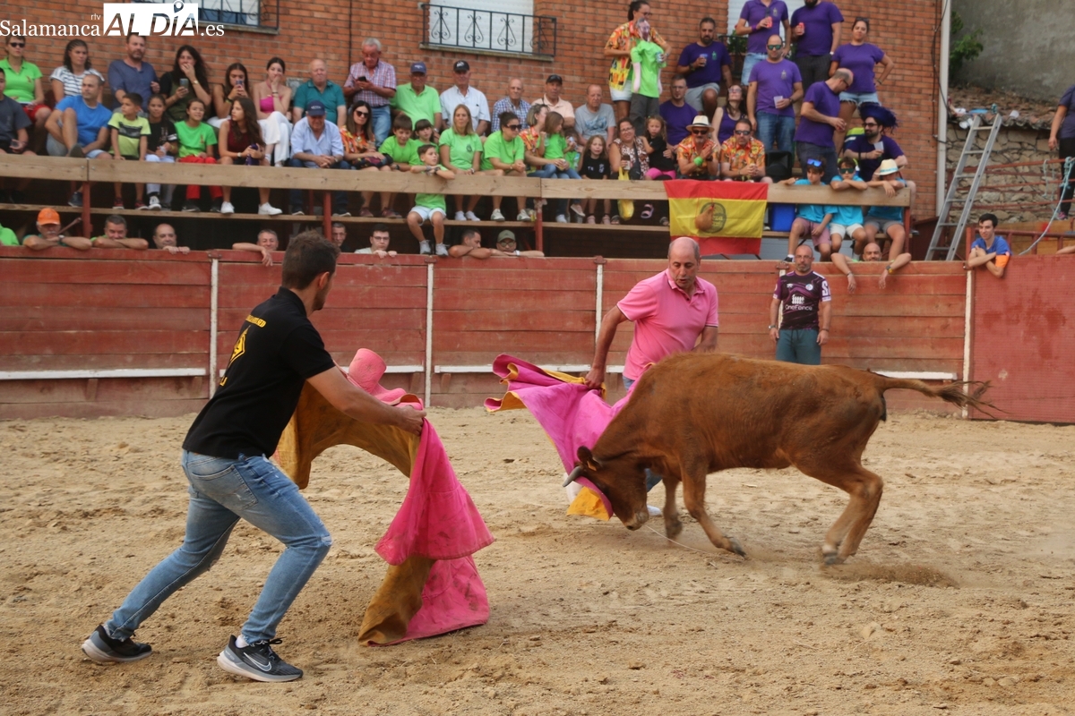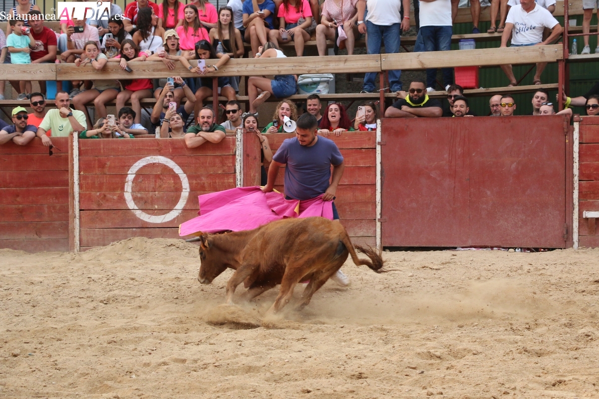 Finalizada la novillada, los aficionados pudieron disfrutar de una excelente vaca con el hierro de Tabernero de Pinto y con la que se atrevieron varias mozas al alimón, así como mozos que dieron todo un recital de saltos, quiebros y recortes.