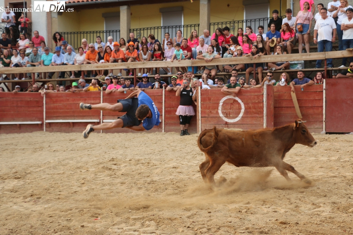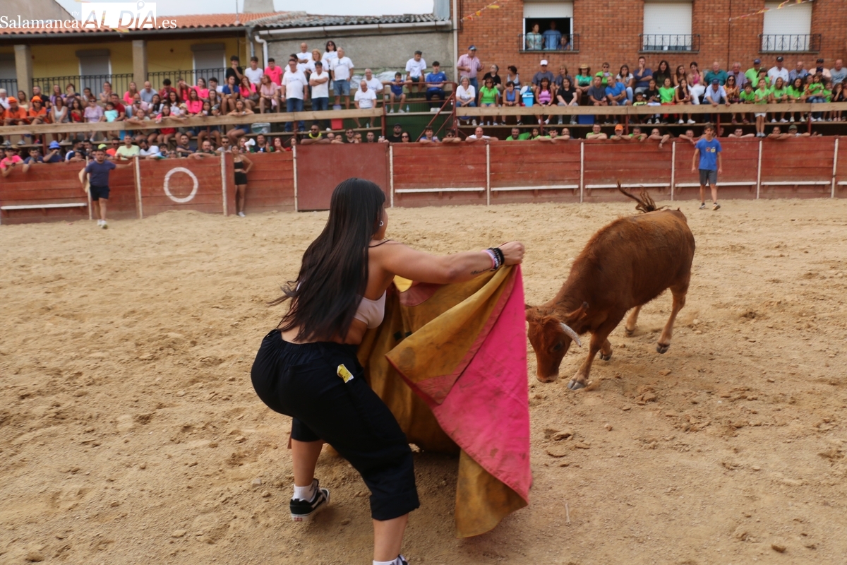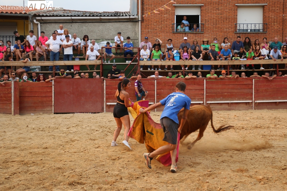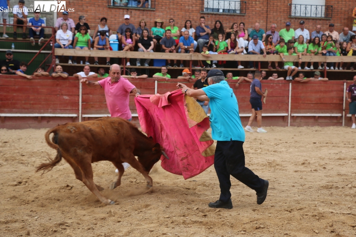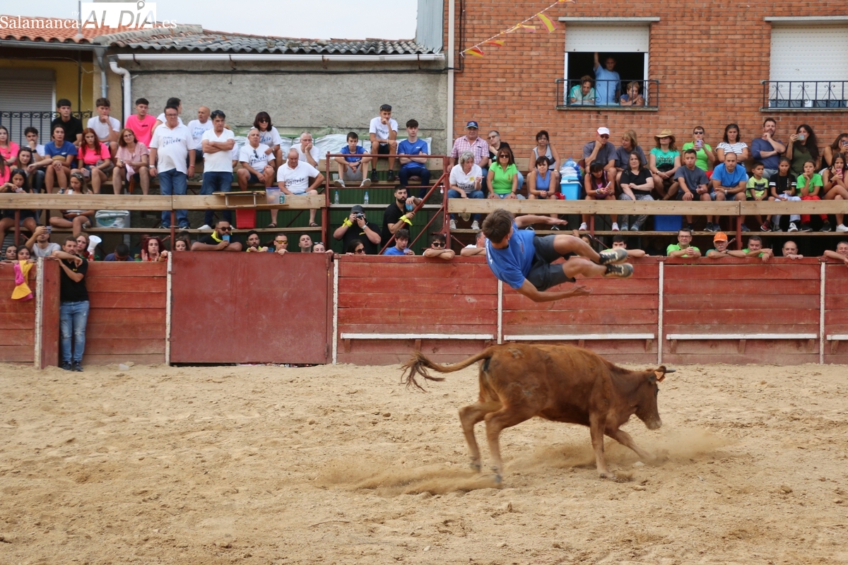 Finalizada la novillada, los aficionados pudieron disfrutar de una excelente vaca con el hierro de Tabernero de Pinto y con la que se atrevieron varias mozas al alimón, así como mozos que dieron todo un recital de saltos, quiebros y recortes.
