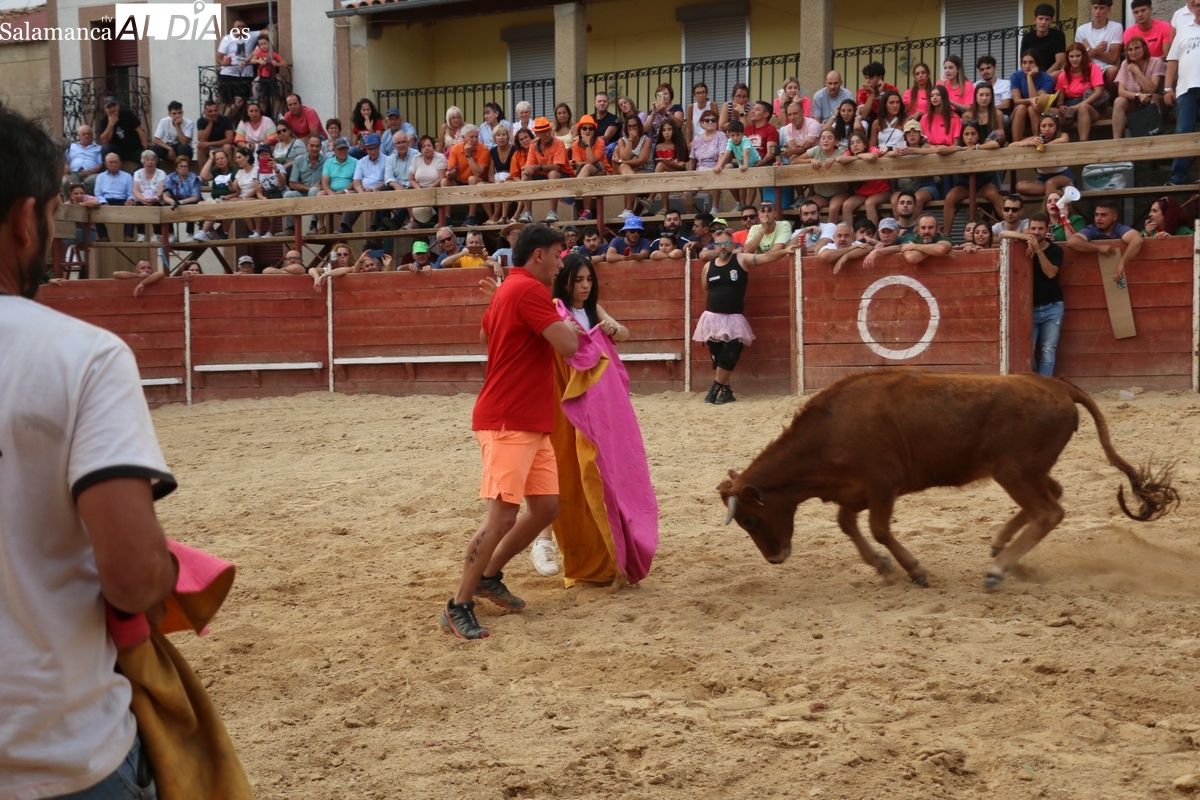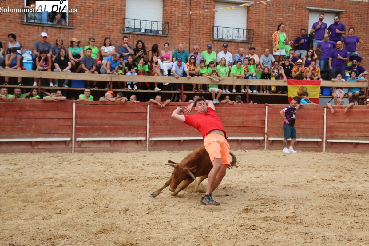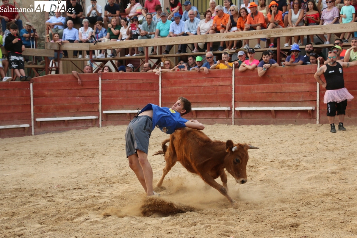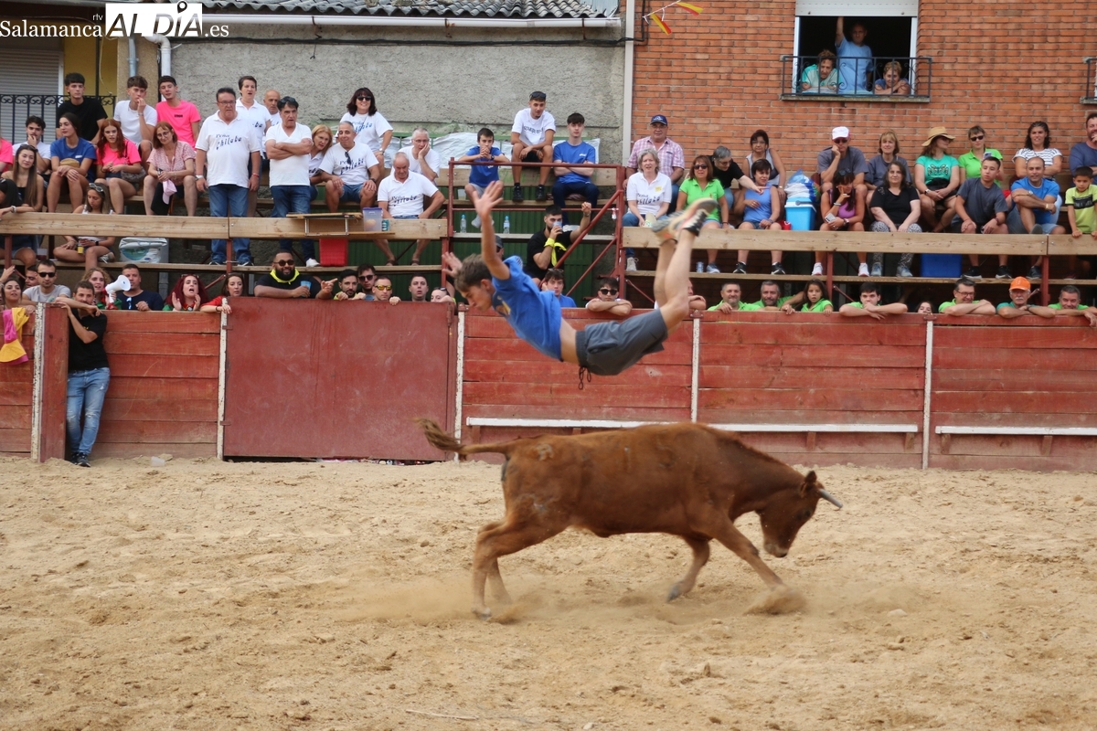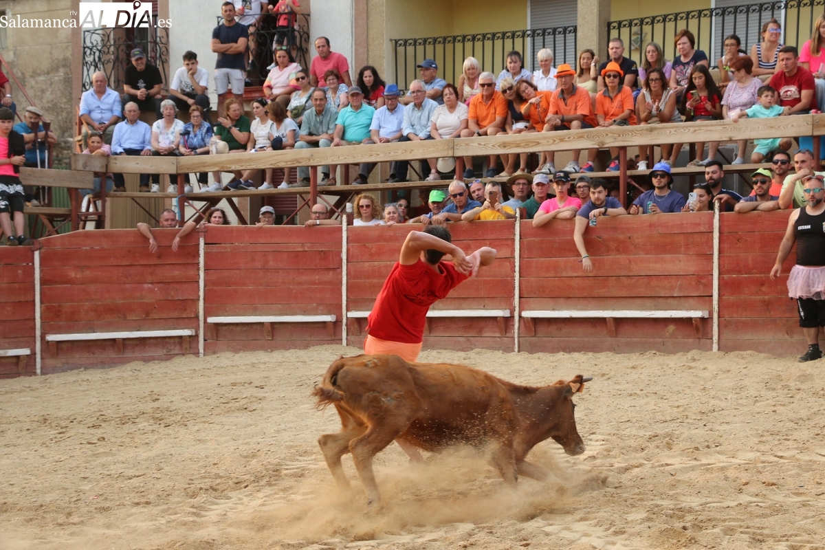Finalizada la novillada, los aficionados pudieron disfrutar de una excelente vaca con el hierro de Tabernero de Pinto y con la que se atrevieron varias mozas al alimón, así como mozos que dieron todo un recital de saltos, quiebros y recortes.
