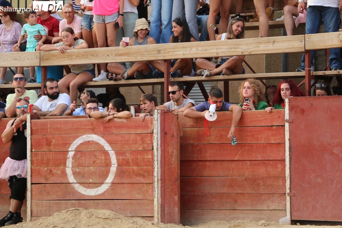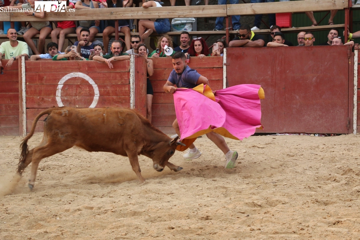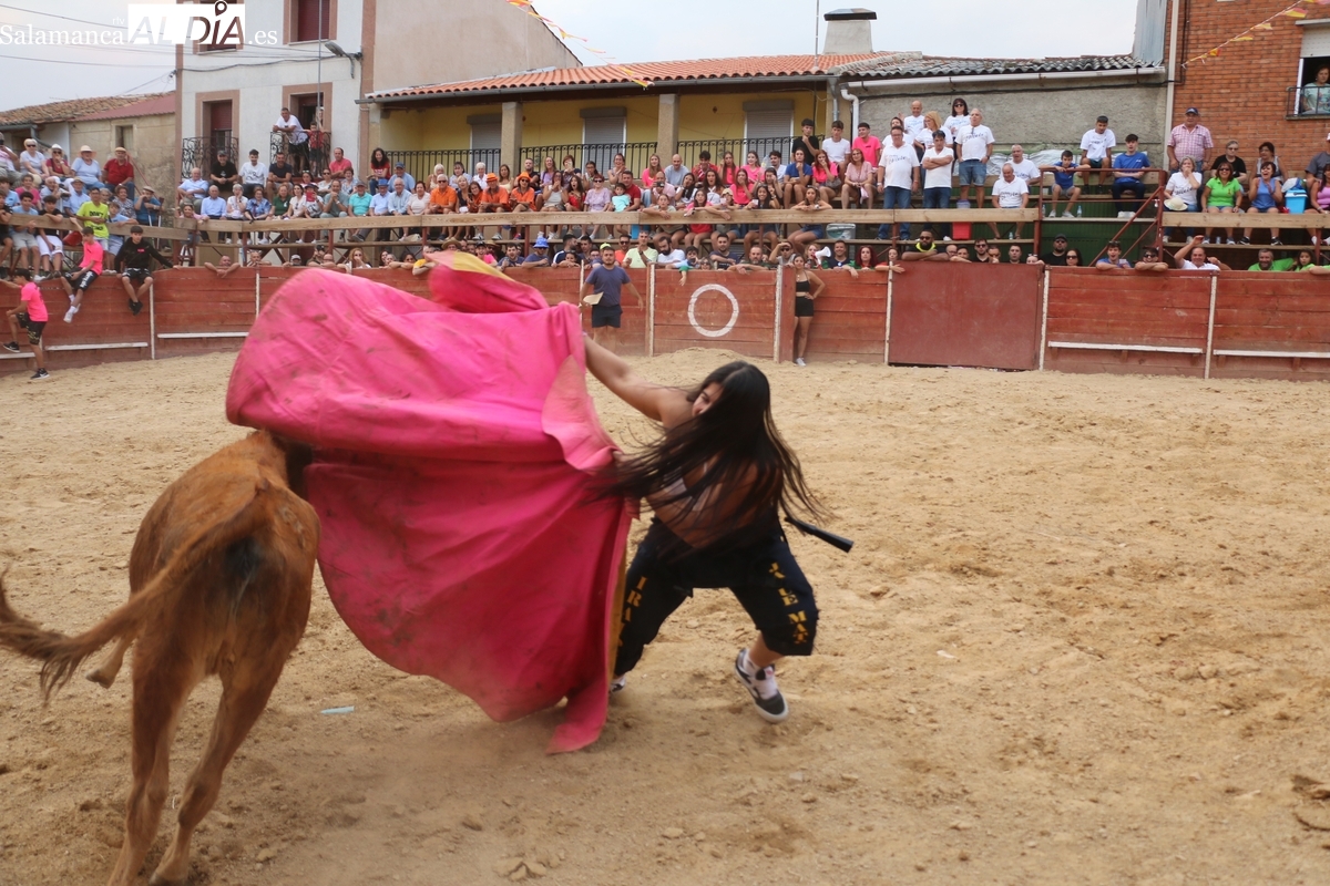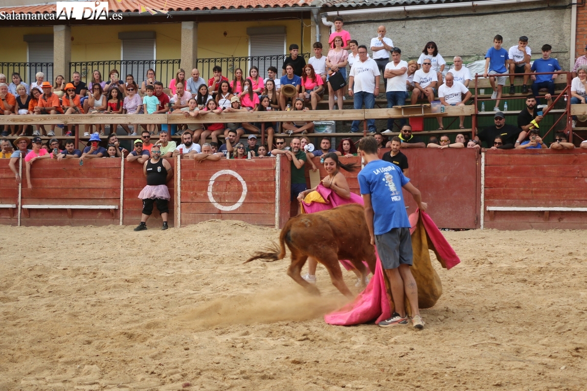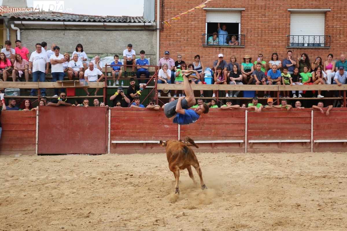 Finalizada la novillada, los aficionados pudieron disfrutar de una excelente vaca con el hierro de Tabernero de Pinto y con la que se atrevieron varias mozas al alimón, así como mozos que dieron todo un recital de saltos, quiebros y recortes.