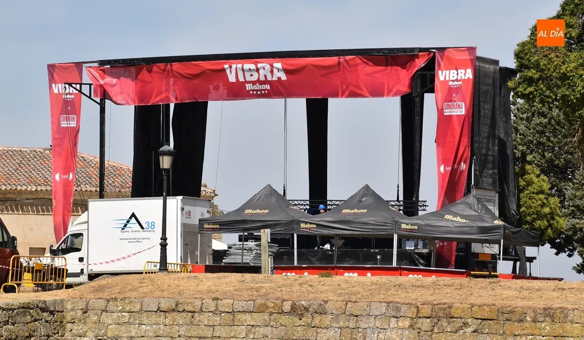 Como se puede ver en las imágenes, a última hora de la mañana del sábado ya estaba avanzada la preparación del escenario al que se subirán durante el evento el conocido DJ Nano y el salmantino DJ Dani Sierra. Con este Sonorama Day by Vibra Mahou se pretende llevar a otras localidades españolas el espíritu del festival que tiene lugar cada agosto en Aranda de Duero (Burgos).
