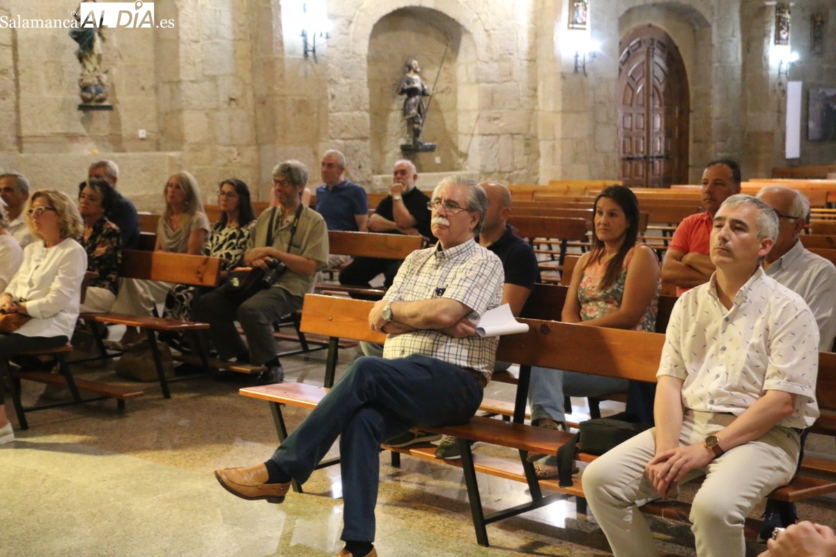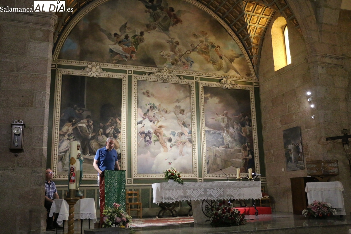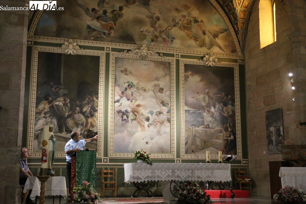 En nombre de la familia, Marta García ha cerrado el turno de intervenciones en la iglesia agradeciendo la iniciativa conjunta de la Diócesis y el Ayuntamiento. "Hemos trabajado como un equipo con un objetivo, que ha sido el dar a conocer a este gran pintor salmantino", ha manifestado, compartiendo su emoción al contemplar en persona el retablo de la iglesia, cuyos bocetos había admirado en casa.
