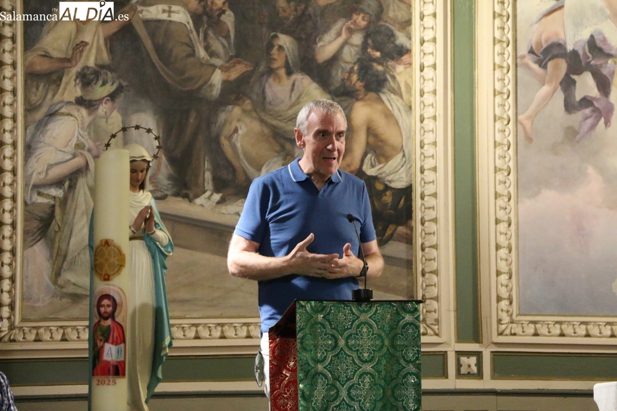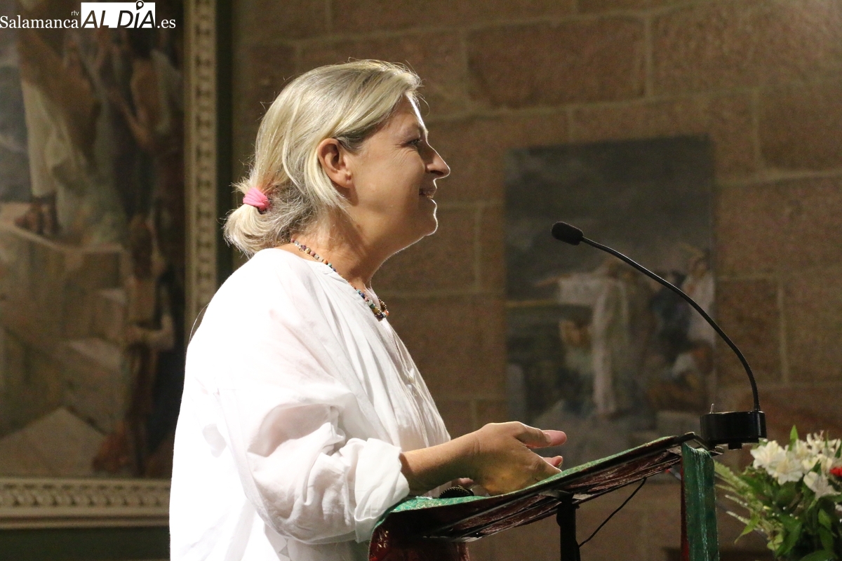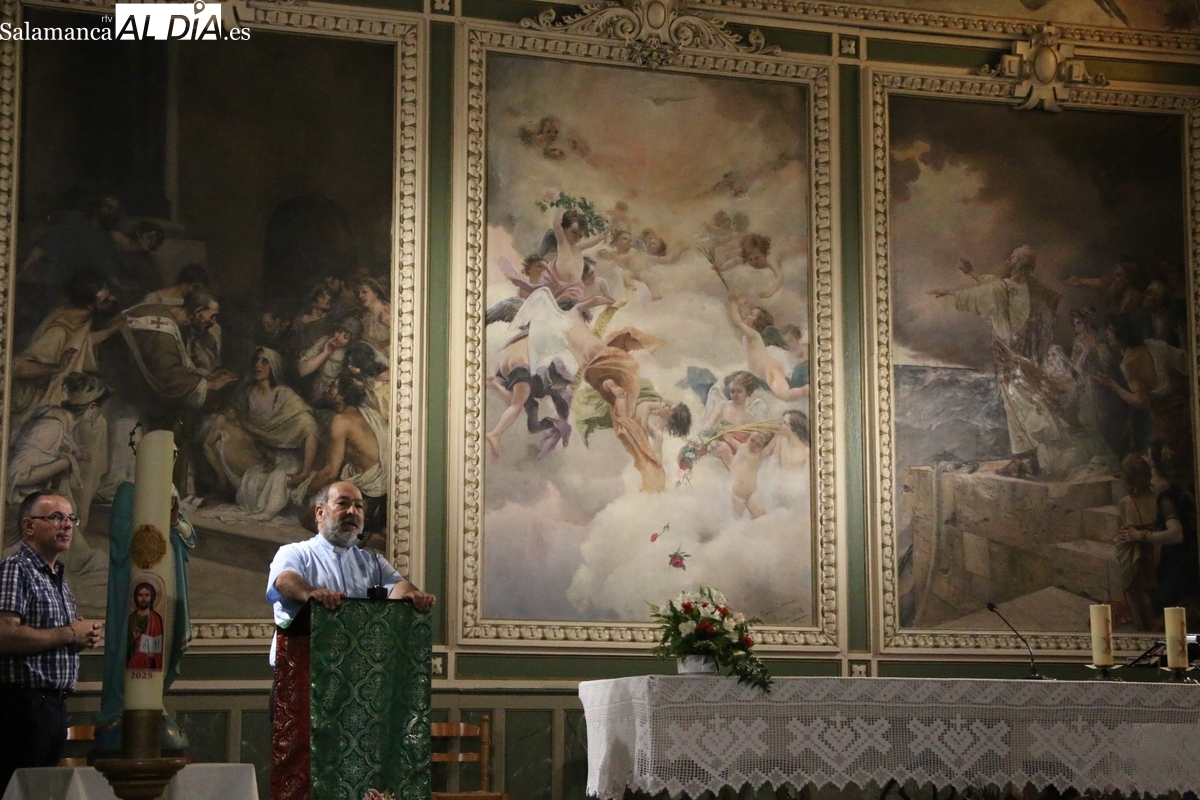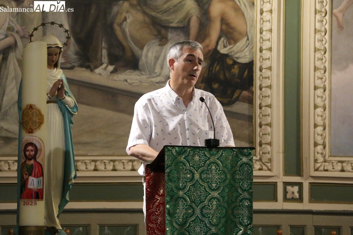 En nombre de la familia, Marta García ha cerrado el turno de intervenciones en la iglesia agradeciendo la iniciativa conjunta de la Diócesis y el Ayuntamiento. "Hemos trabajado como un equipo con un objetivo, que ha sido el dar a conocer a este gran pintor salmantino", ha manifestado, compartiendo su emoción al contemplar en persona el retablo de la iglesia, cuyos bocetos había admirado en casa.