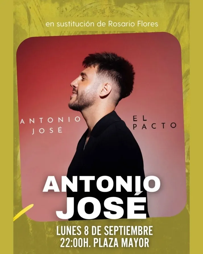 Cambio de última hora en uno de los conciertos más esperados de las Ferias y Fiestas de Salamanca 2025. El cantante Antonio José será finalmente el encargado de subirse al escenario de la Plaza Mayor este lunes, 8 de septiembre, en sustitución de la artista Rosario Flores, cuya actuación ha sido cancelada por motivos de salud.