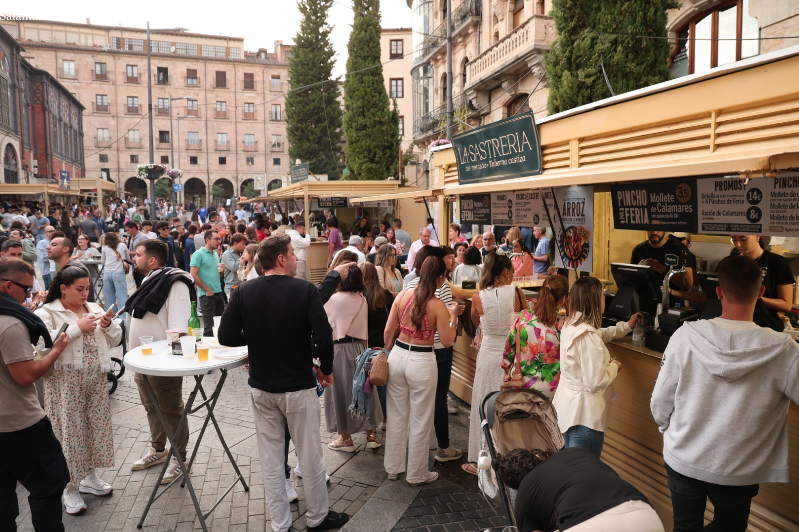 La plaza del Mercado se ha consolidado como uno de los puntos neurálgicos de la Feria de Día de Salamanca. Durante el primer fin de semana de las Ferias y Fiestas, este espacio ha sido un auténtico hervidero de gente, demostrando su enorme poder de atracción. Su estratégica ubicación, a escasos metros de la Plaza Mayor, la convierte en un punto de paso y encuentro obligado para salmantinos y turistas que buscan sumergirse en el ambiente festivo de la ciudad.