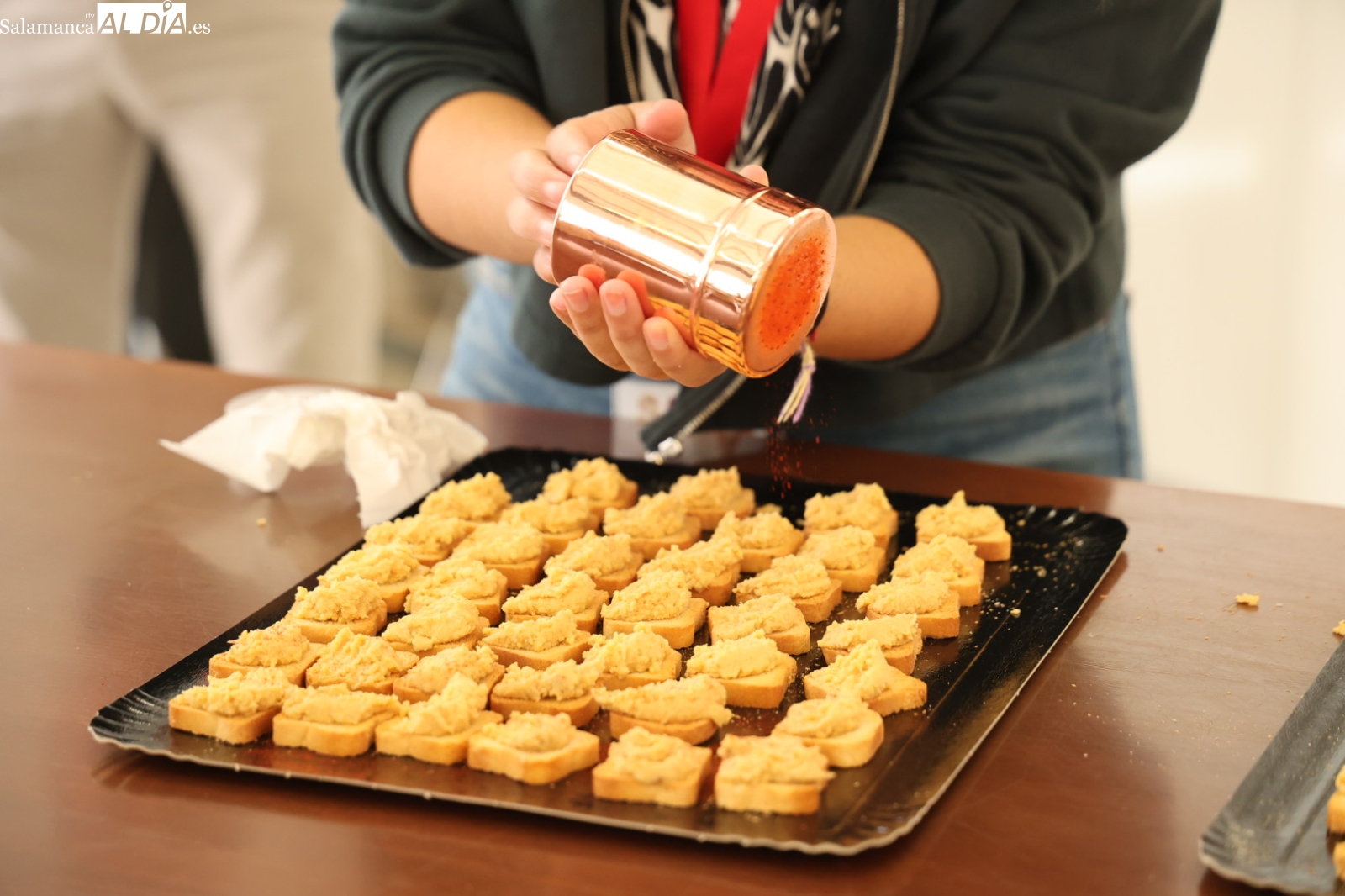 La parte práctica de la jornada ha corrido a cargo de la Escuela Municipal de Hostelería de Santa Marta de Tormes, cuyos alumnos y profesores han realizado una demostración de cocina en directo (showcooking). En ella, han elaborado platos que han servido para resaltar las cualidades de los productos previamente catados.