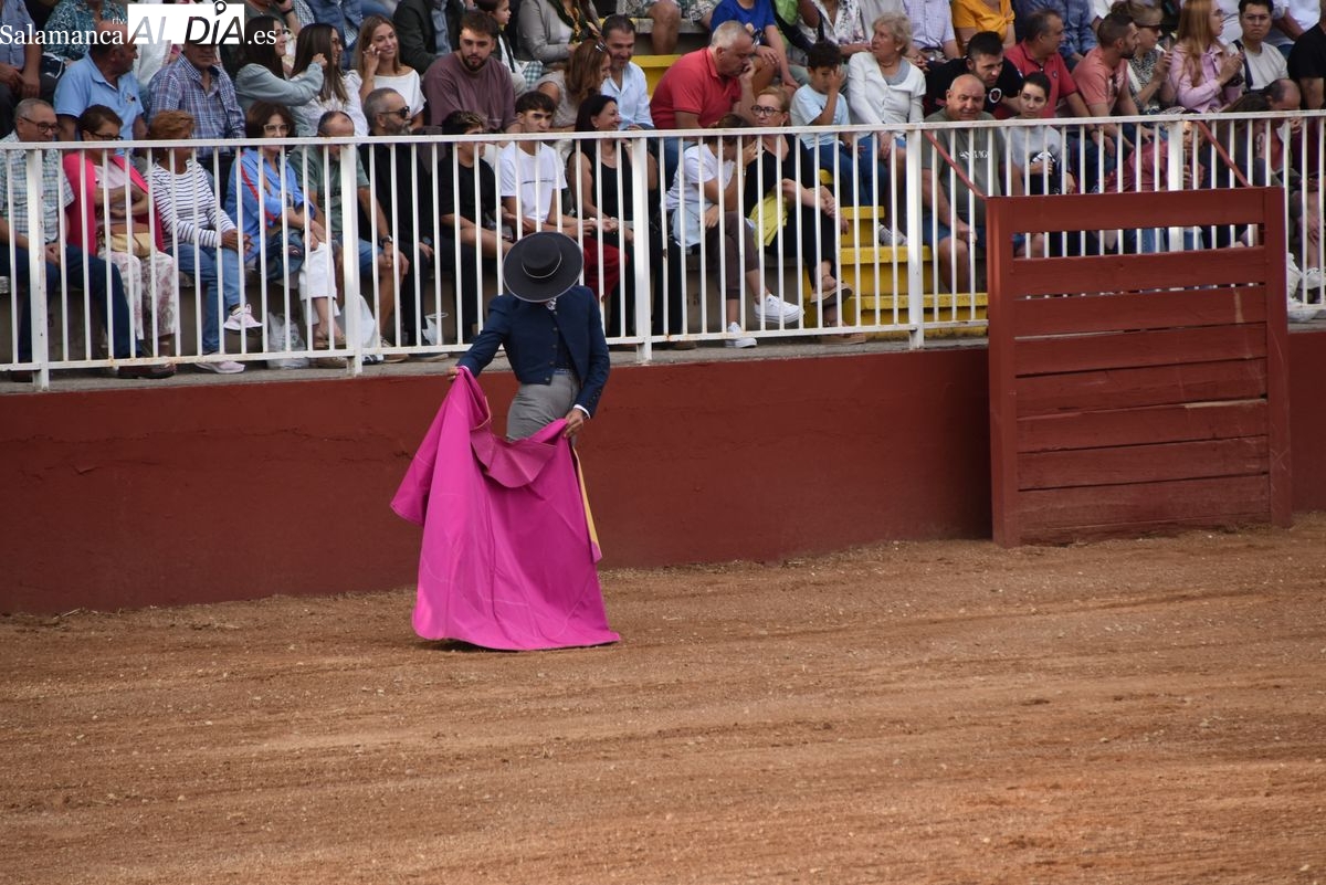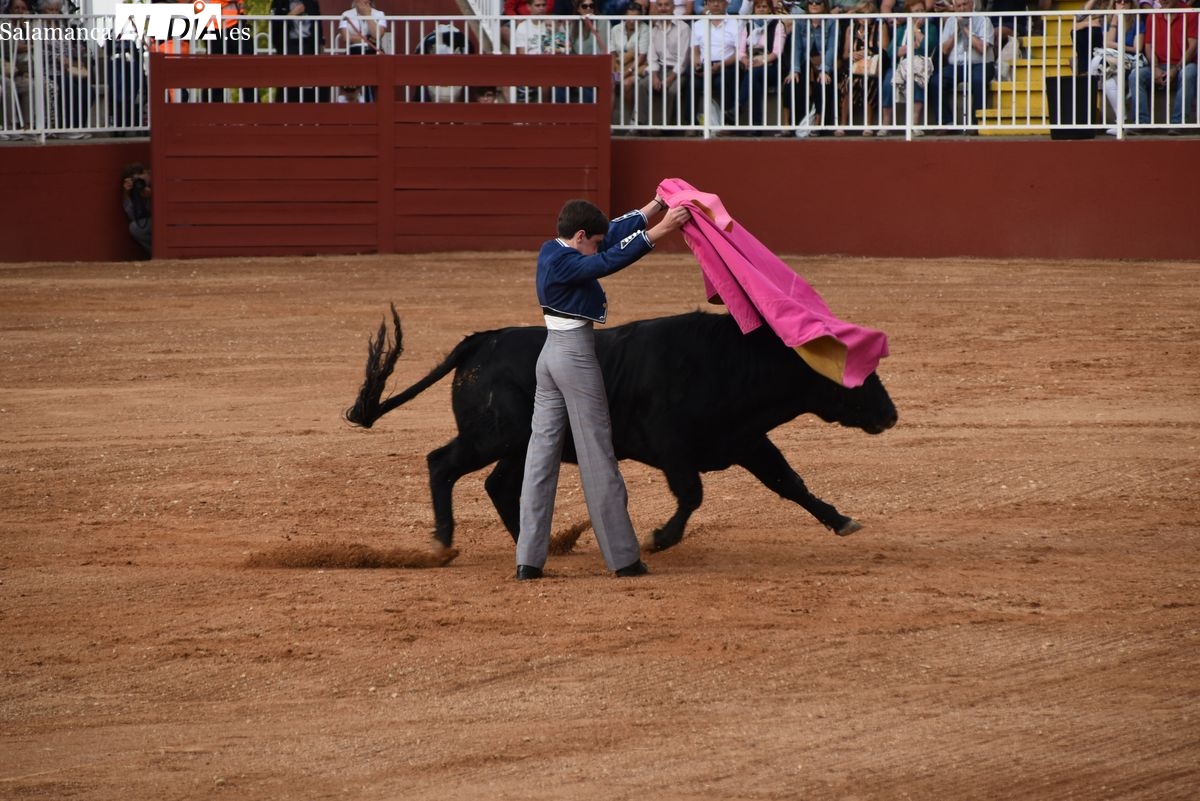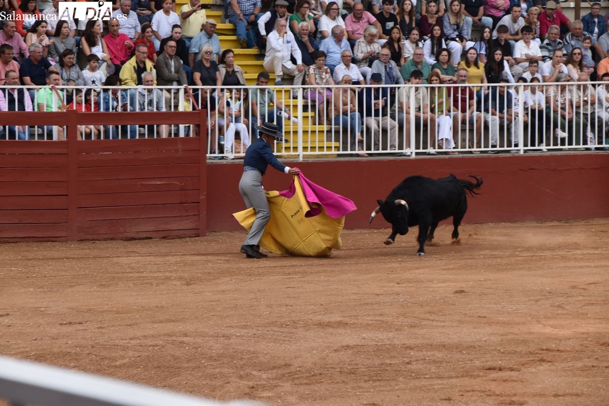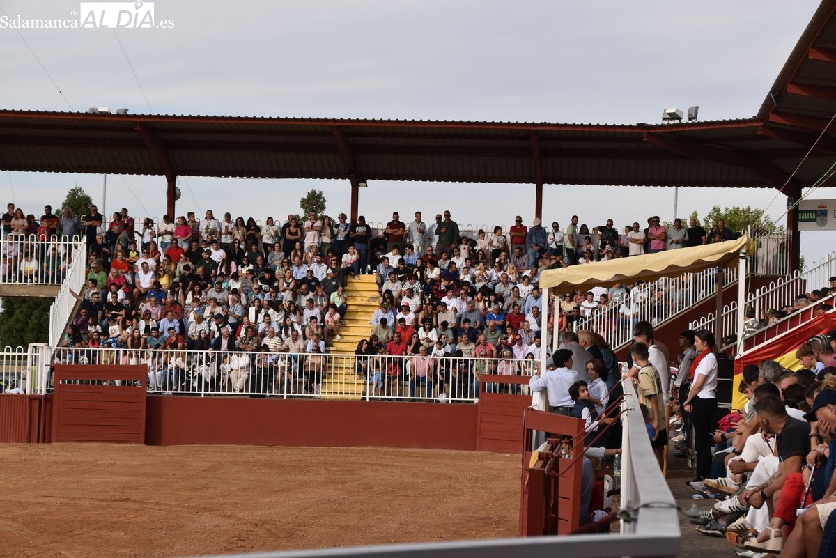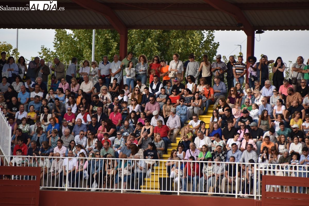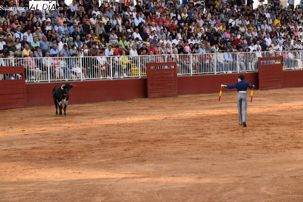 El anillo de exhibiciones del recinto ferial de Salamaq ha vuelto a ser un hervidero de afición durante la tarde de este domingo. La celebración de la cuarta clase práctica de la Escuela de Tauromaquia de la Diputación de Salamanca se saldó con un éxito de público, registrando un lleno hasta la bandera. Destacó especialmente el gran ambiente familiar, con una notable presencia de mucha gente joven y niños, que demuestra el interés que la cantera taurina despierta en las nuevas generaciones.