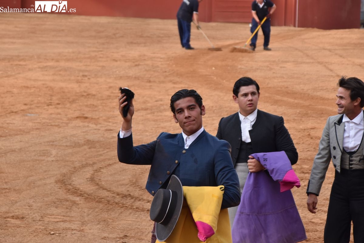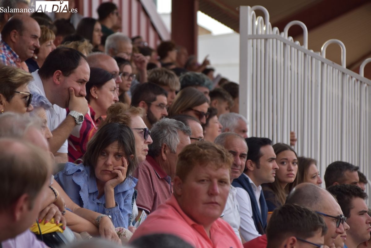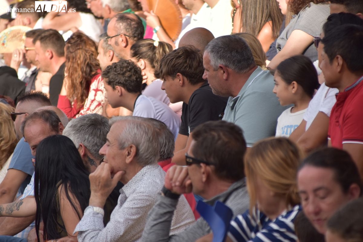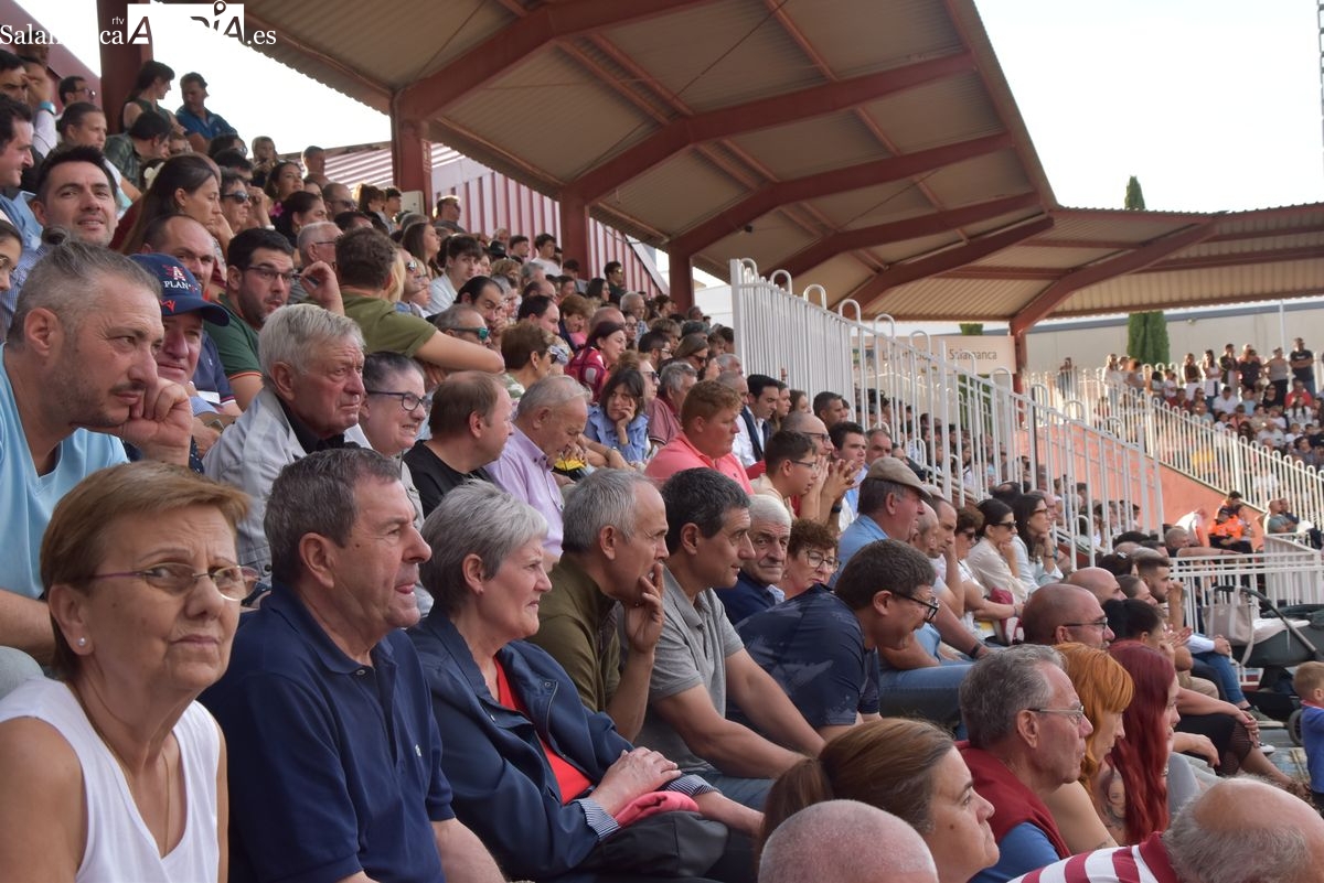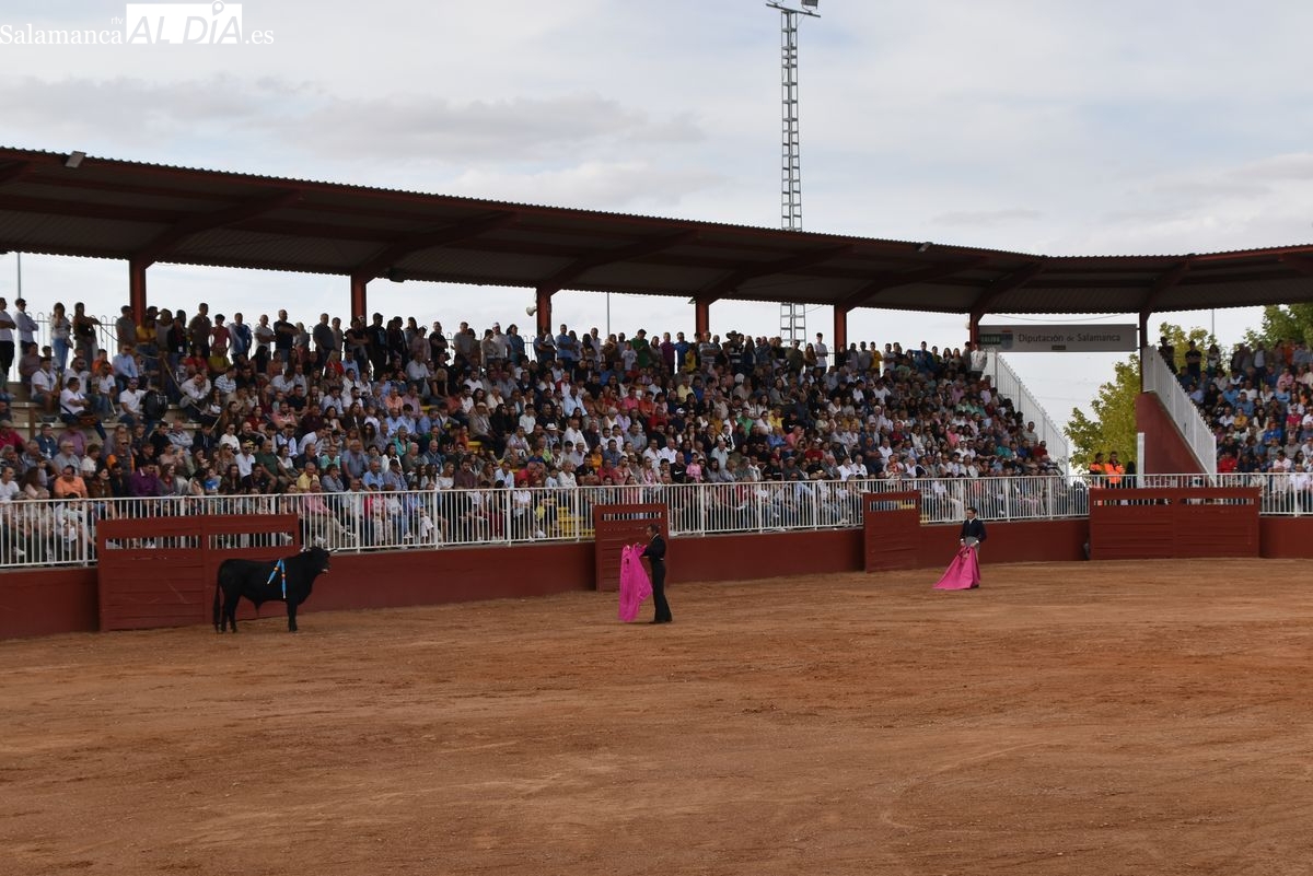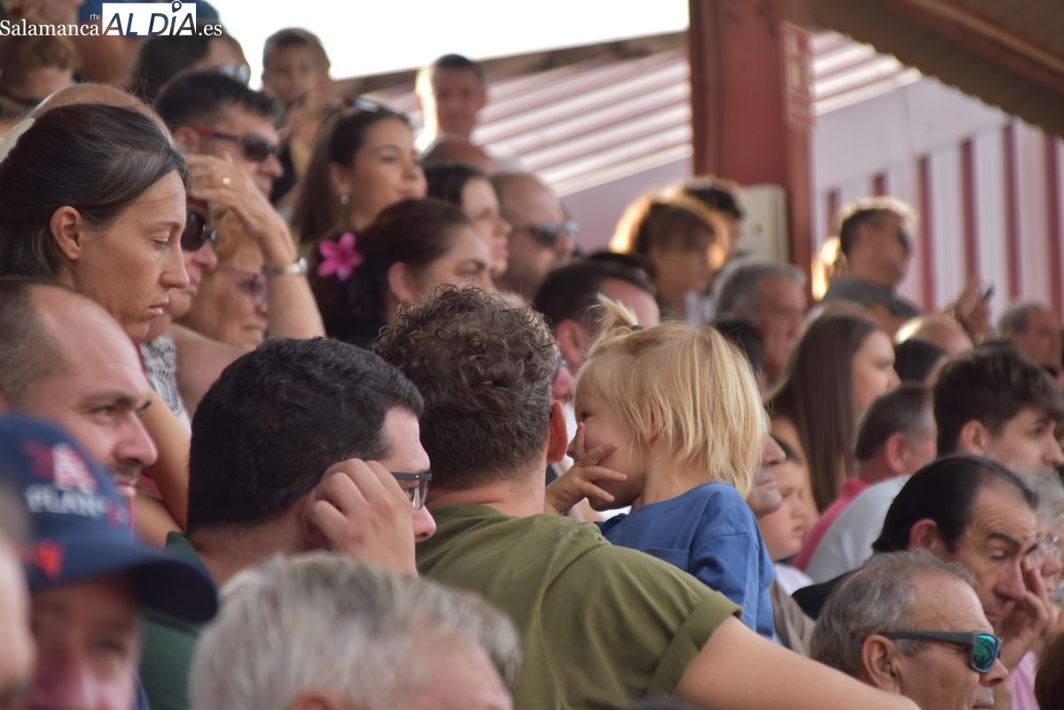 El anillo de exhibiciones del recinto ferial de Salamaq ha vuelto a ser un hervidero de afición durante la tarde de este domingo. La celebración de la cuarta clase práctica de la Escuela de Tauromaquia de la Diputación de Salamanca se saldó con un éxito de público, registrando un lleno hasta la bandera. Destacó especialmente el gran ambiente familiar, con una notable presencia de mucha gente joven y niños, que demuestra el interés que la cantera taurina despierta en las nuevas generaciones.