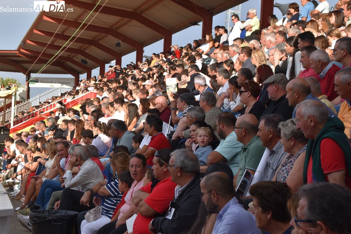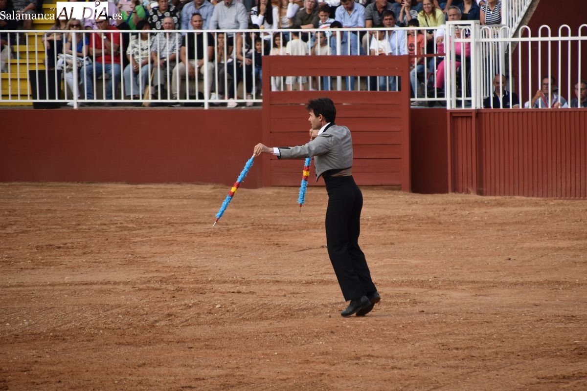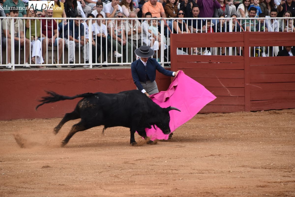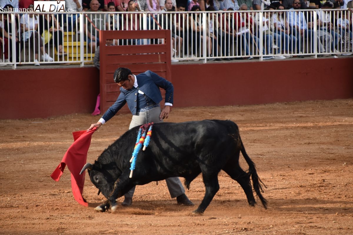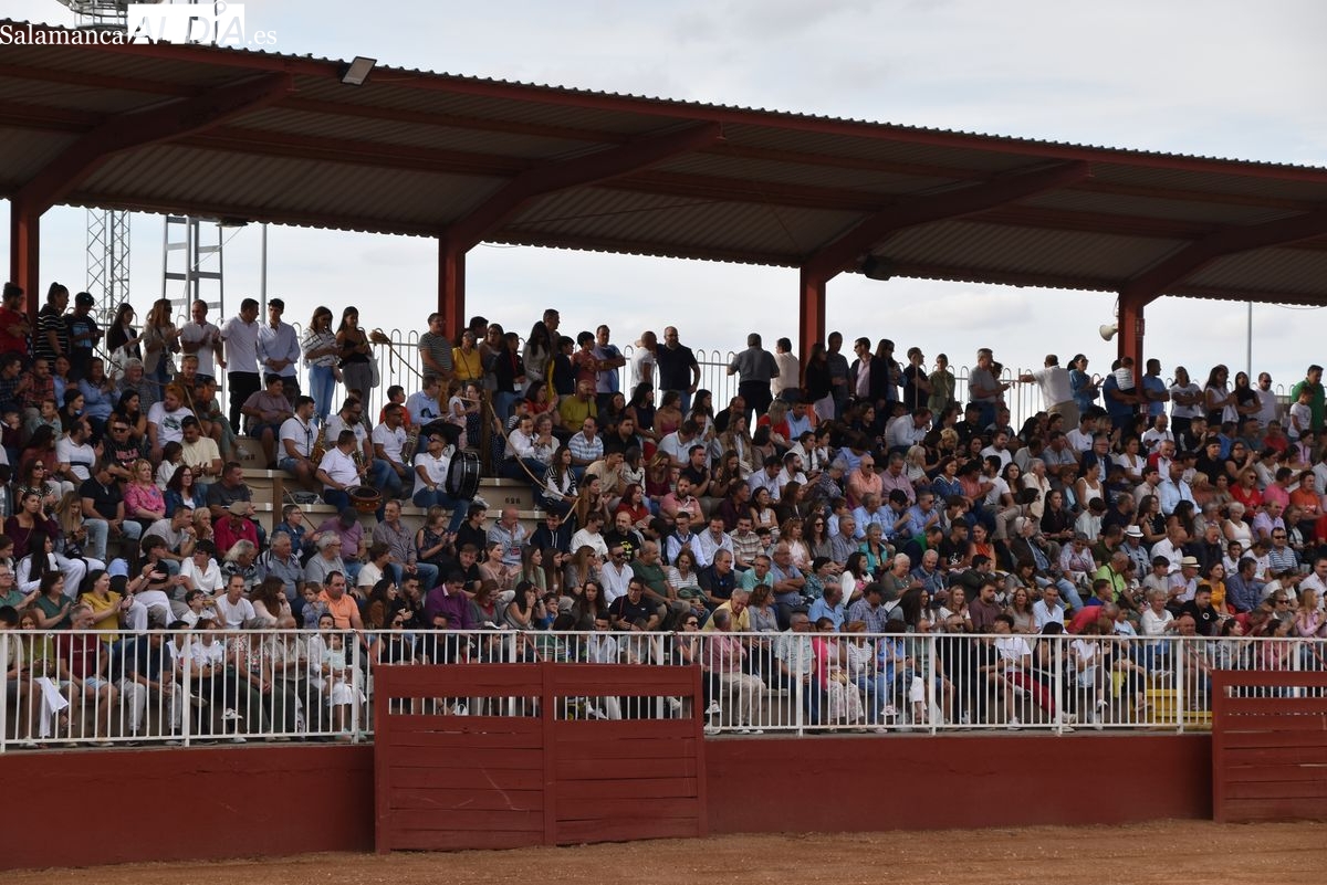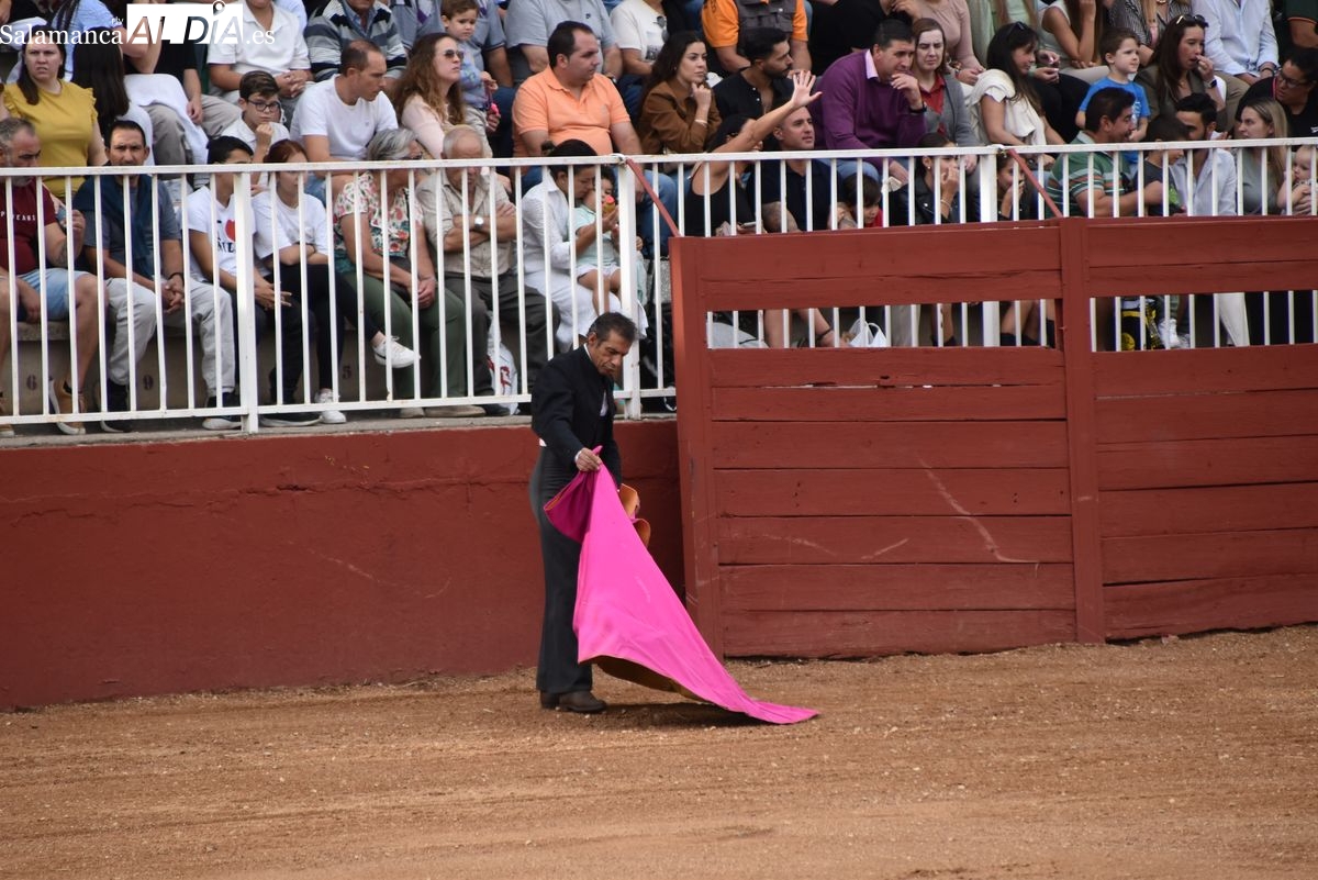 El anillo de exhibiciones del recinto ferial de Salamaq ha vuelto a ser un hervidero de afición durante la tarde de este domingo. La celebración de la cuarta clase práctica de la Escuela de Tauromaquia de la Diputación de Salamanca se saldó con un éxito de público, registrando un lleno hasta la bandera. Destacó especialmente el gran ambiente familiar, con una notable presencia de mucha gente joven y niños, que demuestra el interés que la cantera taurina despierta en las nuevas generaciones.