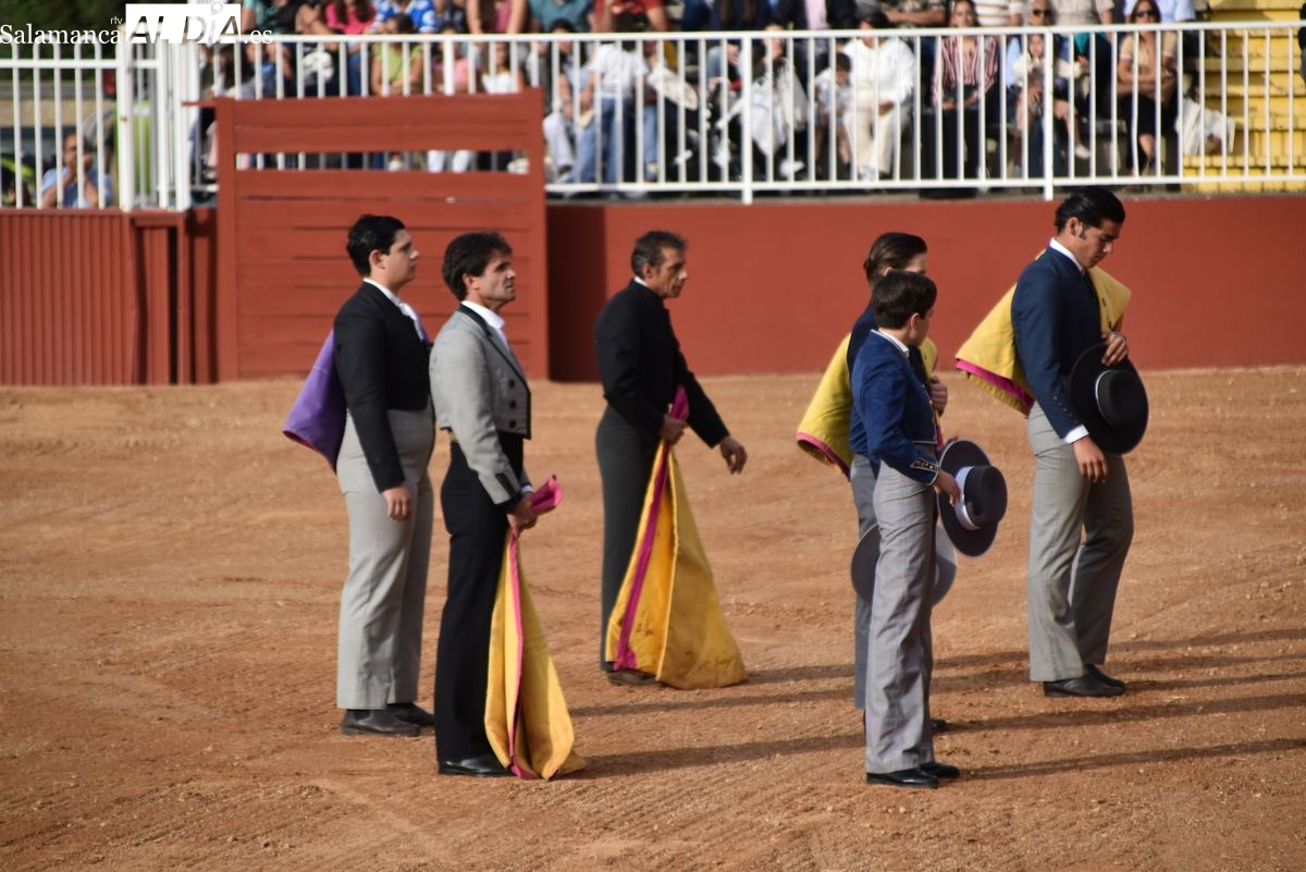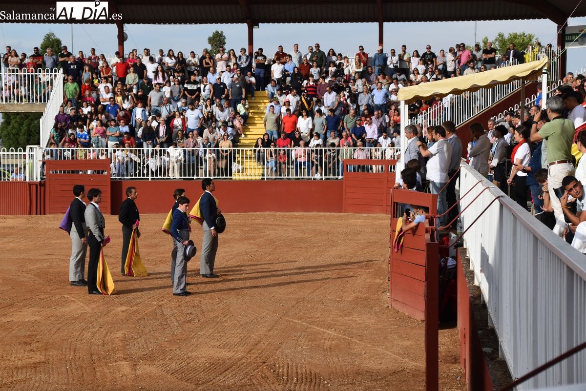 En el ruedo, los protagonistas fueron tres alumnos de la escuela salmantina que demostraron su aprendizaje y valor. Víctor Pérez, José Tomás Ortiz y Miguel García se enfrentaron a tres novillos de la prestigiosa ganadería de Hermanos Mateos. La entrega de los jóvenes aspirantes conectó con los tendidos, que supieron valorar el esfuerzo y la dedicación de los futuros toreros en una jornada que reafirma la buena salud de la tauromaquia en la provincia.