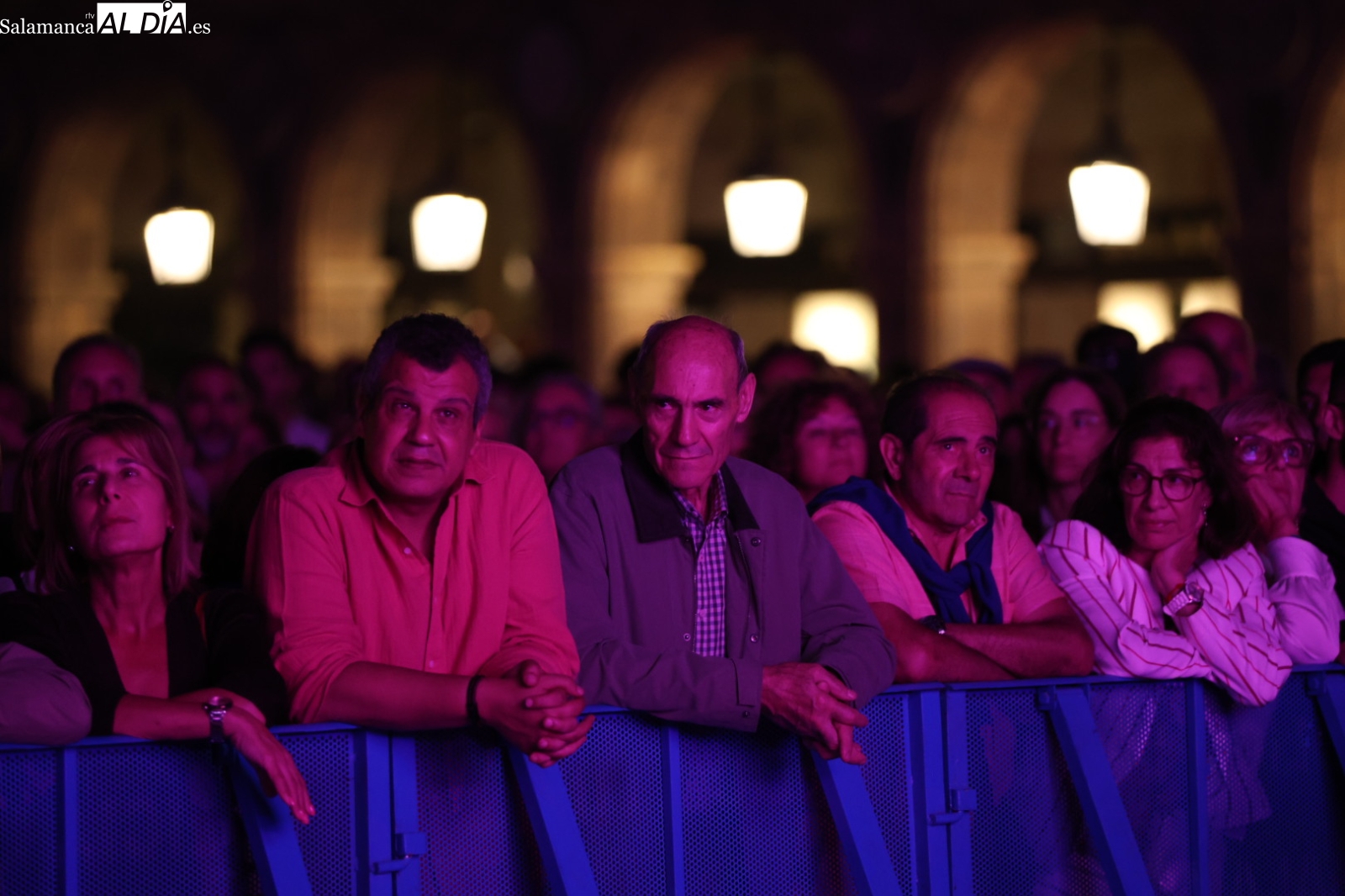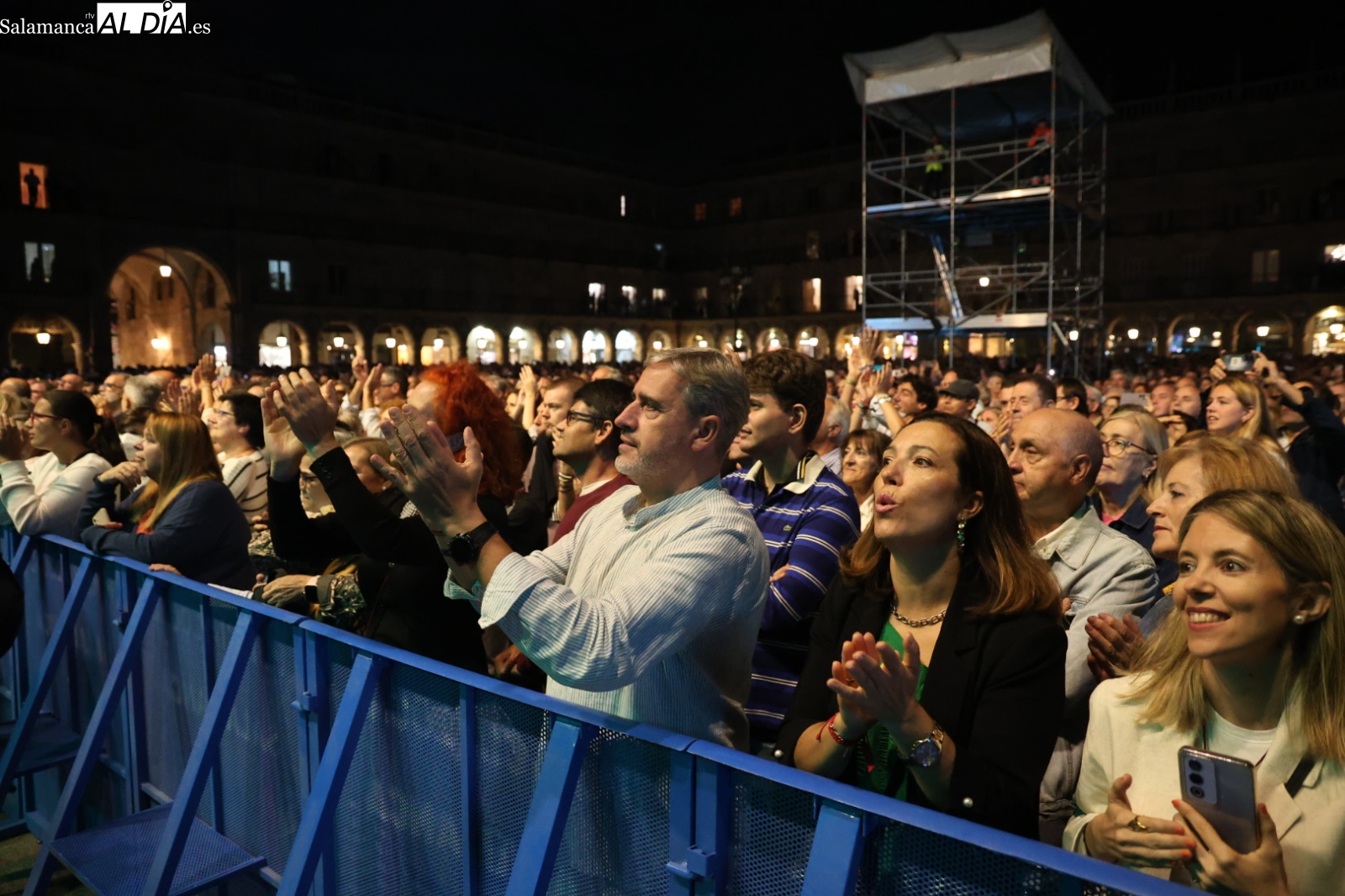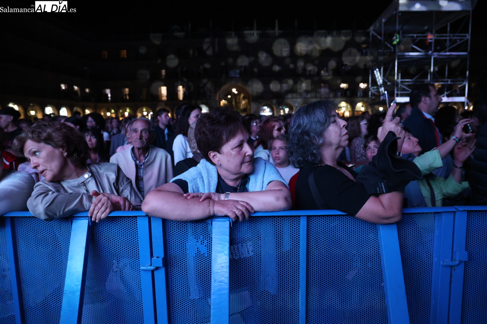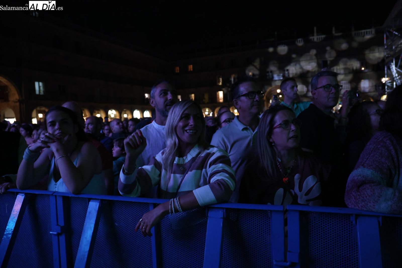 Desde mucho antes del inicio del concierto, la Plaza Mayor ya presentaba un aspecto imponente. Familias, grupos de amigos y visitantes se congregaron para disfrutar de una velada que cumplió con todas las expectativas. La conexión entre los artistas y el público fue total, creando una atmósfera de complicidad y celebración que se prolongó durante toda la actuación.