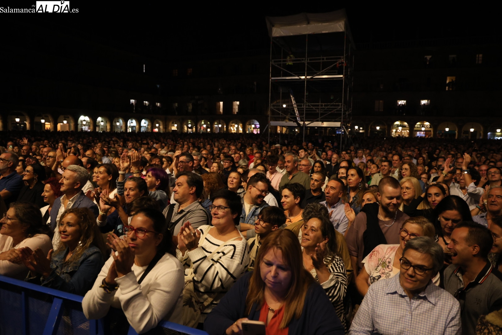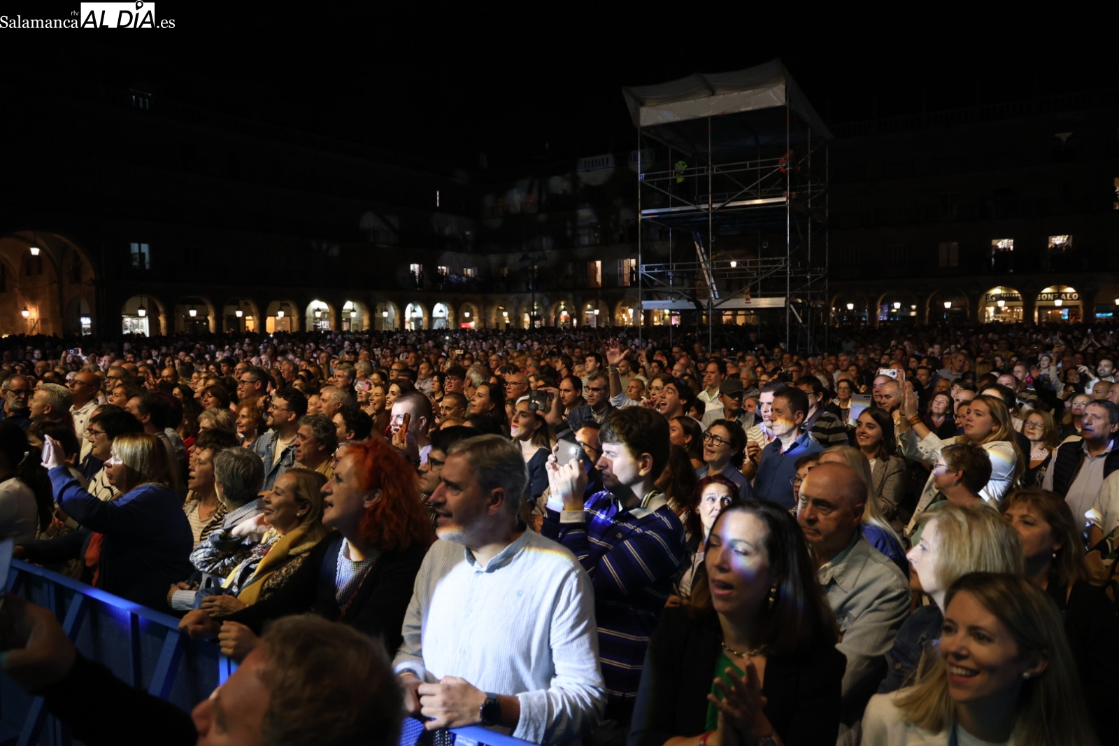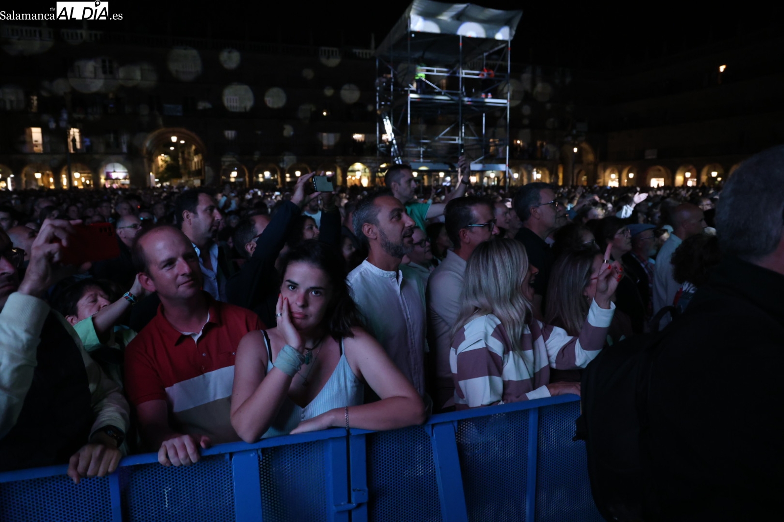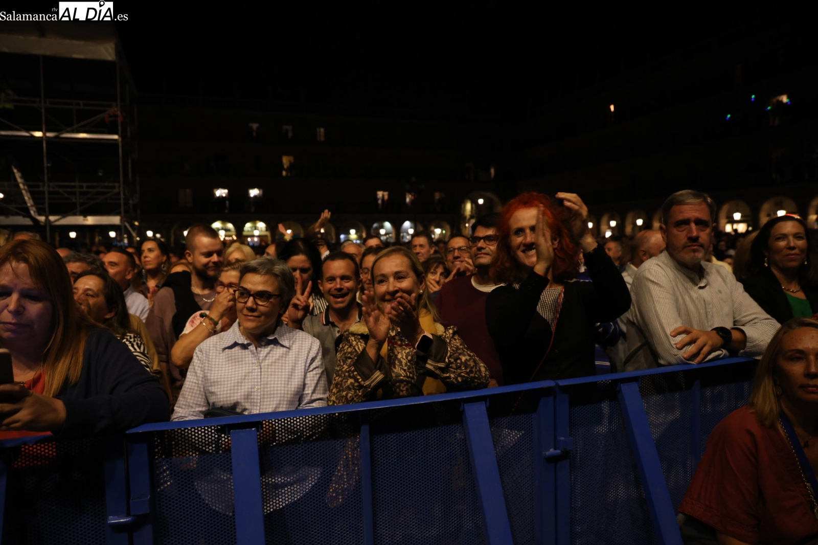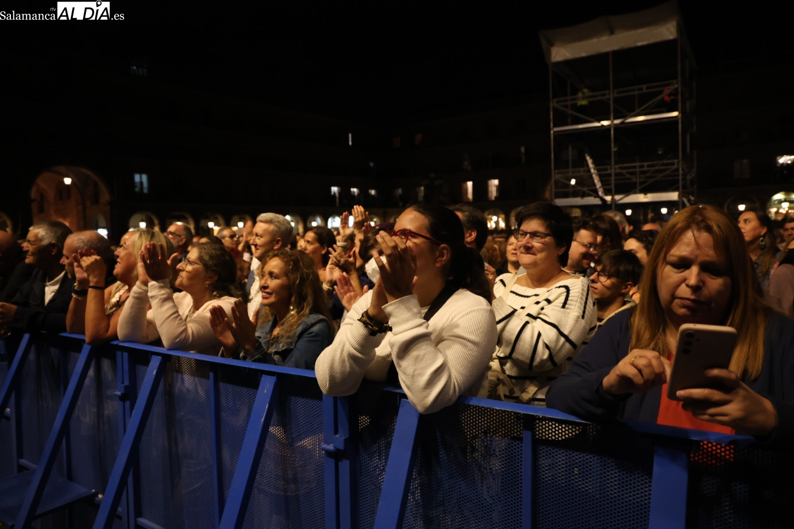 Desde mucho antes del inicio del concierto, la Plaza Mayor ya presentaba un aspecto imponente. Familias, grupos de amigos y visitantes se congregaron para disfrutar de una velada que cumplió con todas las expectativas. La conexión entre los artistas y el público fue total, creando una atmósfera de complicidad y celebración que se prolongó durante toda la actuación.