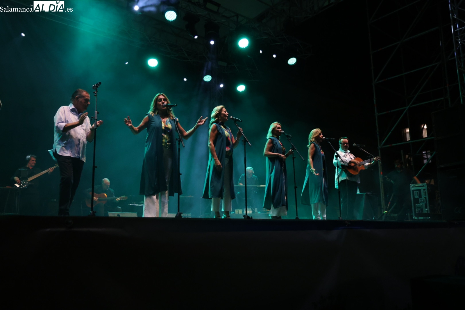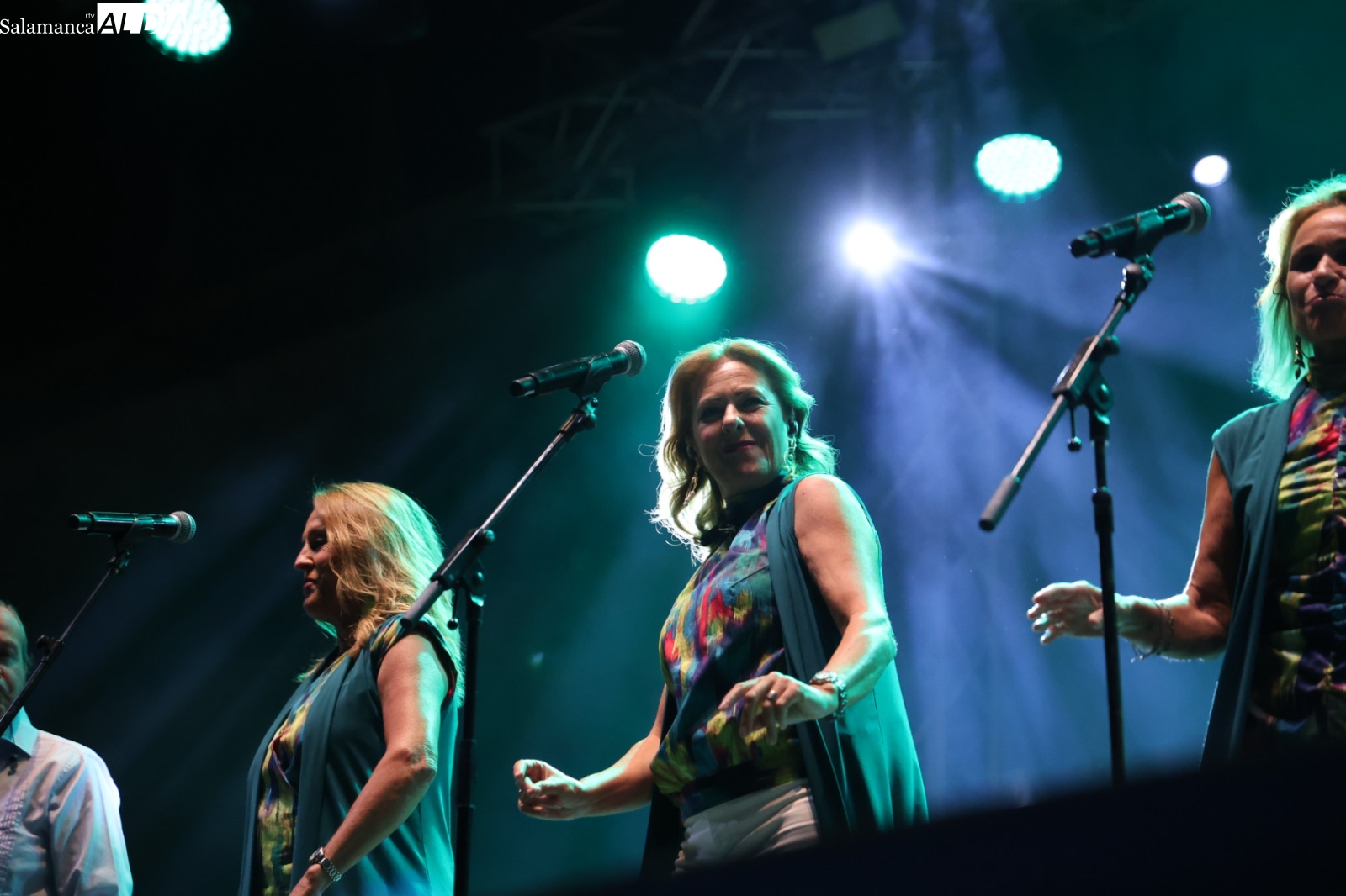 El grupo sevillano repasó sus grandes éxitos ante miles de salmantinos y visitantes que, tras los fuegos artificiales, no quisieron perderse el inicio de los conciertos en el ágora charra.