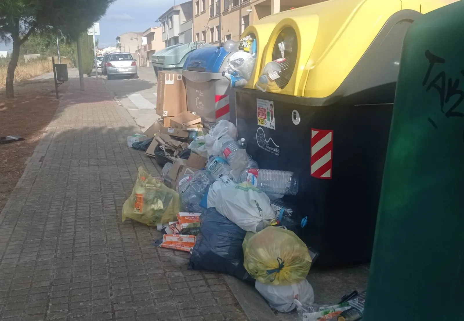 Los contenedores de la calle Góngora estaban en la tarde dominical llenos a rebosar