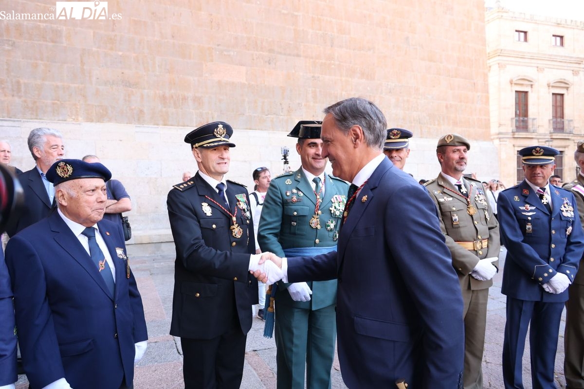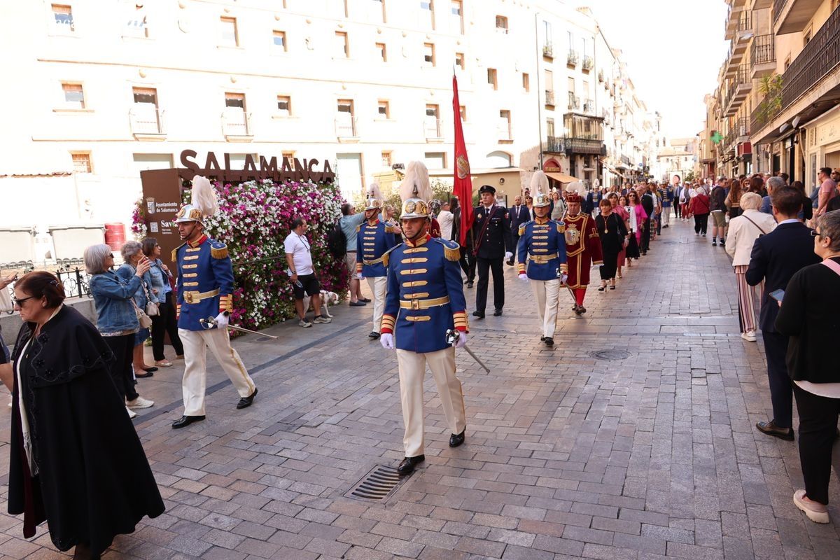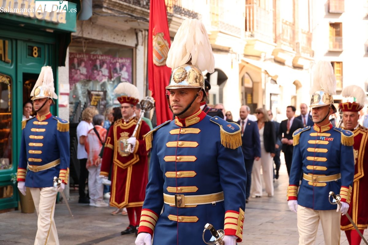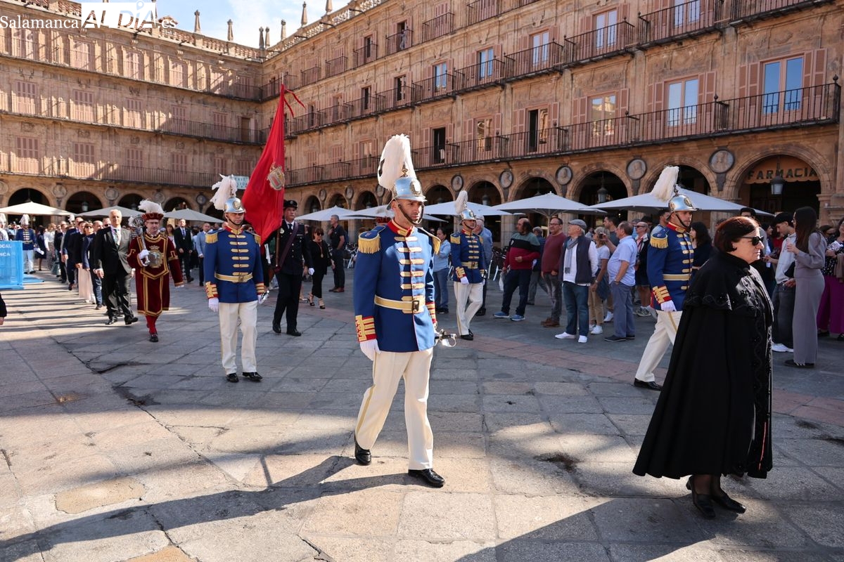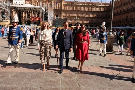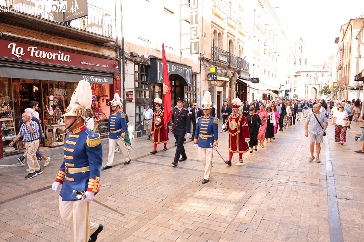 El desfile ha recorrido las calles del centro de la ciudad, ofreciendo una imagen de solemnidad y tradición. Los ediles del consistorio salmantino lucieron para la ocasión elegantes trajes, portando visiblemente las medallas que les acreditan como concejales de la ciudad.
