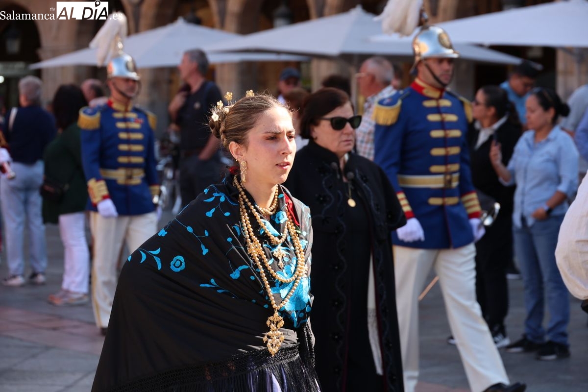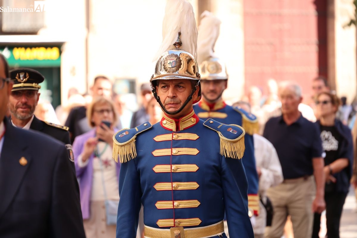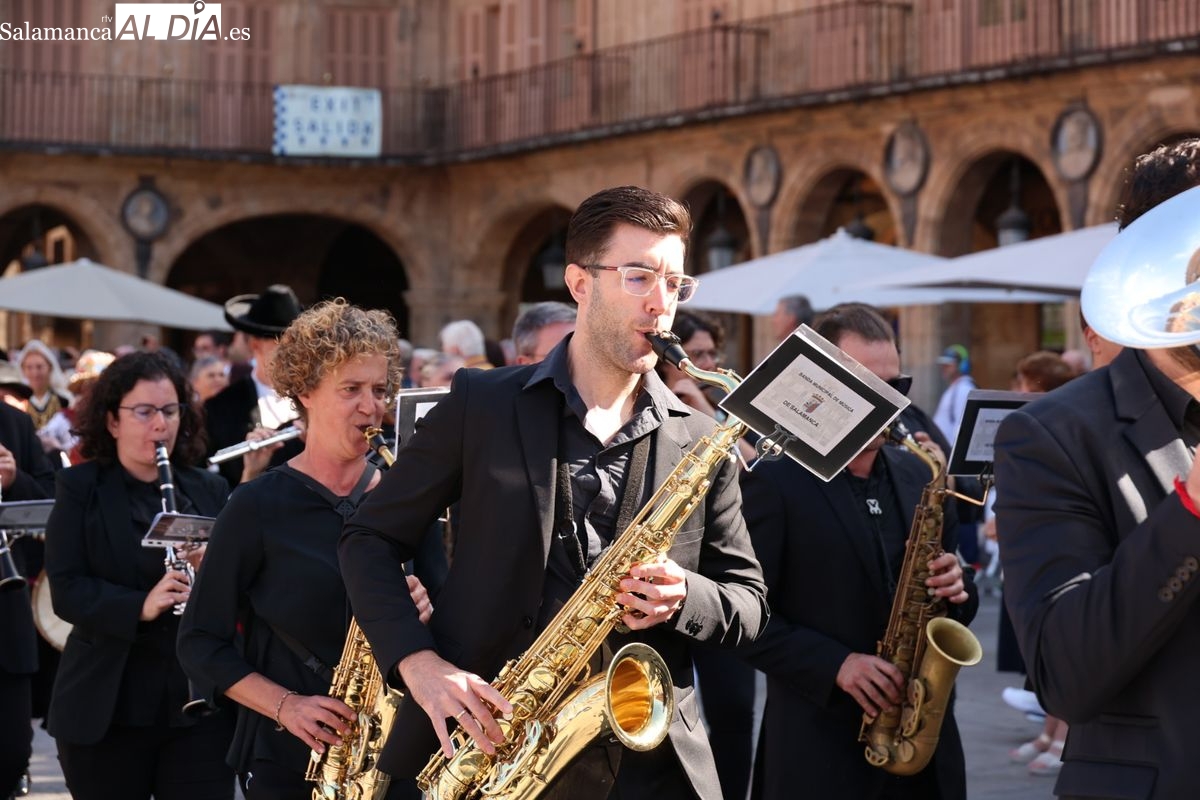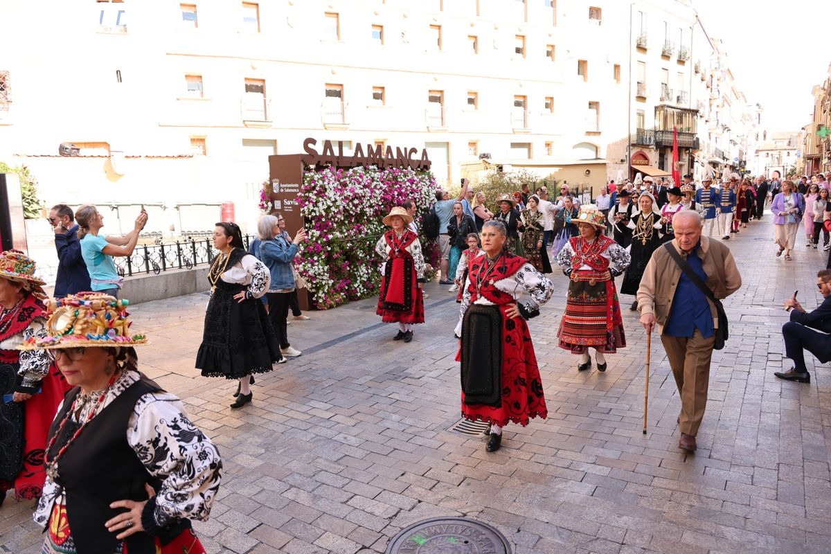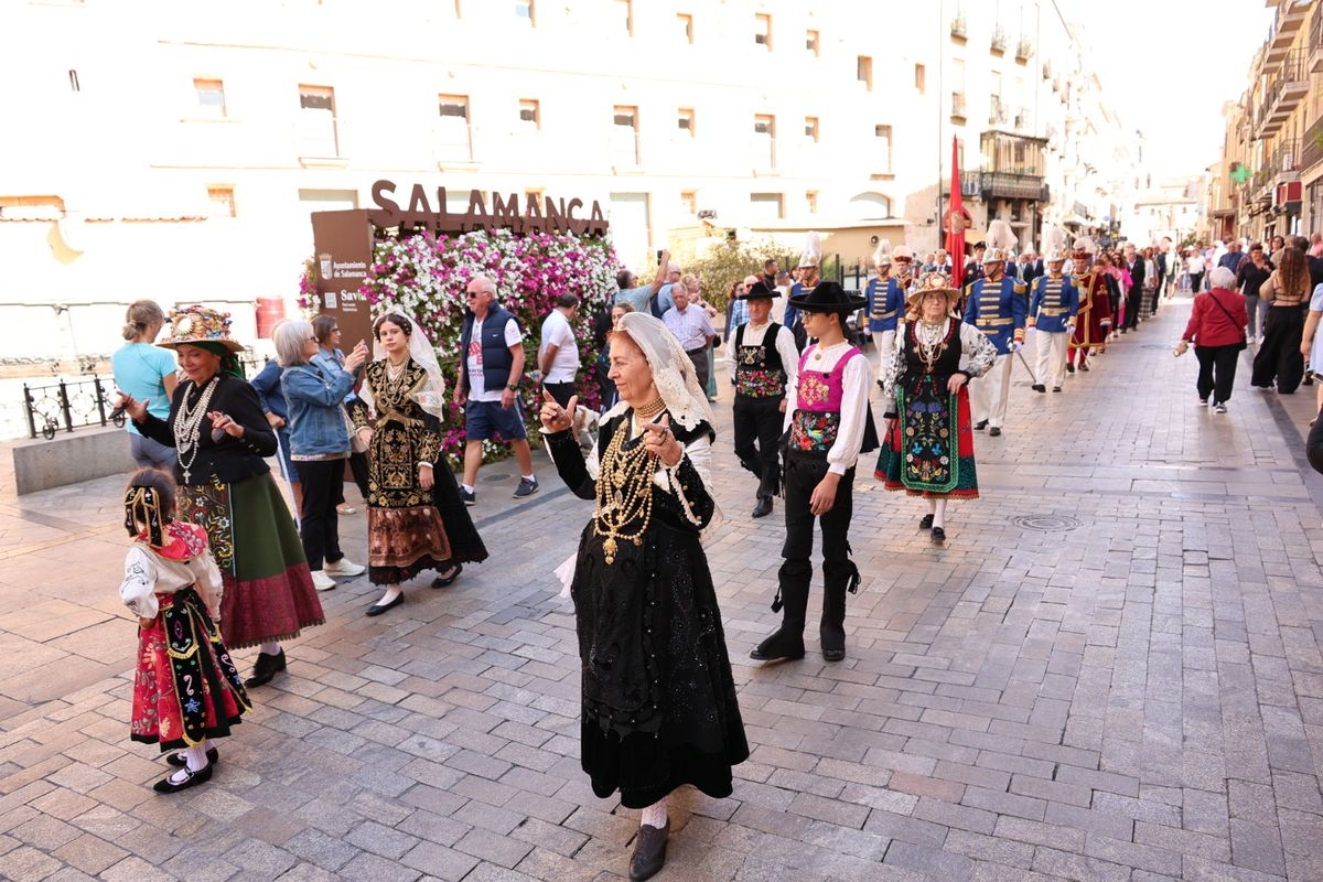 El acompañamiento ha estado formado por la Banda Municipal de Música, que puso la nota solemne al recorrido, varios grupos de charras y charros, que aportaron el color y la esencia del folclore salmantino con sus trajes típicos y la escolta de la Policía Local.