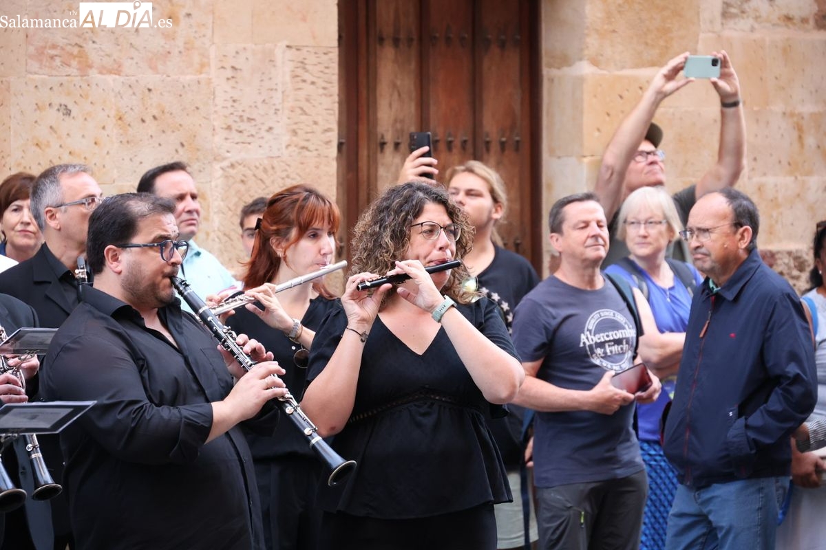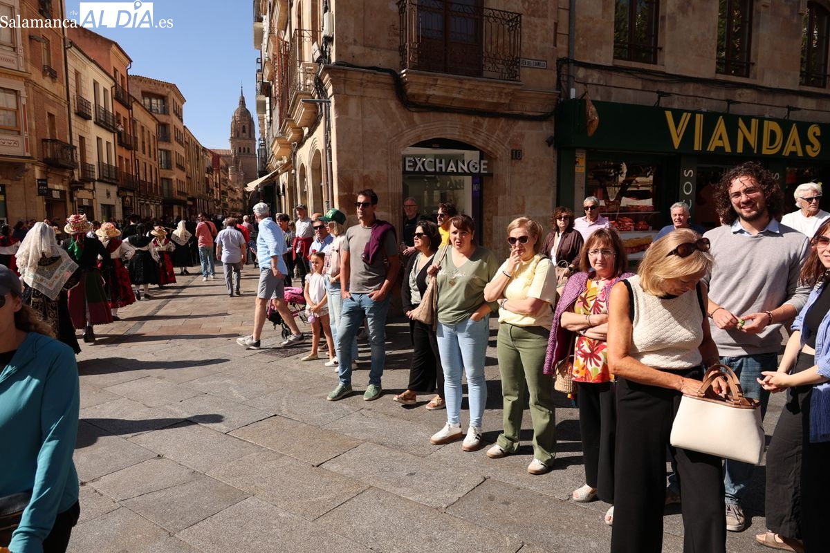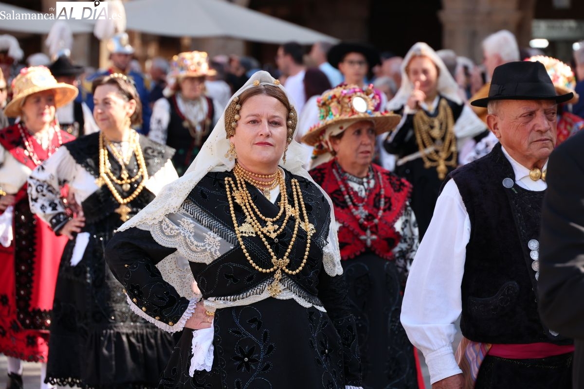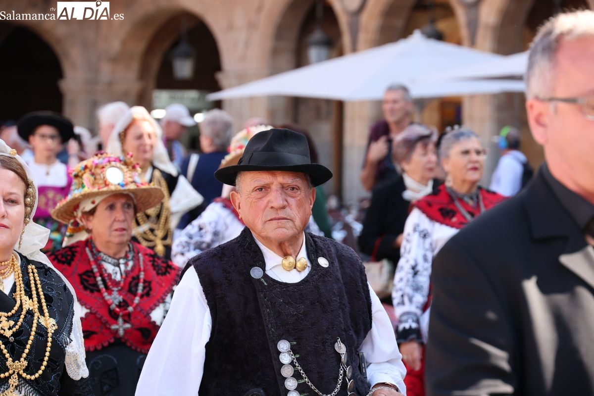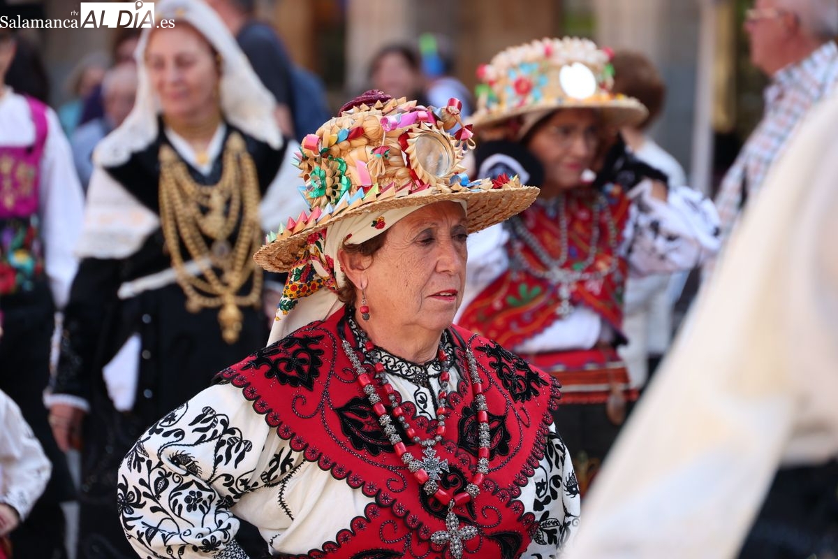 El acompañamiento ha estado formado por la Banda Municipal de Música, que puso la nota solemne al recorrido, varios grupos de charras y charros, que aportaron el color y la esencia del folclore salmantino con sus trajes típicos y la escolta de la Policía Local.