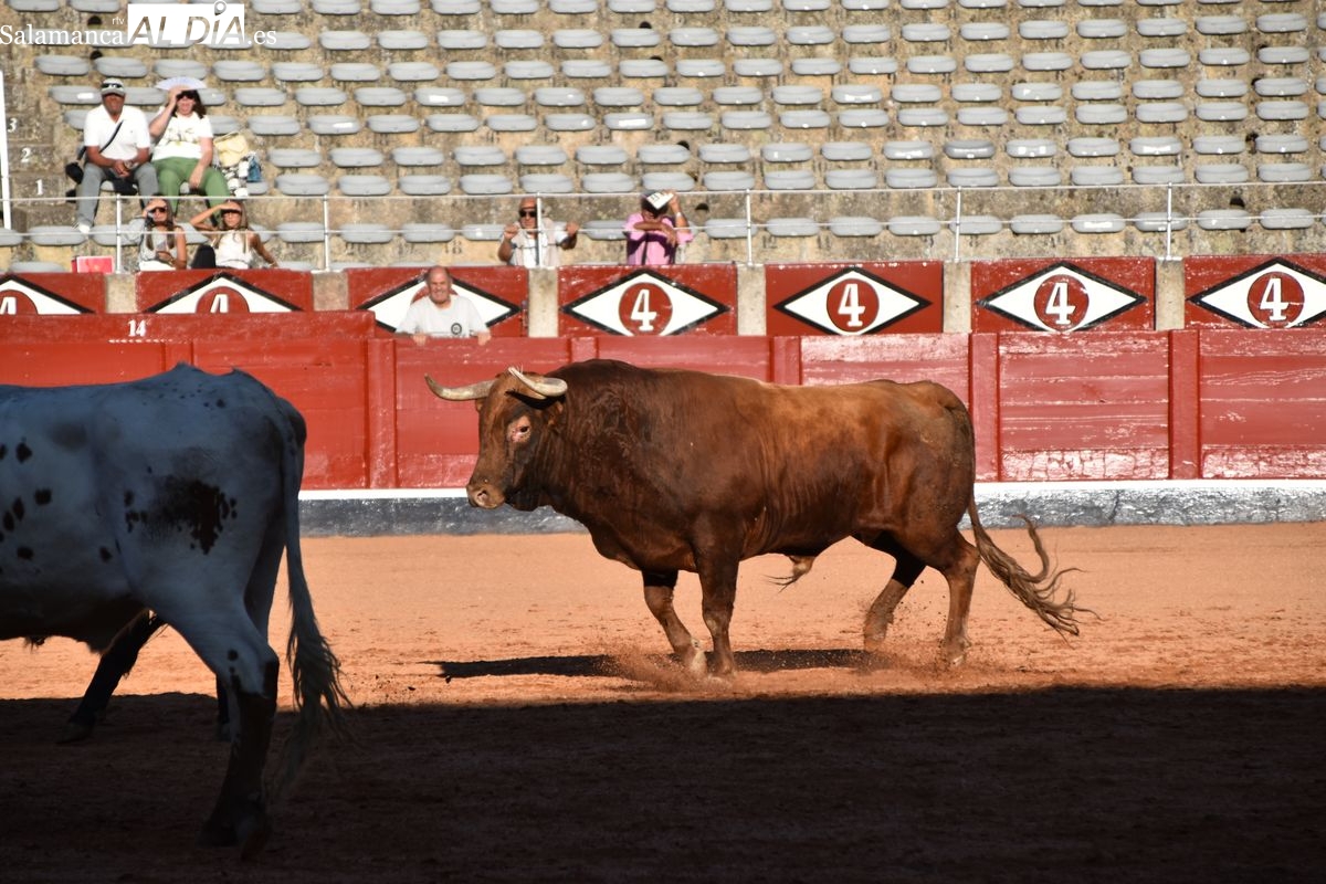 Los últimos astados en saltar al ruedo de La Glorieta fueron los utreros de Montalvo que serán lidiados el día 12 por Raquel Martín y Olga Casado en el festejo mixto que abre la rejoneadora Lea Vicens. Desigual de presentación la novillada, que no entusiasmó a nadie en los tendidos por la falta de cuajo y remate en algunos de los ejemplares.