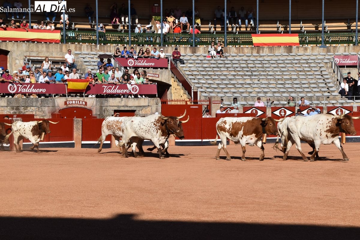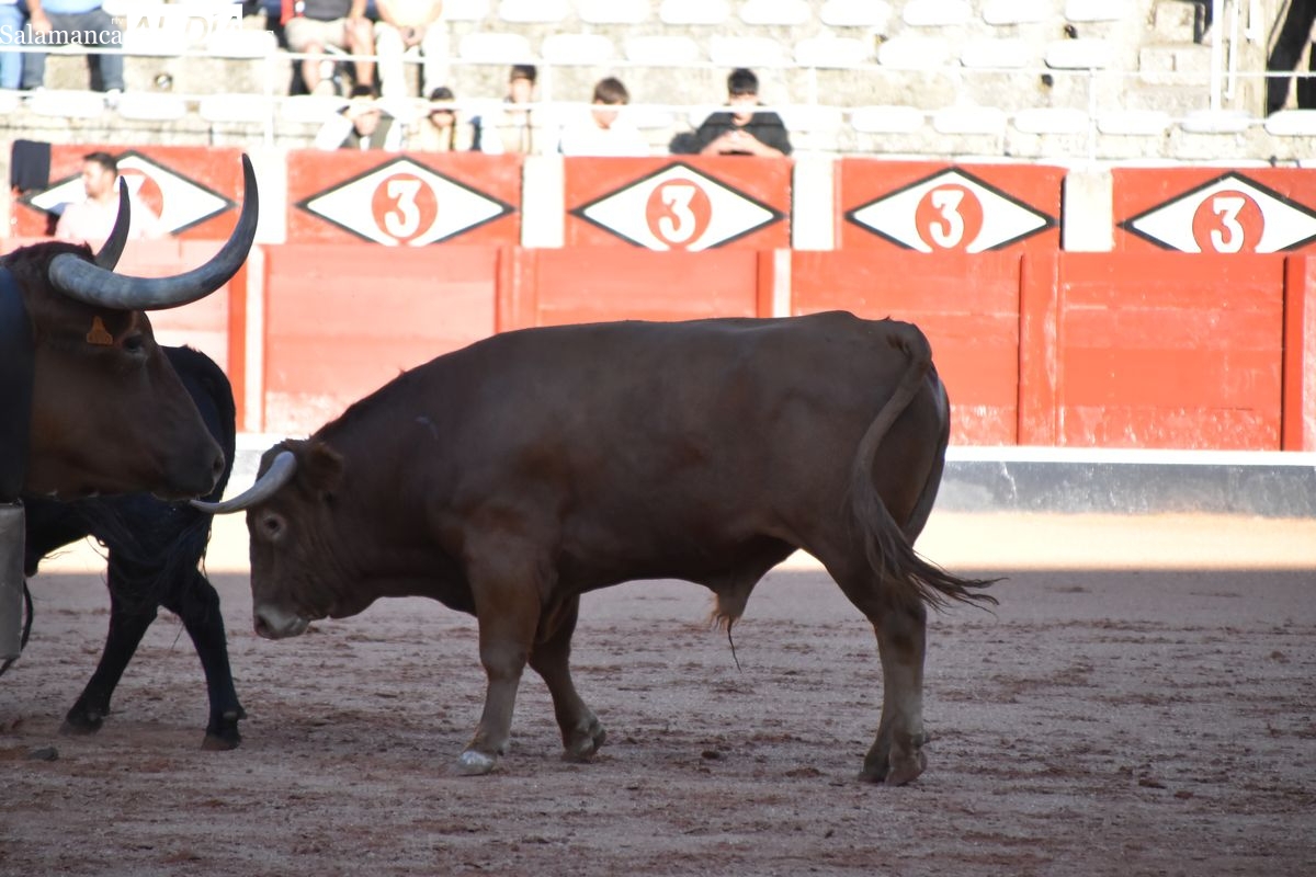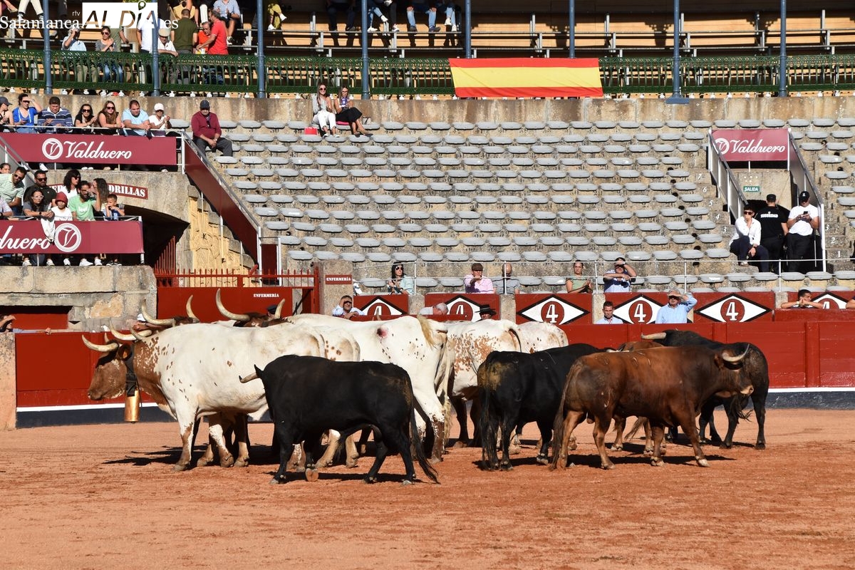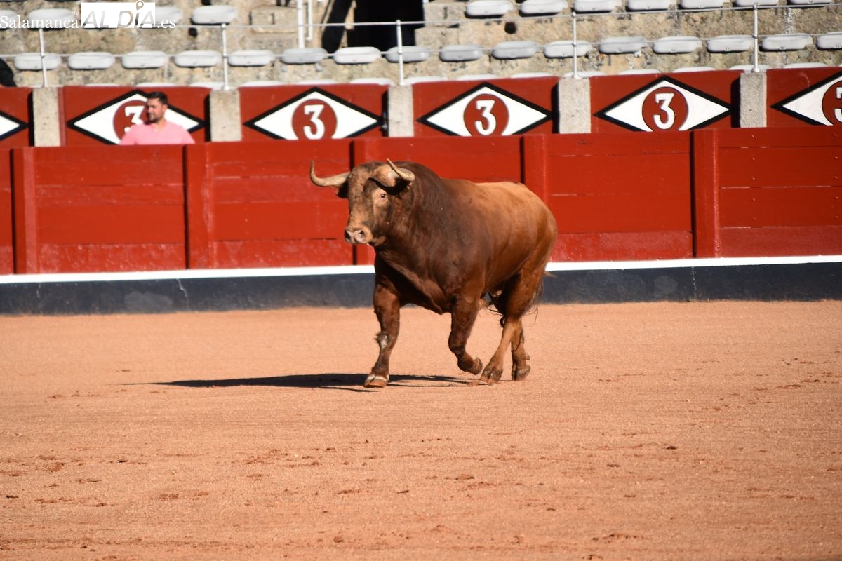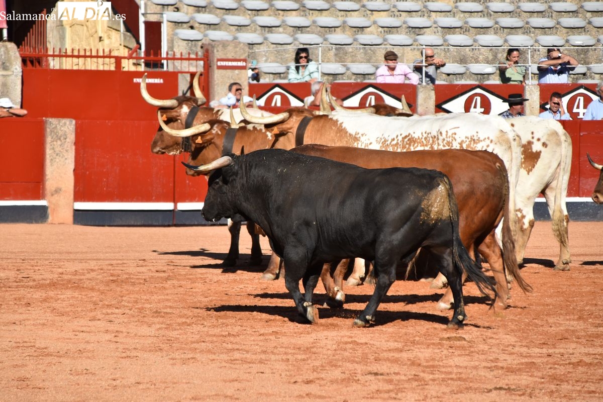 Tremendamente ofensiva de pitones la corrida de Vellosino, que fue del gusto de la afición. Cinco toros negros y un castaño de la ganadería salmantina, en la que tres toros lucieron cuajo de plaza de primera categoría. Los últimos tres en saltar al ruedo bajaron un poco el listón en cuanto al remate. Aún así, excelente presentación de Vellosino una vez más en La Glorieta, que en esta ocasión será lidiada por Damián Castaño, Diego San Román e Ismael Martín el día 13.