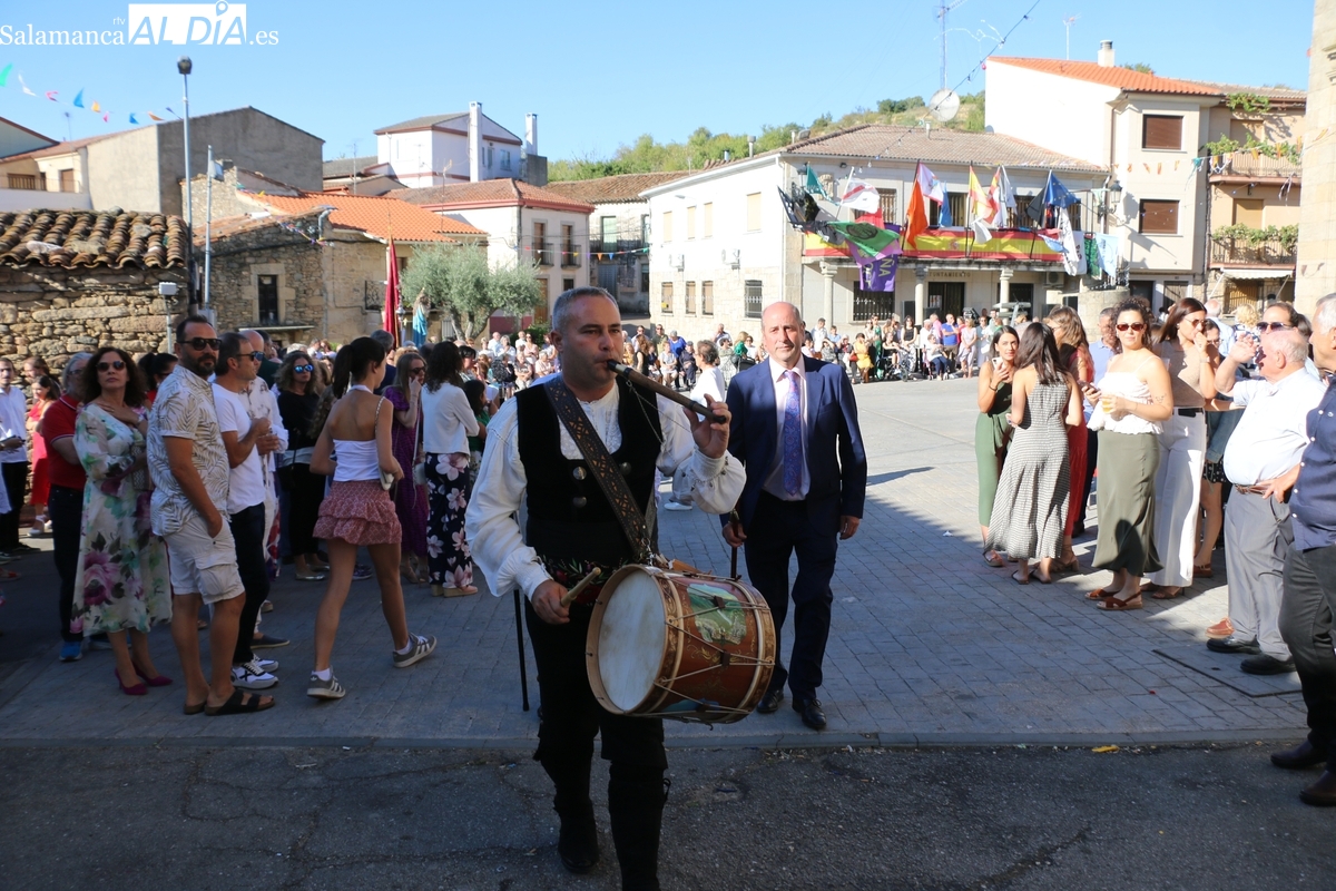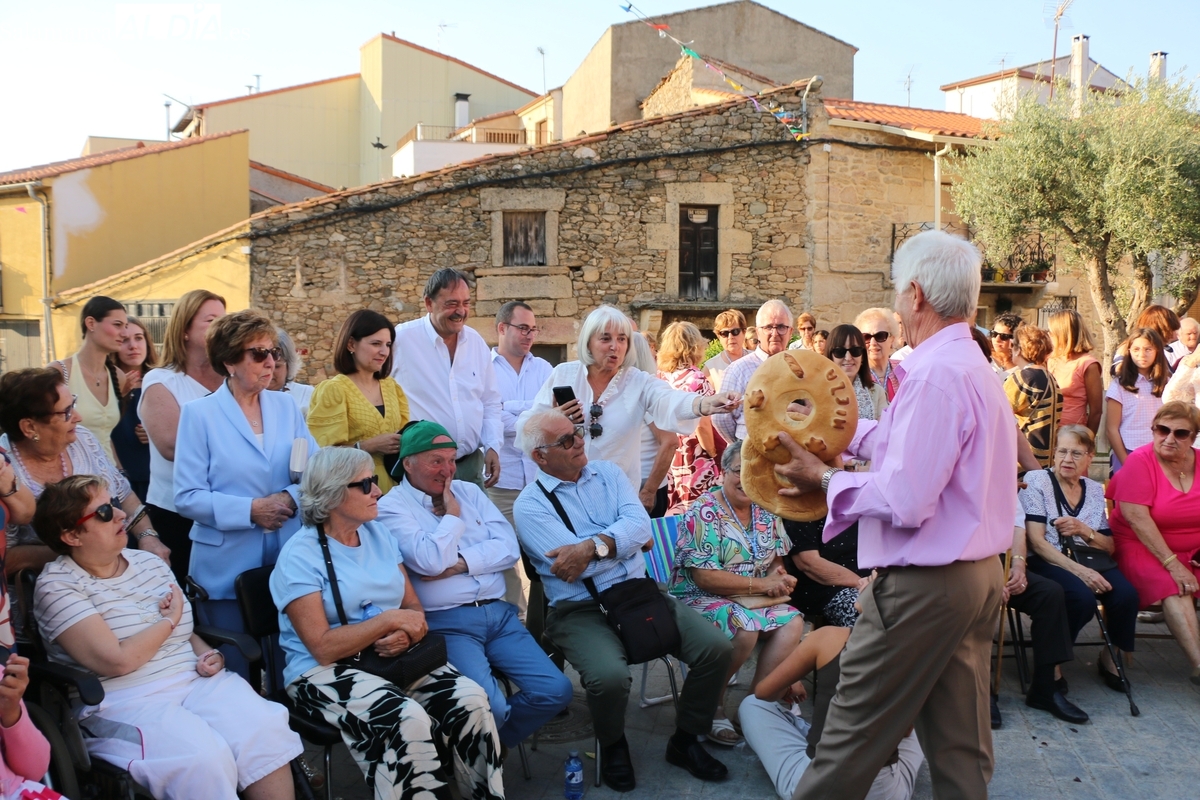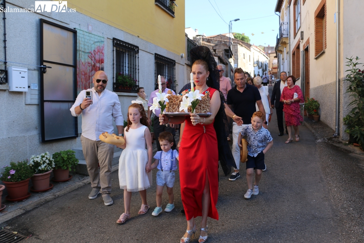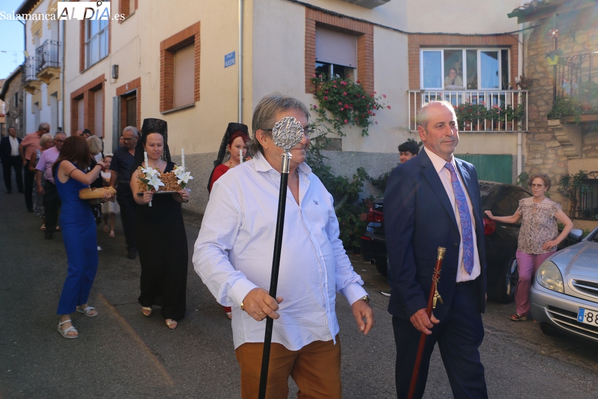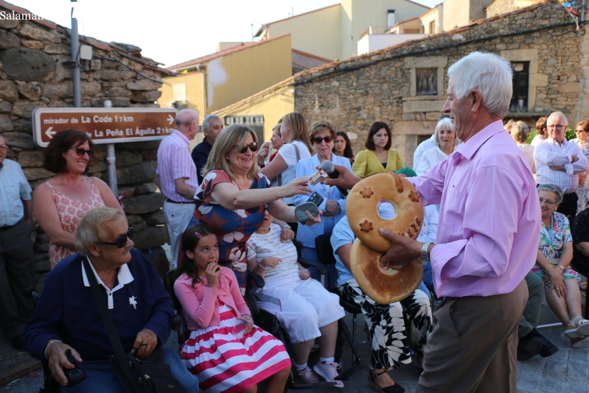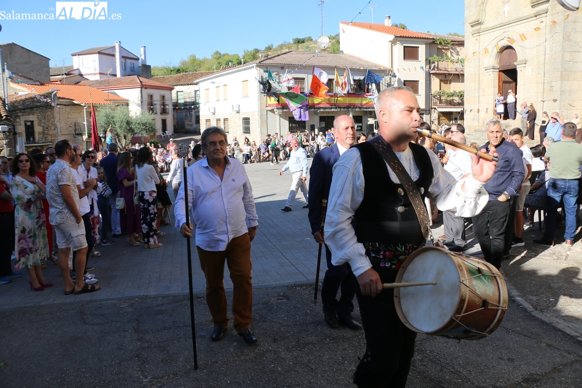 Bajo el pasacalles interpretado por el joven tamborilero de 10 años, Mateo Vicente, acompañado de su padre Jesús Vicente, el alcalde de la localidad, Ismael García Carreto, y luciendo el bastón municipal, acompañaba al mayordomo de este año, Luis Alberto Holgado Lopo, para recibir a cada una de las madrinas en calles diferentes que confluyen en el ágora miezuca. Con el saludo a modo de reverencia comenzaba el pasacalles de regreso a la plaza, para concluir con la ofrenda de sus roscas a la patrona, acto oficiado por el párroco Miguel Ángel García Miguel y en el que cada madrina se hacía acompañar de sus familiares.