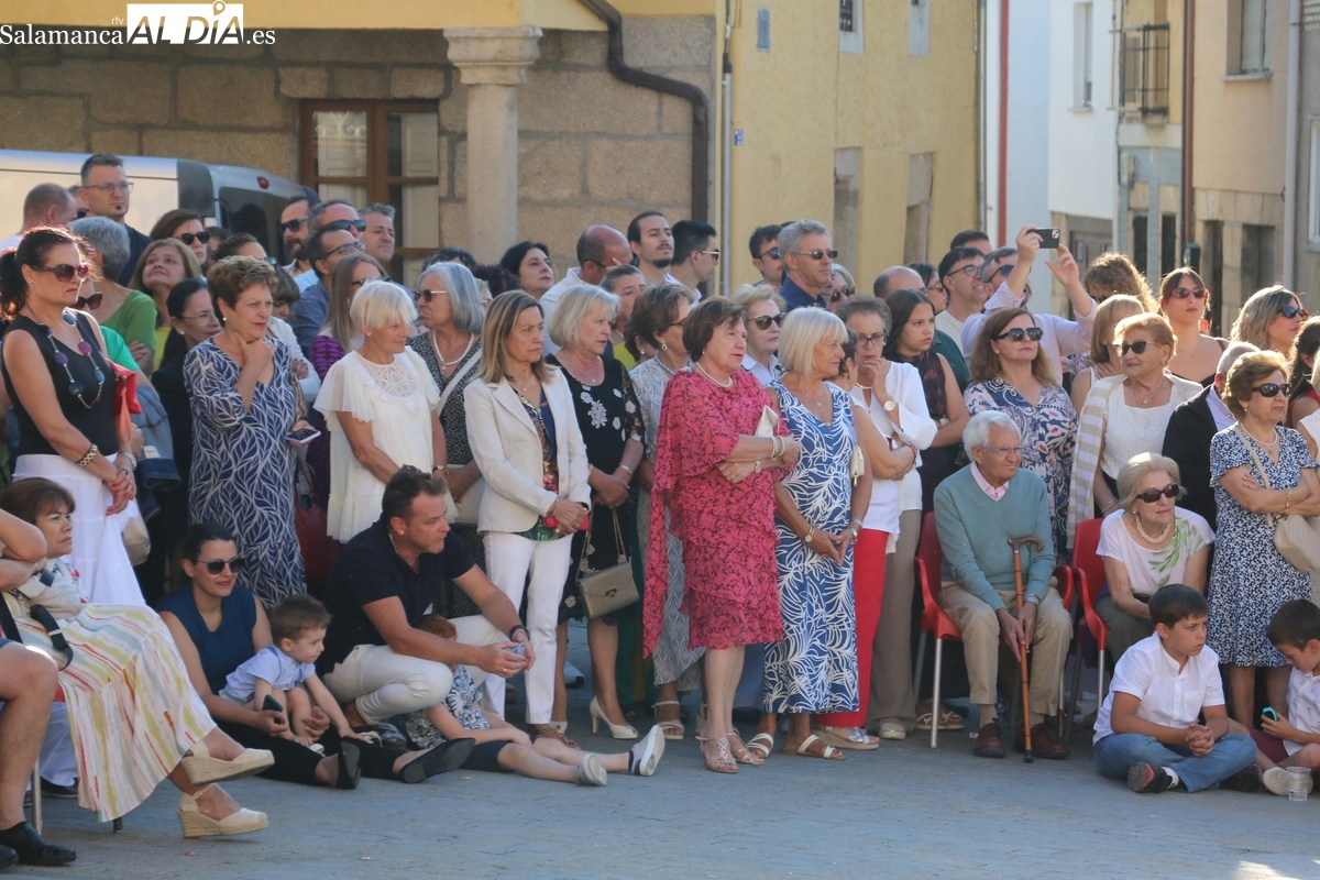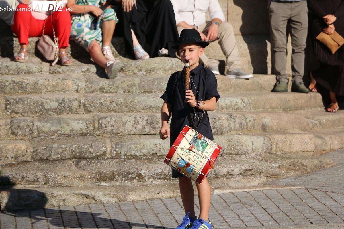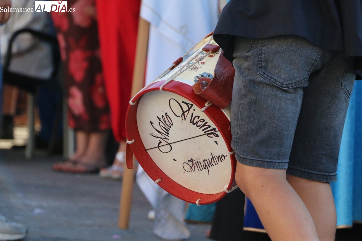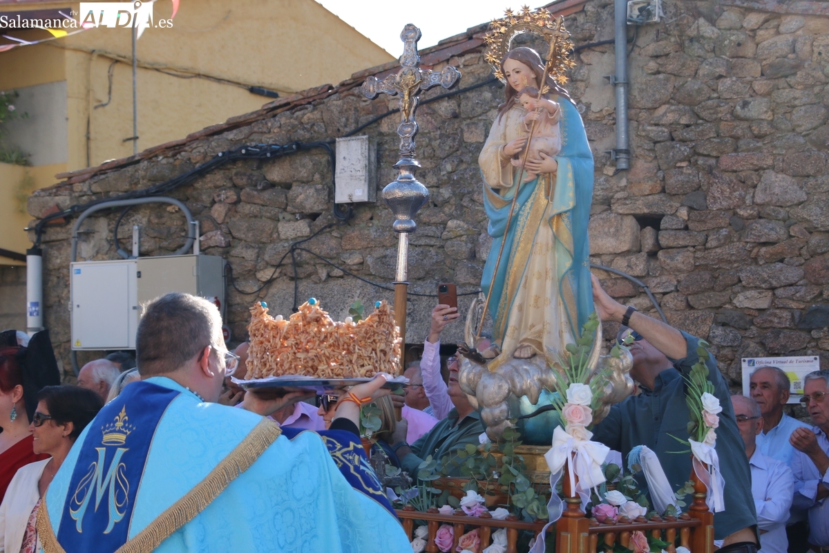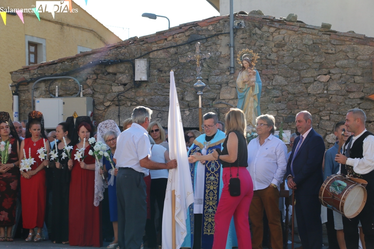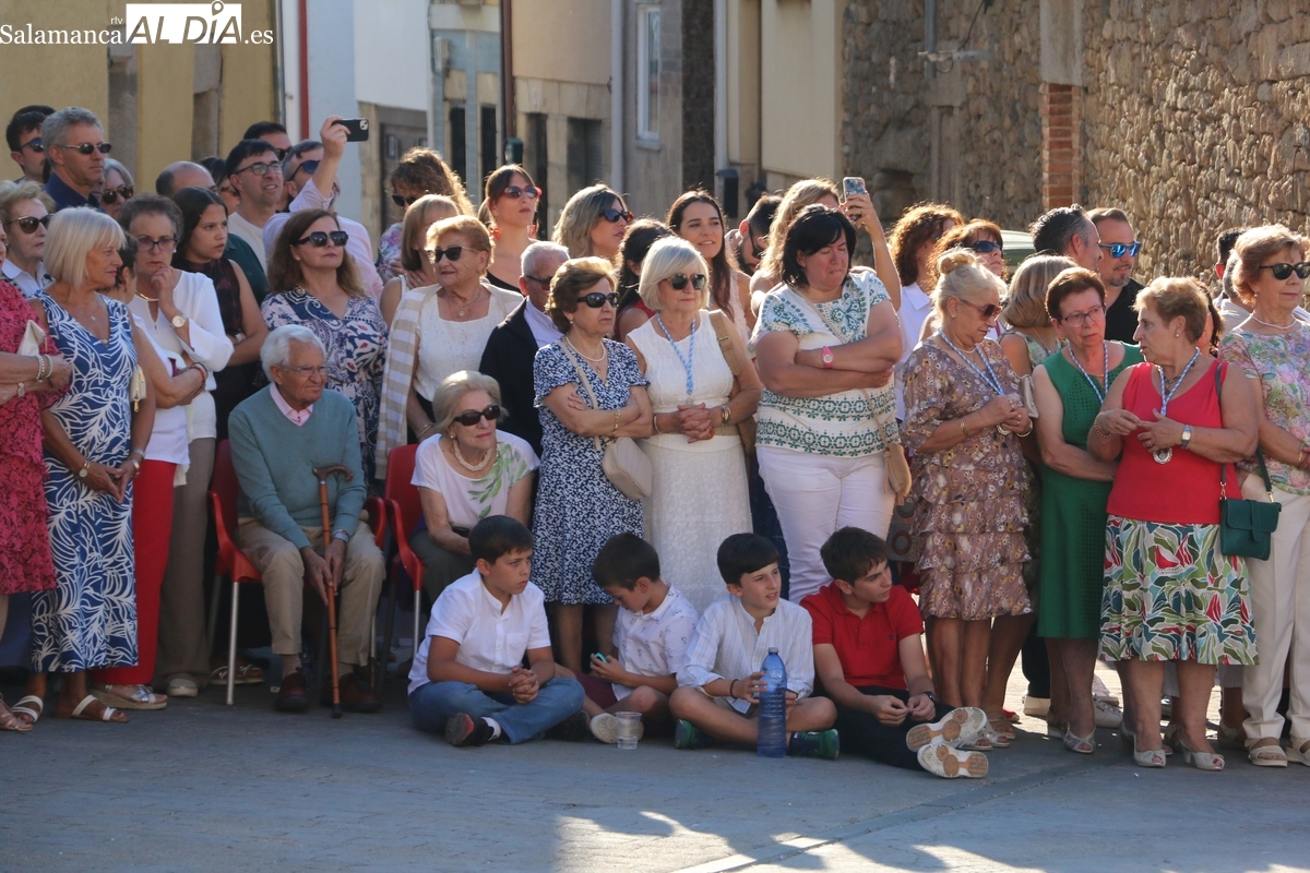 Bajo el pasacalles interpretado por el joven tamborilero de 10 años, Mateo Vicente, acompañado de su padre Jesús Vicente, el alcalde de la localidad, Ismael García Carreto, y luciendo el bastón municipal, acompañaba al mayordomo de este año, Luis Alberto Holgado Lopo, para recibir a cada una de las madrinas en calles diferentes que confluyen en el ágora miezuca. Con el saludo a modo de reverencia comenzaba el pasacalles de regreso a la plaza, para concluir con la ofrenda de sus roscas a la patrona, acto oficiado por el párroco Miguel Ángel García Miguel y en el que cada madrina se hacía acompañar de sus familiares.