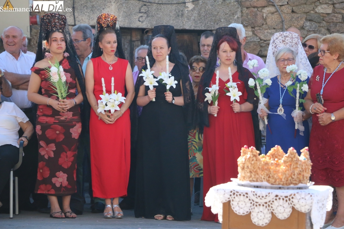 Ya en la tarde tendría lugar el rosario, para continuar con la popular ofrenda de roscas a cargo de las madrinas, en esta ocasión tres madrinas, aunque ninguna de ellas casadera como manda la tradición. En este 2025 ocuparon el puesto de madrinas Claudia Ramos, Vanesa Mateos, las hermanas Piedad y Emilia Holgado Lorenzo, y Auxi Lorenzo.