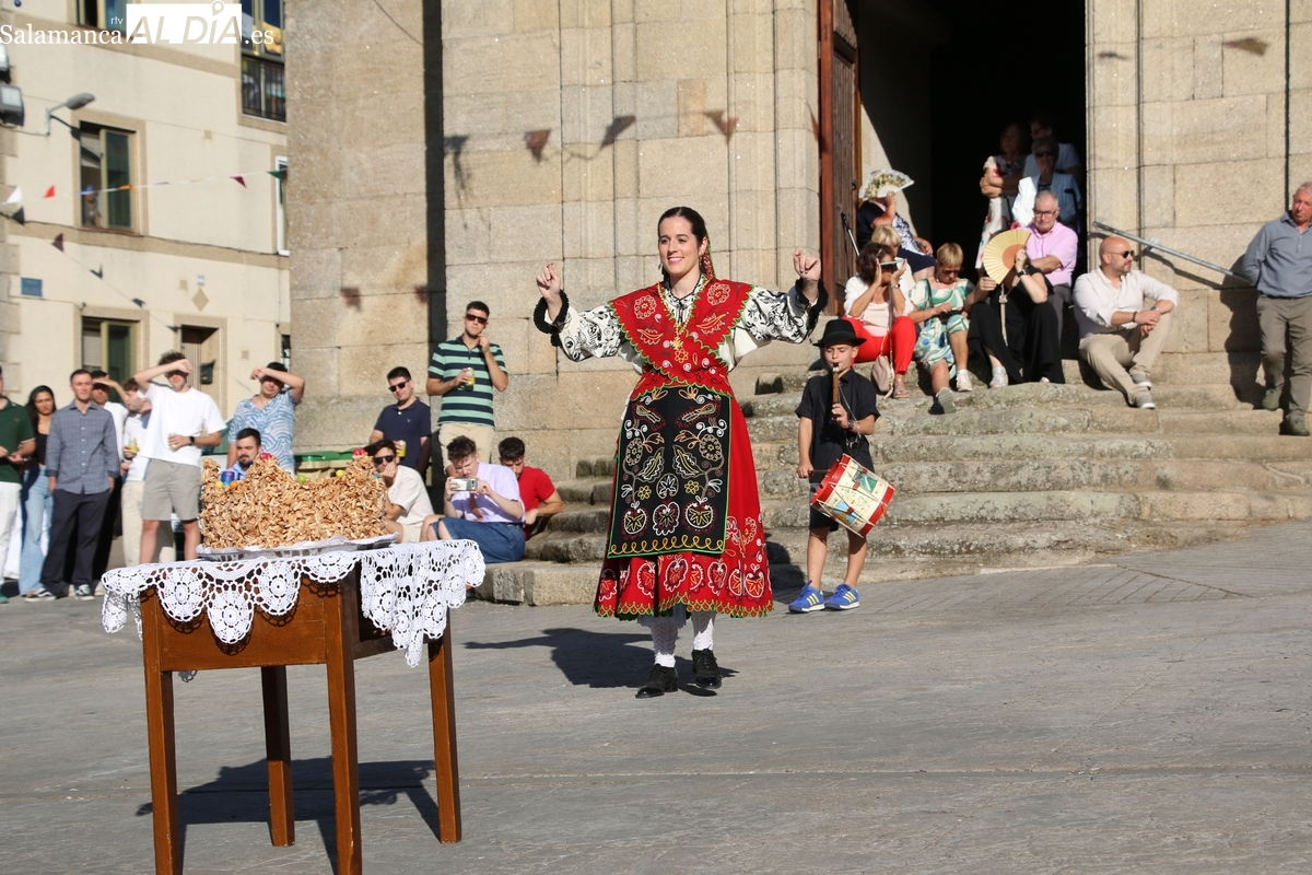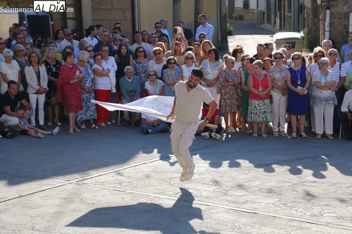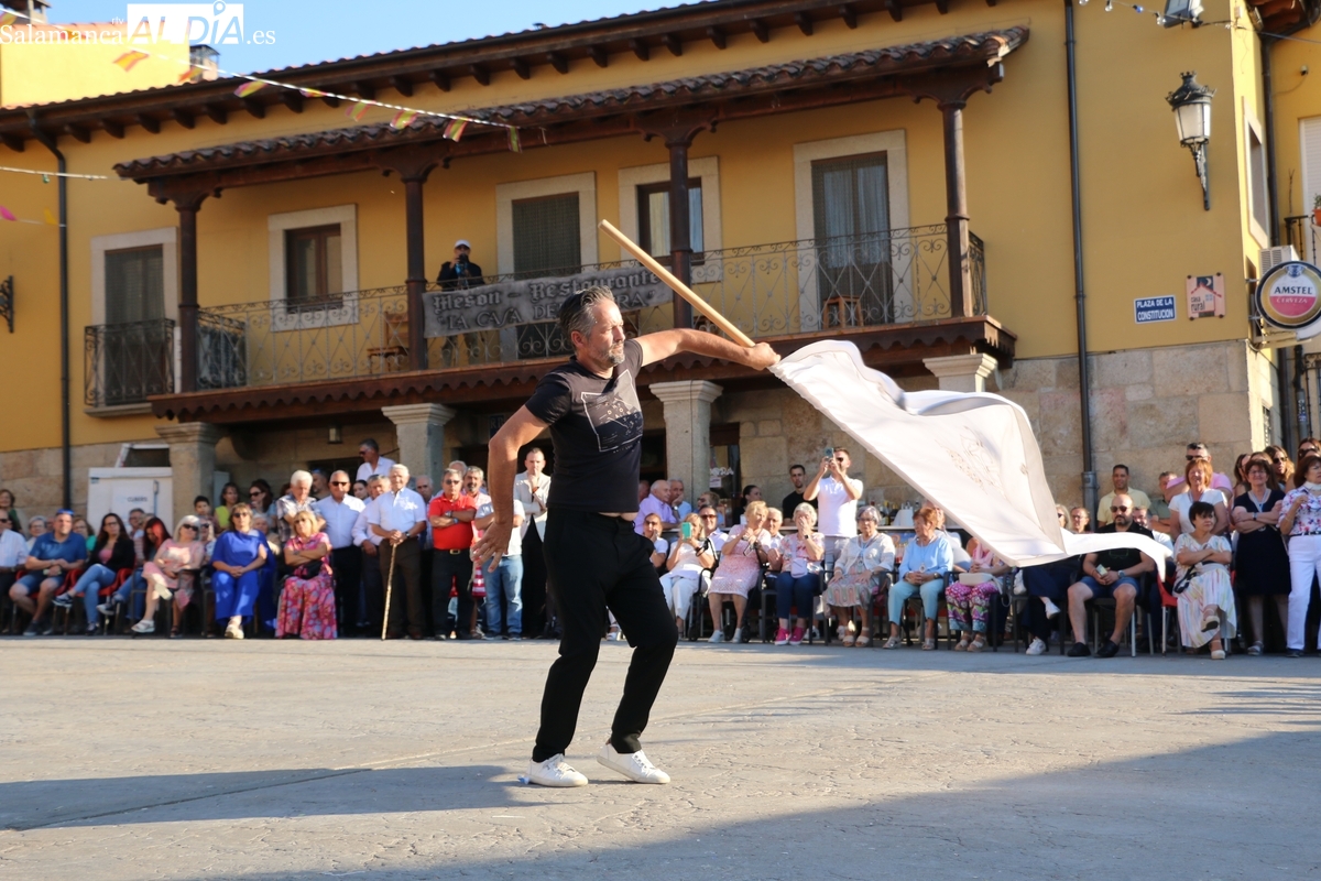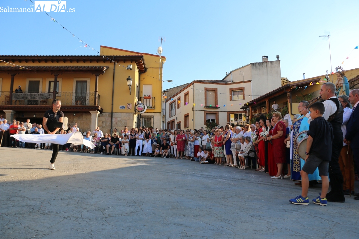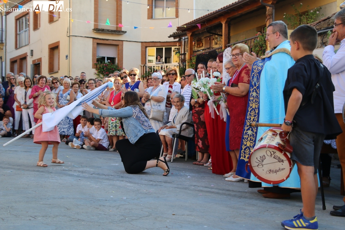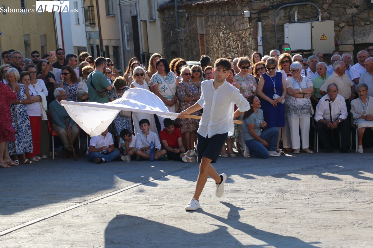 Tras el ofertorio llegaría el baile de la rosca, danza tradicional de este día junto al baile de la bandera. En esta ocasión, interpretado por Azucena Sánchez y Rosa Hernández, un clásico en este acto y que tuvieron a Mateo Vicente a los mandos de la gaita y el tamboril. Tras finalizar el tradicional baile de casados llegaba la bandera, danza que fue interpretada por no pocos vecinos, sumándose en esta ocasión varios niños, que demostraron que las tradiciones de Mieza y esta fiesta tienen el futuro bien garantizado.