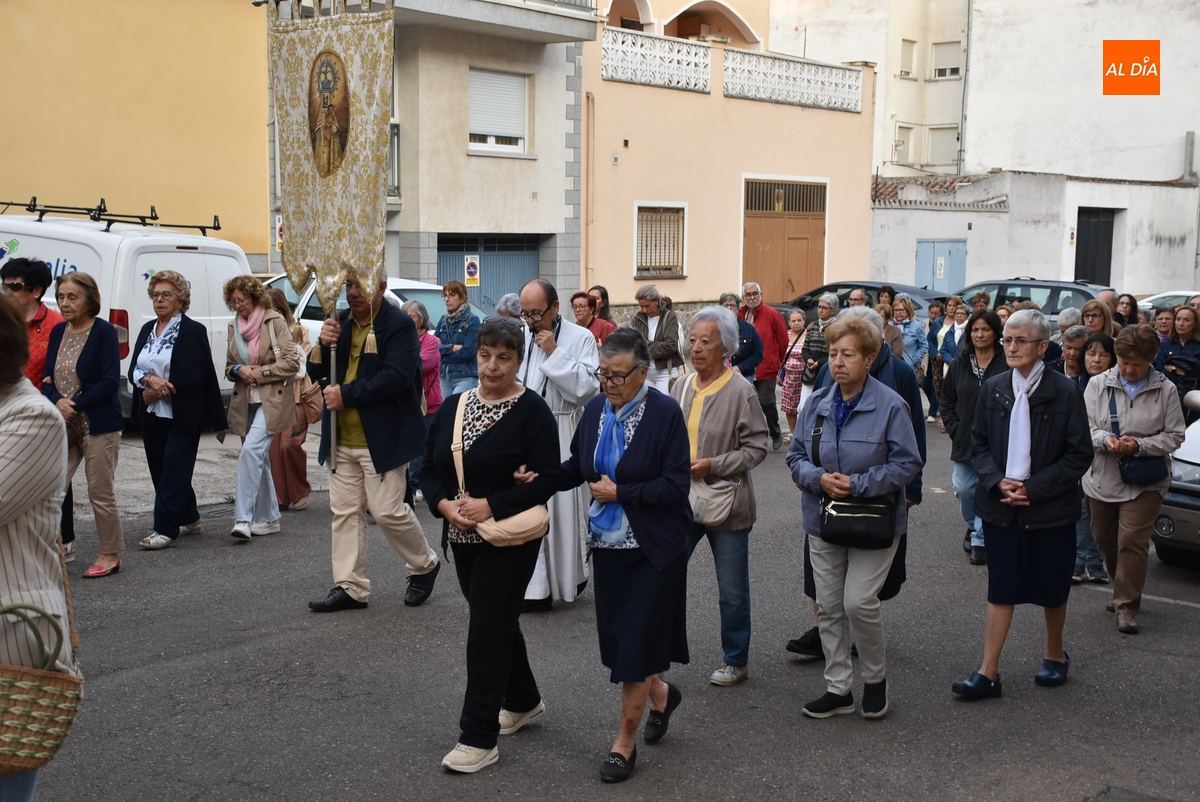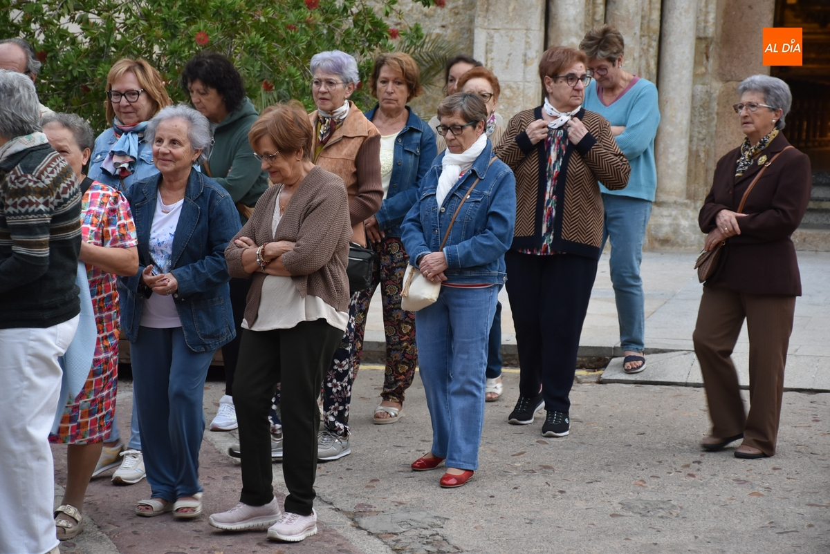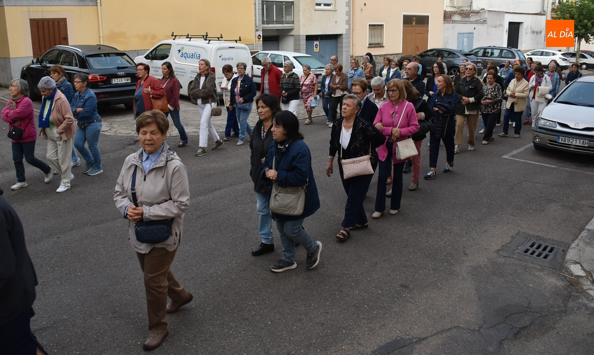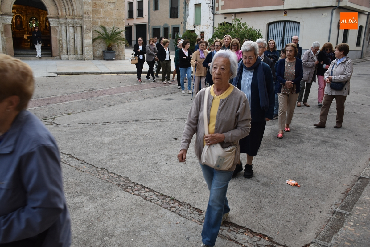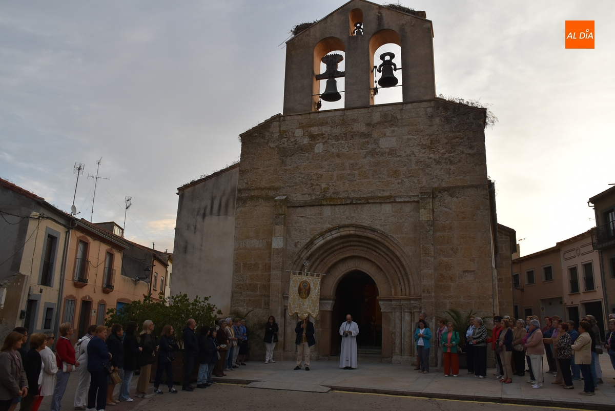 En una mañana ligeramente fresca, aunque despejada (poco a poco fue saliendo el sol), la Parroquia de San Andrés de Ciudad Rodrigo abrió el día grande en honor a la Virgen de la Peña de Francia con el tradicional Rosario de la Aurora por las calles de su barrio, al que se animaron a acudir unas 80 personas (una veintena más que el año pasado), todas ellas mujeres salvo alguna mínima excepción.