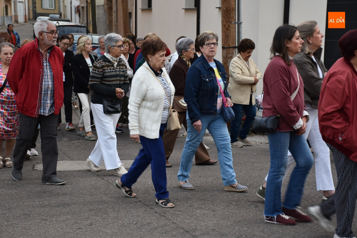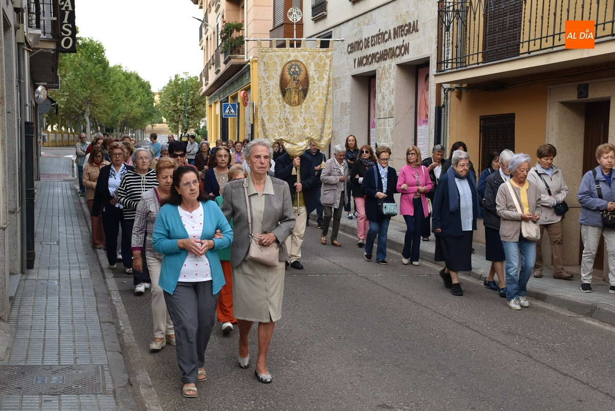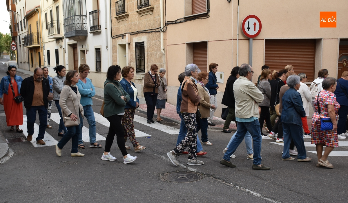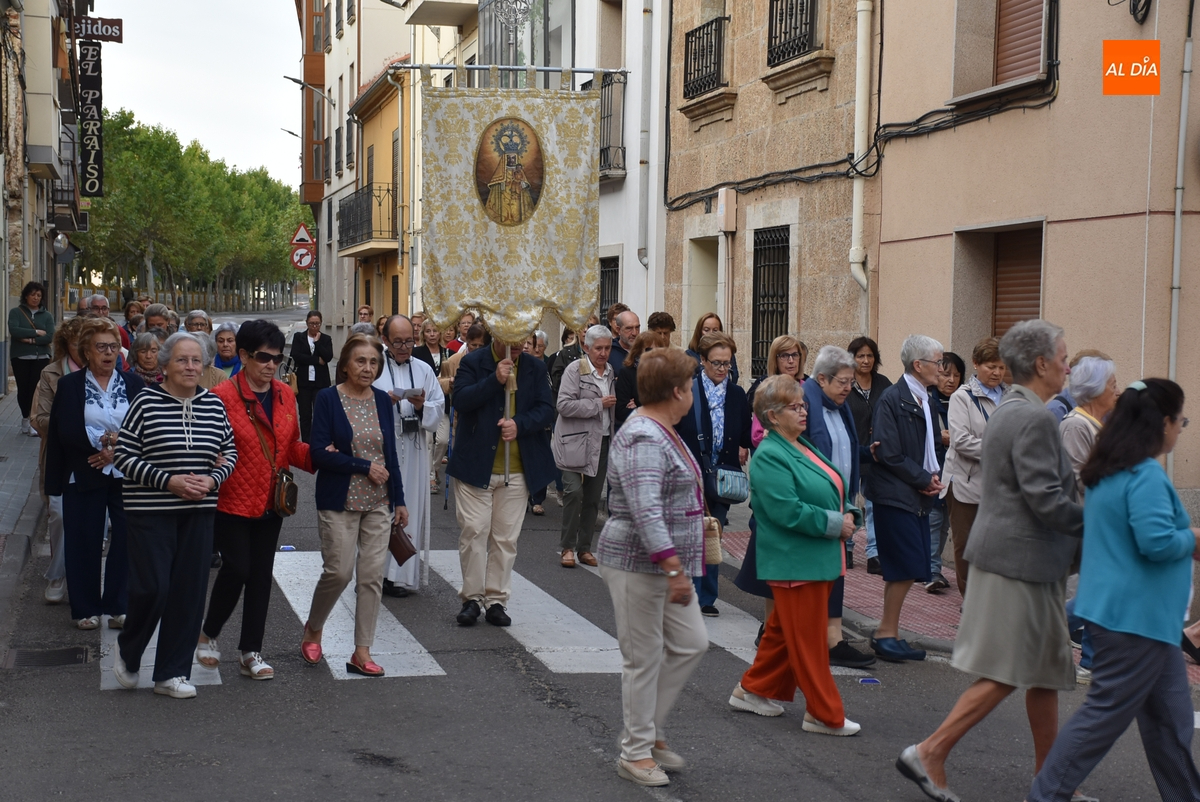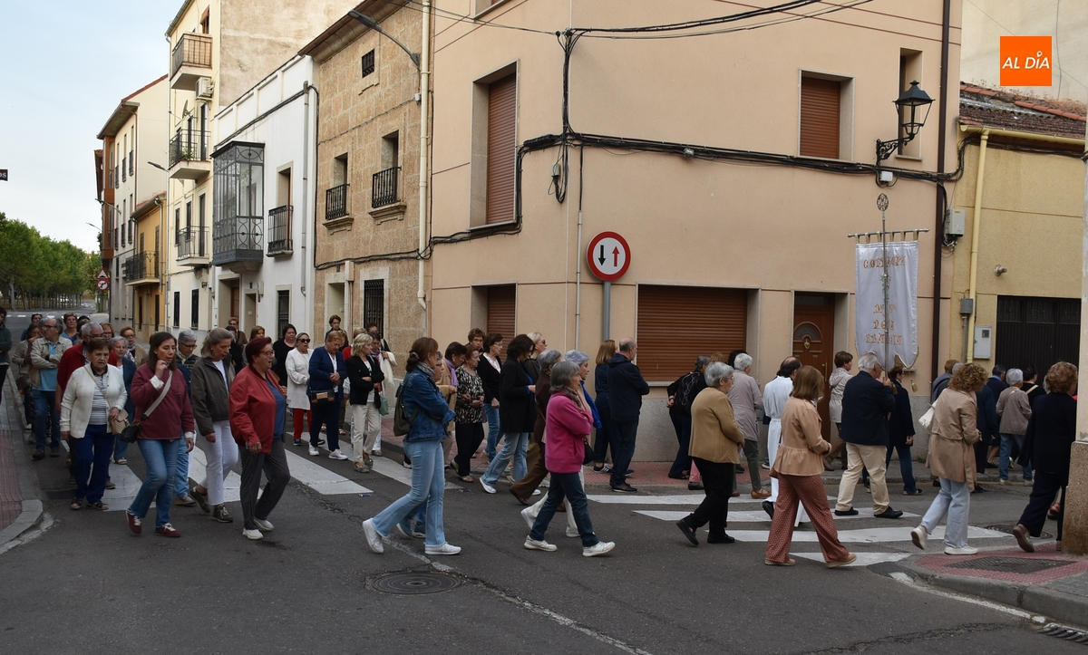 En una mañana ligeramente fresca, aunque despejada (poco a poco fue saliendo el sol), la Parroquia de San Andrés de Ciudad Rodrigo abrió el día grande en honor a la Virgen de la Peña de Francia con el tradicional Rosario de la Aurora por las calles de su barrio, al que se animaron a acudir unas 80 personas (una veintena más que el año pasado), todas ellas mujeres salvo alguna mínima excepción.